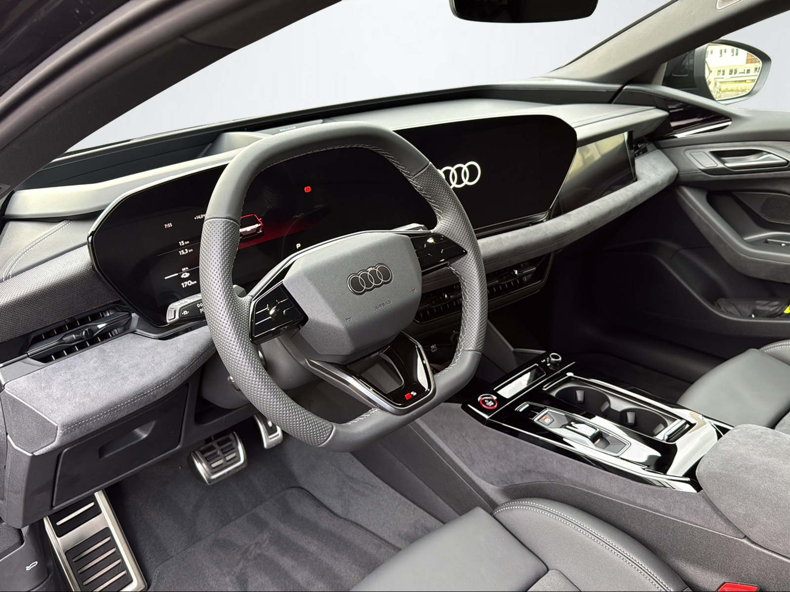 Serienausstattung ASSP+ 3 Jahr / 100'000 km Reparatur - Service bis 100'000 km / 10 Jahre Adaptiver Geschwindigkeitsassistent Airbag Fahrer und Beifahrerseite Airbgas vorne, Beifahrerairbag deaktivierbar Akustikverglasung für Türscheiben vorne Akustisches Fahrzeug-Warnsystem Aluräder 8,0J|8,5Jx19, 5-Arm-Dynamik, platingrau, Reifen 225/55|245/50 19R Assistenzpaket Fahren und Parken Audi Lane Assist (Spurverlassenswarnung) Audi Parking System plus mit Umgebungsanzeige Audi connect Navigation & Infotainment Audi connect Notruf & Service Audi connect Notruf & Service mit Audi connect Remote & Control Audi drive select (Fahrzeugcharakteristik) Audi smartphone interface Audi virtual cockpit plus Aufmerksamkeits- und Müdigkeitserkennung Aussenspiegel automatisch abblendbar Aussenspiegel elektrisch einstell-, beheiz- und anklappbar, beidseitig automatisch abblendend Aussenspiegel elektrisch verstellbar/ heizbar und anklappbar Aussenspiegelgehäuse in Wagenfarbe Ausweichassistent und Abbiegeassistent Automatisch abblendbarer Innenspiegel Automatische Umluftregelung Dachhimmel Stoff, Farbe spezifisch Dekoreinlagen Aluminium matt gebürstet anthrazit Details siehe gültige Preisliste des Importeurs Doppelspeichen-Lederlenkrad mit Multifunktion Einparkhilfe plus mit Distanzanzeige Einstiegleisten mit Aluminiumeinlage vorn Elektrische Luftzusatzheizung Fensterzierleisten Aluminiumoptik Fussmatten vorne und hinten Gepäckraumklappe elektrisch öffnend und schliessend Innenspiegel automatisch abblendend Instrumententafel-Oberseite schwarz mit Kontrastnaht Interieurelemente oben und unten in Kunstleder Kamerabasierte Verkehrszeichenerkennung Keine Gewähr auf die Angaben der Serienausstattungen Kindersitzbefestigung i-Size auf der Beifahrerseite und i-Size und Top Tether auf den äußeren Fondsitzen Komfort Klimaautomatik 3-Zonen Komfortklimaautomatik 3-Zonen Ladekabel Mode3 Typ2 3 32A Ladeleistung bis 270 kW (DC) Leichtmetallräder 19" 5-Arm Lendenwirbelstützen elektr. für Vordersitze Lenkrad mit Applikation in Chromoptik Lenkradeinstellung manuell Mit Speedlimiter (LIM), mit Intelligent Speed Assist (ISA) Modellkennzeichnung am Heck On-board-Ladegerät bis 11 kW (AC) Projektionsleuchten in den Aussenspiegel Querverkehrsassistent vorn Reifendruck-Kontrollanzeige Rücksitzbank ungeteilt, Lehne geteilt umlegbar (dreiteilig) mit Mittelarmlehne Scheinwerfer Reinigungsanlage Scheinwerferreinigungsanlage Seitenairbag Fahrer und Beifahrerseite Seitenairbags vorn mit Kopfairbagsystem und Interaktionsairbag vorn Seitliches Kopfairbagsystem SIDEGUARD Sitzheizung für Vordersitze Tagesfahrlicht mit Assistenzfahrlicht u. Coming- und Leaving-home Funktion automatisch Telefonablage mit induktiver Ladefunktion USB-Anschlüsse mit Ladefunktion im Fond Verbandmaterial, Warndreieck und Warnweste Vorbereitung Navigationsgerät-High für FOD Funktion Vorbereitung für Anhängevorrichtung Vorbereitung für intelligente Ladefunktionen Vordersitze manuell einstellbar Wegfahrsperre elektronisch Wärmeschutz- und Akustiverglasung Frontscheiben