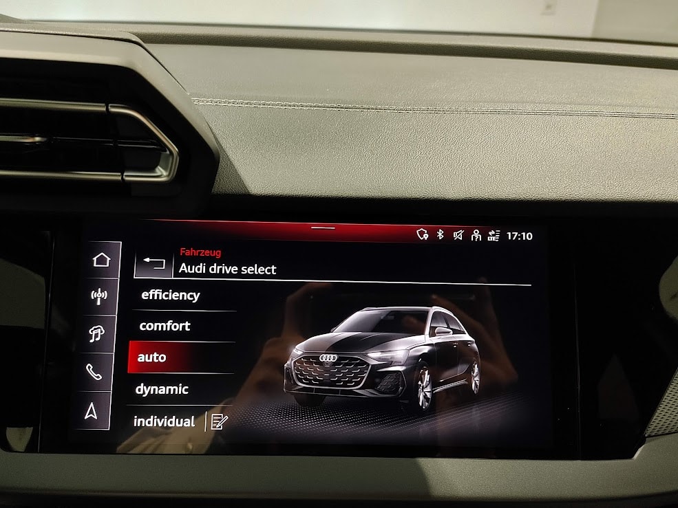 Sonderausstattung Assist: Spurwechselwarnung mit Ausstiegswarnung und Querverkehrassistent hinten Entfall Modellbezeichnung Garantie: Audi Garantie: 4 Jahre oder 80'000 km (ab 1. Inv.) Paket: Assistenzpaket Schutz- und Warnsysteme plus Paket: Funktionspaket Sicherheit Paket: Interieur S mit Sportsitzen, Stoff/Kunstleder-Kombination schwarz Paket: Klimatisierungspaket plus Paket: Matrix LED-Scheinwerfer, LED-Heckleuchten und Scheinwerfer-Reinigungsanlage Paket: Paket Premium Plus A3 Sportback / allstreet Räder: Leichtmetallräder - 18 Zoll - 5-Y-Speichen, graphitgrau, glanzgedreht Scheinwerfer-Reinigungsanlage Sonnenschutzverglasung, abgedunkelt