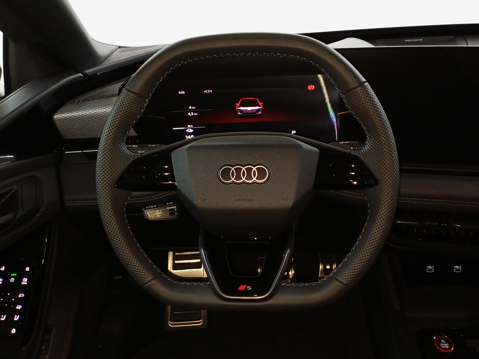 Airbag: Airbag Fahrer und Beifahrer Airbag: Seitenairbag vorn, mit Kopfairbag und Interaktionsairbag vorn Akustisches Fahrzeug-Warnsystem Assist: Adaptiver Geschwindigkeitsassistent Assist: Aufmerksamskeits-und Müdigkeitserkennung mit Fahrerbeobachtung Assist: Ausweichassistent und Abbiegeassistent Assist: Einparkhilfe plus mit Distanzanzeige Assist: Kamerabasierte Verkehrszeichenerkennung Assist: Notbremsassistent vorn Assist: Parkassistent plus Assist: Proaktiver Insassenschutz Front, Seite und Heck Assist: Querverkehrassistent vorn Assist: Spurverlassenswarnung inkl. Notfallassistent Assist: Spurwechsel- und Ausstiegswarnung, Querverkehrassistent hinten und Abbiegeassistent hinten Assist: Traktionskontrolle Assist: Verkehrszeichenbasierter Geschwindigkeitsbegrenzer Audi virtual cockpit plus Aussenspiegel elektrisch einstell-, beheiz- und anklappbar, beidseitig automatisch abblendend Aussenspiegel in Wagenfarbe Dachhimmel Stoff, Farbe felsgrau Dekor: Dekoreinlage Aluminium matt gebürstet anthrazit Dekor: Instrumententafel-Oberseite schwarz mit Kontrastnaht Dekor: Interieurapplikationen Aluminiumoptik Dekor: Interieurelemente oben und unten Kunstleder Einstiegsleisten mit Aluminiumeinlegern vorn Elektrische Fensterheber vorne Elektronisches Stabilitäts-Programm (ESP) Fahrwerk: Dynamikfahrwerk Fensterzierleisten Aluminiumoptik Fussmatten vorne und hinten Garantie: Audi Garantie 2 Jahre ohne Kilometerbegrenzung (ab 1. Inv.) Getriebe: 2-Stufen Automatisiertes Schaltgetriebe Innenspiegel automatisch abblendbar Klima: Automatische Umluftregelung Klima: Elektrische Luftzusatzheizung Klima: Komfortklimaautomatik 3-Zonen Klima: Standklimatisierung Komfortschlüssel ohne Safelock Lackierung: Uni-Lackierung Ladekabel Mode 3 für öffentliches Laden bis 22 kW Lenkrad: Doppelspeichen-Lederlenkrad mit Multifunktion Lenkrad: Lenkradapplikation Chromoptik Lenkrad: Lenkradeinstellung manuell Licht: Fernlicht-Assistent Licht: LED-Heckleuchten pro Licht: LED-Scheinwerfer plus Licht: Leuchtende Audi Ringe hinten Licht: Projektionsleuchte in den Aussenspiegeln Licht: Scheinwerfer-Reinigungsanlage Licht: Tagesfahrlicht mit Assistenzfahrlicht u.Coming- u. Leaving-home Funktion automatisch Media: Audi Application Store und Smartphone-Interface Media: Audi connect Navigation & Infotainment Media: Audi connect Notruf & Service mit Audi connect Remote & Control Media: Digitaler Radioempfang (DAB) Media: FOD Funktionen online verfügbar Media: MMI experience mit Audi Soundsystem Media: Telefonablage mit induktiver Ladefunktion Media: USB-Anschlüsse mit Ladefunktion in erster und zweiter Sitzreihe Modellkennzeichnung am Heck On-board-Ladegerät bis 11 kW (AC) Paket: Ambiente Lichtpaket Paket: Assistenzpaket Fahren und Parken Paket: Assistenzpaket Schutz- und Warnsysteme plus Räder: Reifendruck-Kontrollanzeige Räder: Reifenreparatur-Set (Tire Fit) Räder: Räder, 5-Arm-Dynamik, platingrau Scheiben seitlich und hinten in Wärmeschutzverglasung Schlüssel für Schliesssystem mit Fernbedienung Sitze: 4-Wege-Lendenwirbelstütze für die Vordersitze Sitze: Interieur mit Normalsitzen, Stoff schwarz Sitze: Kindersitzbefestigung i-Size auf der Beifahrerseite und i-Size und Top Tether Sitze: Rücksitzbank ungeteilt, Lehne geteilt umlegbar (dreiteilig) mit Mittelarmlehne Sitze: Vordersitze heizbar Sitze: Vordersitze manuell einstellbar Türen: Gepäckraumklappe elektrisch öffnend und schliessend Türen: Türgriffe in Wagenfarbe Verbandmaterial,Warndreieck und Warnveste Vorbereitung für Anhängevorrichtung Vorbereitung für intelligente Ladefunktionen Wegfahrsperre elektronisch Wärmeschutz- und Akustikverglasung Frontscheibe Zentralverriegelung mit Fernbedienung
