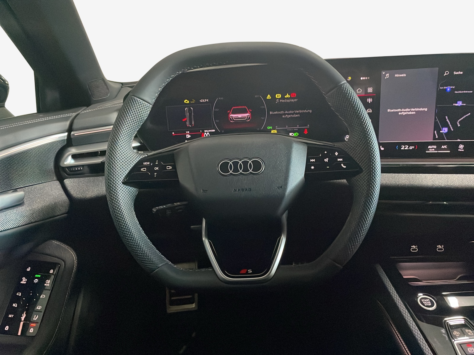 Airbag: Airbag Fahrer und Beifahrer Airbag: Seitenairbags vorn, mit Kopfairbag und Interaktionsairbag vorn Akustisches Fahrzeug-Warnsystem Assist: Ablenkungs- und Müdigkeitserkennung Assist: Adaptiver Geschwindigkeitsassistent Assist: Ausweichassistent und Abbiegeassistent Assist: Einparkhilfe plus mit Distanzanzeige Assist: Kamerabasierte Verkehrszeichenerkennung Assist: Kreuzungsassistent Assist: Notbremsassistent vorn Assist: Parkassistent plus Assist: Spurverlassenswarnung Assist: Traktionskontrolle Assist: Verkehrszeichenbasierter Geschwindigkeitsbegrenzer Audi connect Notruf & Service mit Audi connect Remote & Control Audi virtual cockpit plus Aussenspiegel Fahrerseite asphärisch, Beifahrerseite asphärisch Aussenspiegel elektrisch einstell-, beheiz- und anklappbar, beidseitig automatisch abblendend Aussenspiegel in Wagenfarbe Dachhimmel in Stoff in spezifischer Farbe Dekor: Akzentflächen und Bedientasten schwarz matt Dekor: Aluminiumoptik im Interieur Dekor: Dekoreinlagen Laserstruktur schwarz Dekor: Interieurapplikationen Aluminiumoptik Dekor: Interieurelemente umlaufend Stoff Impressum Einstiegsleisten mit Aluminiumeinlegern vorn Elektrische Fensterheber vorne Elektronisches Stabilitäts-Programm (ESP) Fahrwerk: Standardfahrwerk Fensterzierleisten Aluminiumoptik Frontscheibe in Wärmeschutz- und Akustikverglasung Funkschlüssel, ohne Safelock Fussmatten vorne und hinten Garantie: Audi Garantie 2 Jahre ohne Kilometerbegrenzung (ab 1. Inv.) Getriebe: 7-Stufen Automatisiertes Schaltgetriebe Innenspiegel automatisch abblendbar Kindersicherung, elektrisch Klima: 3-Zonen-Klimatisierungsautomatik Lackierung: Uni-Lackierung Lenkrad: Doppelspeichen-Lederlenkrad mit Multifunktion und Schaltwippen Lenkrad: Lenkradapplikation Chromoptik Lenkrad: Lenkradeinstellung manuell Licht: Fernlicht-Assistent Licht: LED-Heckleuchten pro Licht: LED-Scheinwerfer plus Licht: Tagesfahrlicht mit Assistenzfahrlicht u.Coming- u. Leaving-home Funktion automatisch Media: Audi Application Store und Smartphone-Interface Media: Audi connect Navigation & Infotainment Media: Digitaler Radioempfang Media: FOD Funktionen online verfügbar Media: MMI experience plus Media: Navigationsgerät-High Media: USB-Anschlüsse mit Ladefunktion in erster und zweiter Sitzreihe Modellbezeichnung am Heck Paket: Assistenzpaket Fahren und Parken Paket: Klimatisierungspaket Paket: Paket Premium business Räder: Radschrauben Standard Räder: Reifendruck-Kontrollanzeige Räder: Reifenreparatur-Set (Tire Fit) Räder: Räder, 5-Doppelspeichen Scheiben seitlich und hinten in Wärmeschutzverglasung Schlüssel für Schliesssystem mit Fernbedienung Sitze: Kindersitzbefestigung i-Size auf der Beifahrerseite und i-Size und Top Tether Sitze: Sitzbelegungserkennung Sitze: Vordersitze heizbar Sitze: Vordersitze manuell einstellbar Türen: Gepäckraumklappe elektrisch öffnend und schliessend Türen: Türgriffe in Wagenfarbe Verbandmaterial,Warndreieck und Warnveste Wegfahrsperre elektronisch