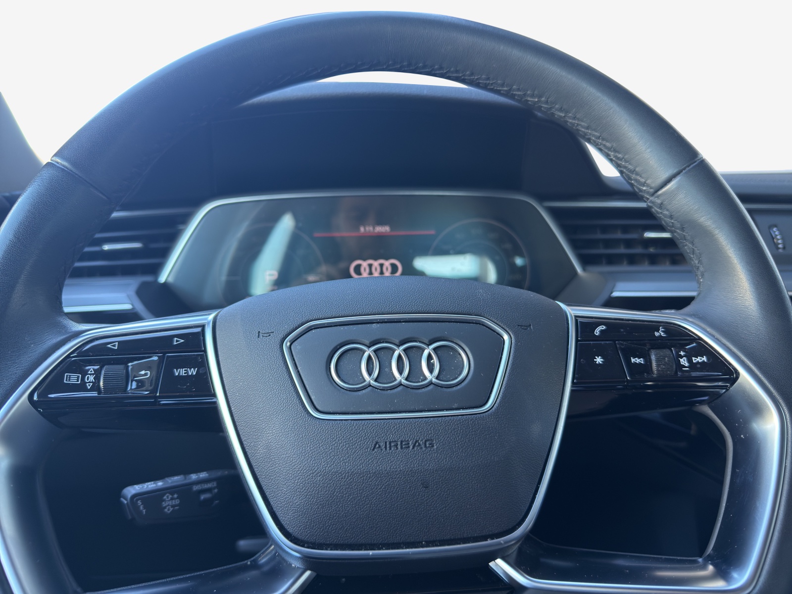 Serienausstattung 3-Punkt-Sicherheitsgurte auf allen Plätzen Airbag: Airbag Beifahrer deaktivierbar Airbag: Seitenairbags vorn und Kopfairbagsystem Akustisches Fahrzeug-Warnsystem (AVAS) Assist: Audi pre sense basic Assist: Audi pre sense front Assist: Einparkhilfe plus mit Umgebungsanzeige Assist: Geschwindigkeitsregelanlage plus Speedlimiter Assist: Kamerabasierte Verkehrszeichenerkennung Assist: Spurverlassenswarnung inkl. Notfallassistent Audi connect Notruf & Service mit Audi connect Remote & Control Aussenspiegel elektrisch einstell- und beheizbar Aussenspiegel in Wagenfarbe Dachhimmel in Stoff in spezifischer Farbe Dekor: Aluminiumeinleger in den Einstiegsleisten vorn und hinten, beleuchtet, vorn mit S-Schriftzug Dekor: Bedientasten schwarz matt Dekor: Dekoreinlagen Feinlack graphitgrau Dekor: Instrumententafel-Oberseite in Kunstleder Diffusor hinten in sportlich markantem Design in schwarz hochglanz Einstiegsleisten mit Aluminiumeinlegern vorne und hinten, beleuchtet, vorne mit S-Schriftzug Elektronisches Stabilitäts-Programm (ESP) Entfall Leistungs- / Technologie-Schriftzug Fahrwerk: Adaptive air suspension sport Frontscheibe in Wärmeschutz- und Akustikverglasung Funkschlüssel, ohne Safelock Garantie: 2 Jahre ohne Kilometerbegrenzung (ab 1. Inv.) Gepäckraumklappe elektrisch öffnend und schliessend Getriebe: Direktantrieb, kein Getriebe Heckscheiben-Wisch-/Waschanlage Innenspiegel automatisch abblendend, rahmenlos Klima: 2-Zonen-Komfortklimaautomatik Klima: Standklimatisierung Lackierung: Bottom line in Volllackierung (Wagenfarbe) Lackierung: Uni-Lackierung Ladekabel Mode 3 für öffentliches Laden bis 22 kW Lenkrad: Doppelspeichen-Lederlenkrad mit Multifunktion und Schaltwippen Licht: Drittes Bremslicht Licht: LED- Hauptscheinwerfer mit Linse Licht: LED-Scheinwerfer mit Vorbereitung für weitere Lichtfunktionen Licht: Nebelschlussleuchte Manuelle Gepäckraumabdeckung Media: Audi connect Navigation & Infotainment Media: Audi music interface Media: Bluetooth-Schnittstelle Media: Digitaler Radioempfang Media: MMI Navigationssystem Plus mit MMI touch Media: Smartphone Interface On-board-Ladegerät bis 11 kW (AC) Räder: Leichtmetallräder 20", 5-Arm-Dynamik, graphitgrau, glanzgedreht Räder: Reifendruck-Kontrollanzeige Räder: Reifenreparatur-Set (Tire Fit) Scheiben seitlich und hinten in Wärmeschutzverglasung Singleframe mit markanter Wabenstruktur in Heklagrau mit Singleframe-Maske in schwarz hochglanz Sitze: Kindersitzbefestigung ISOFIX für den Beifahrersitz Sitze: Kindersitzbefestigung ISOFIX und Top Tether für die Rücksitzbank Sitze: Kopfstützen hinten (3 Stück) Sitze: Vordersitze manuell einstellbar Verbandmaterial,Warndreieck und Warnveste Wegfahrsperre elektronisch Zentralverriegelung mit Fernbedienung