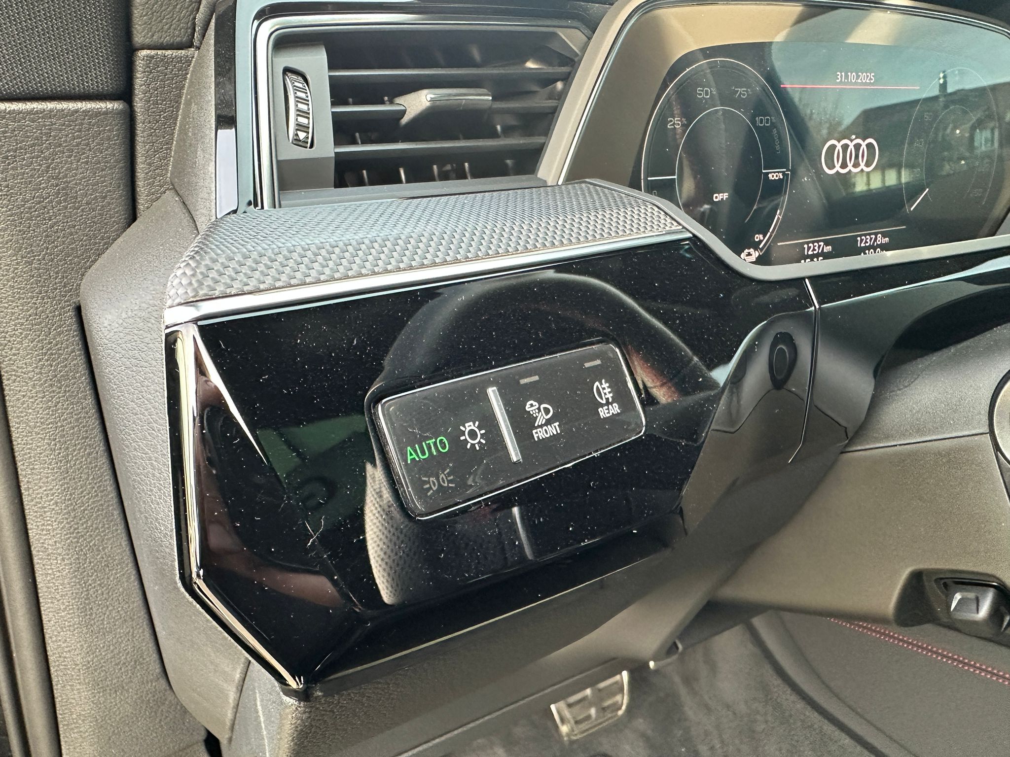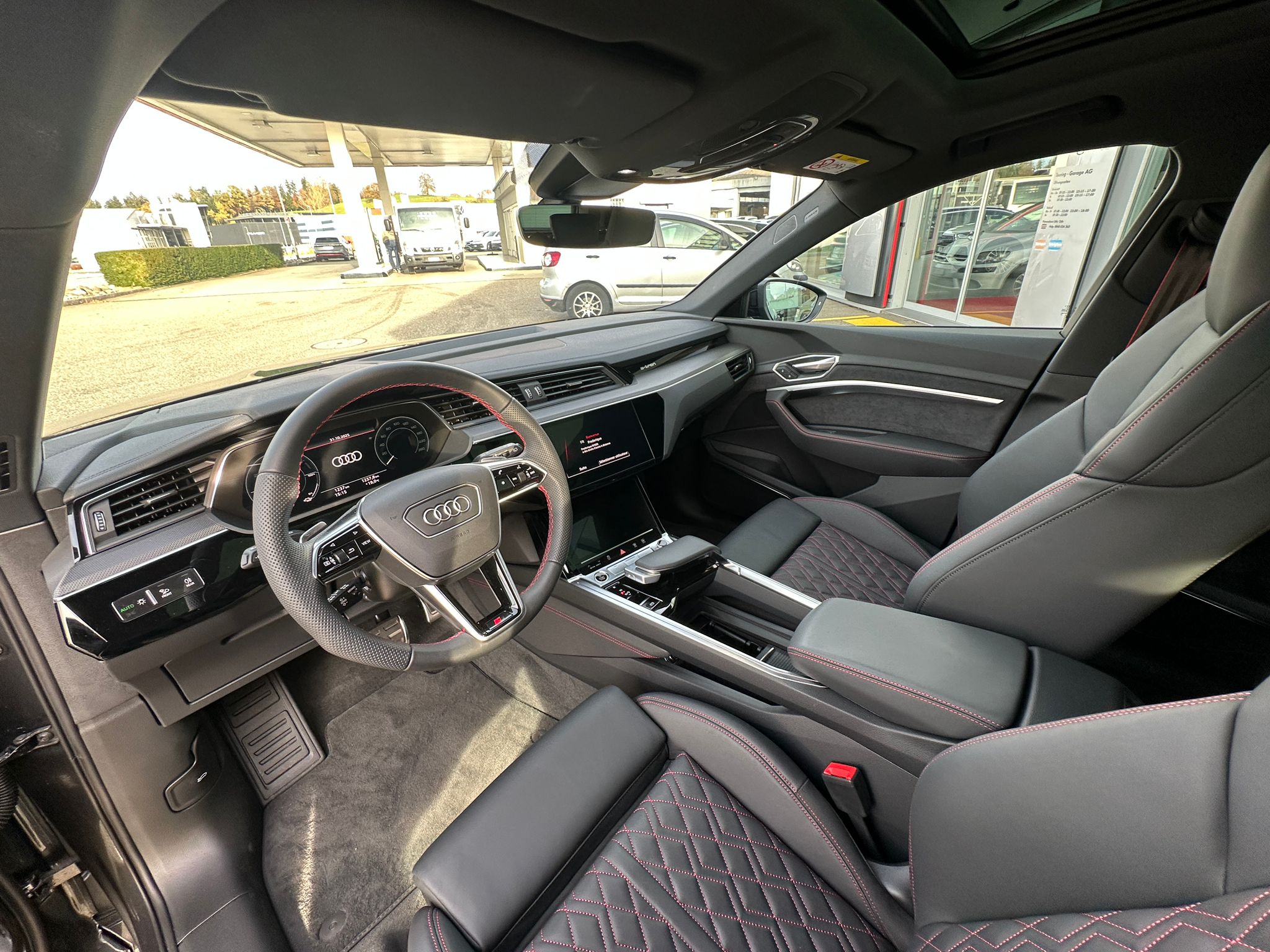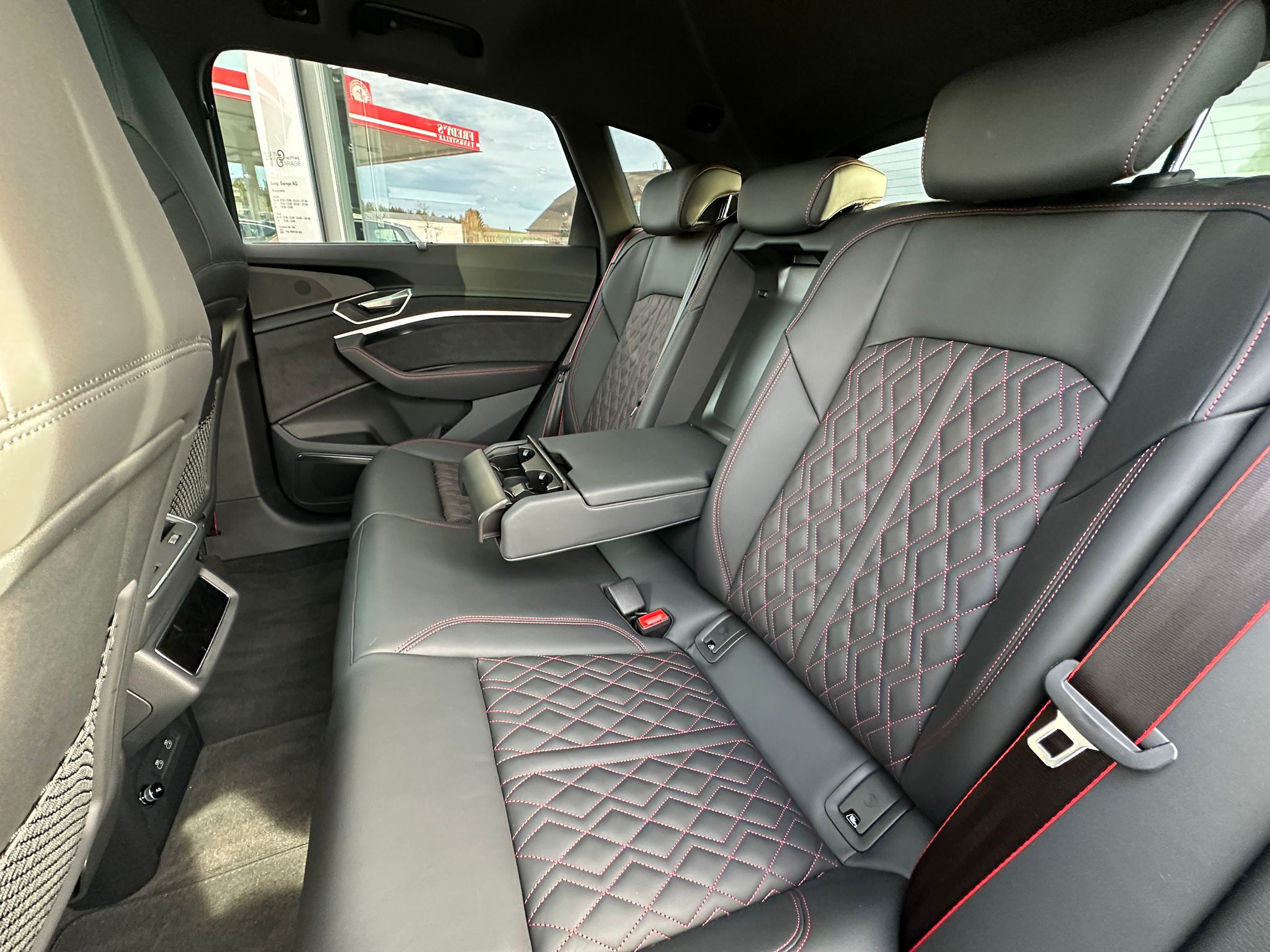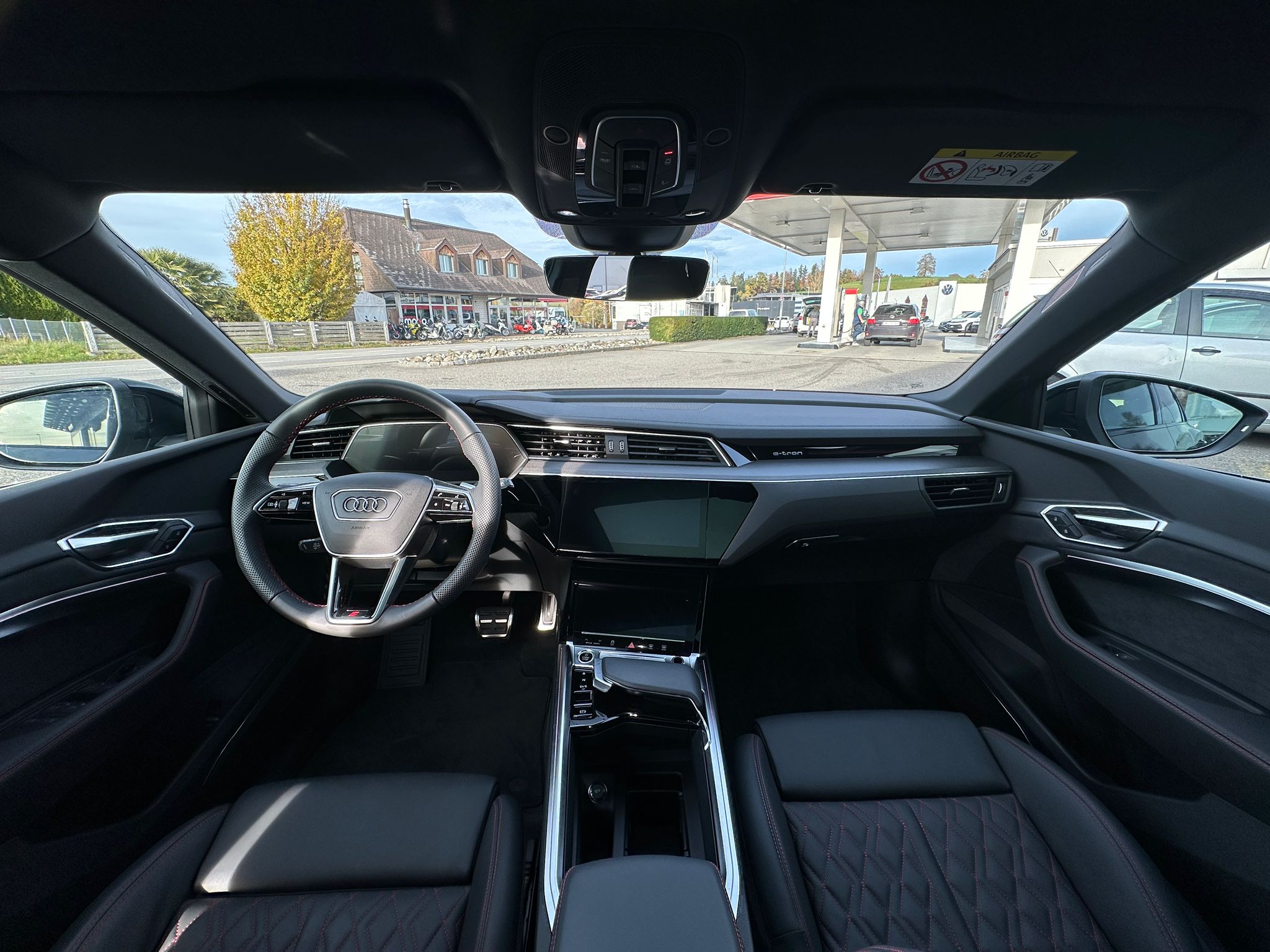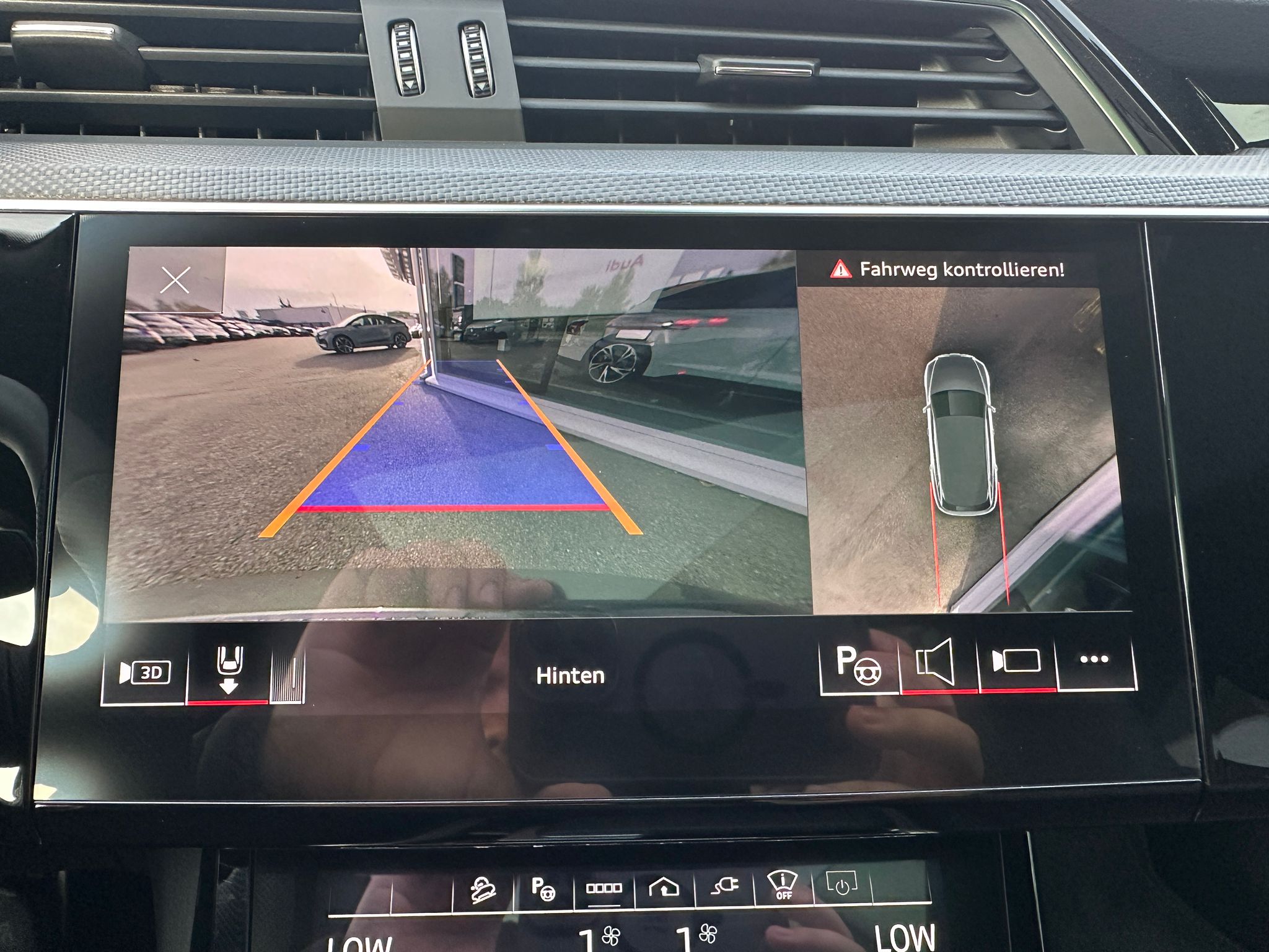 Akustikverglasung für Tür- und Seitenscheiben Audi virtual cockpit plus Aussenspiegel elektrisch, beheiz- und anklappbar, automatisch abblendend, mit Memory-Funktion Bordwerkzeug und Wagenheber Dekor: Farbnähte in Rot Audi Sport Entfall Modellbezeichnung Garantie: Audi Garantie: 5 Jahre oder 100'000 km (ab 1. Inv.) Haushaltsstecker Typ J (Schweiz) für das e-tron Ladesystem Industriestecker CEE 32A, 400V, lang und gerade Klima: 4-Zonen-Komfortklimaautomatik Klima: Standklimatisierung Komfort Komfortmittelarmlehne vorne Komfortschlüssel inklusive sensorgesteuerter Gepäckraumentriegelung Lenkrad: Lenkradeinstellung elektrisch Lenkrad: Sportlederlenkrad mit Multifunktion, Schaltwippen und Lenkradheizung Licht: Matrix LED-Scheinwerfer und LED-Heckleuchten Media: USB-Anschlüsse mit Ladefunktion im Fond On-Board-Ladegerät bis 22 kW (AC) Paket: Ablagen- und Gepäckraumpaket Paket: Assistenzpaket Stadt Paket: Assistenzpaket Tour Polster : Leder/ Kunstleder/mono. pur 550-Kombination Polster: Leder Valcona mit S-Prägung Räder: Räder Audi Sport, 6-Segmentspeichen, schwarz metallic, glanzgedreht Sitze: Sportsitze plus vorne Sonnenschutzrollo manuell für die Türscheiben hinten Sonnenschutzverglasung, abgedunkelt e-tron Ladesystem kompakt