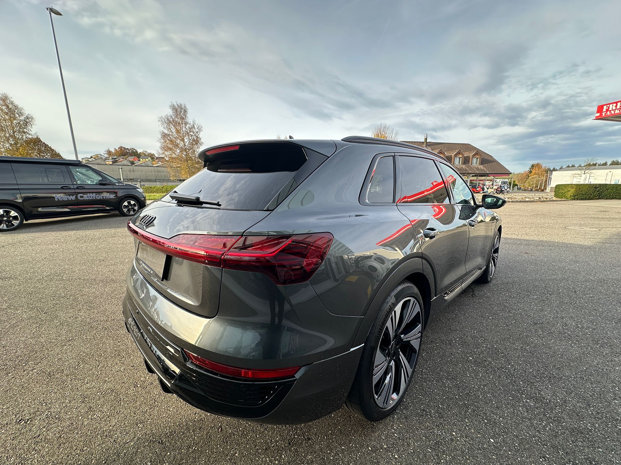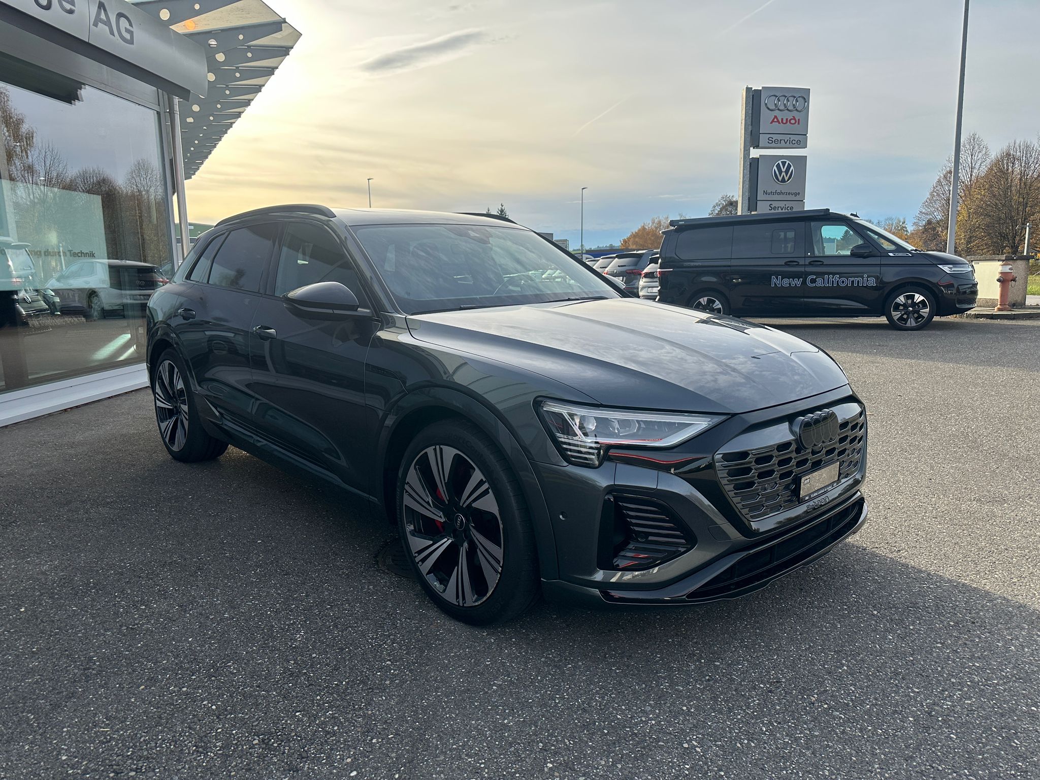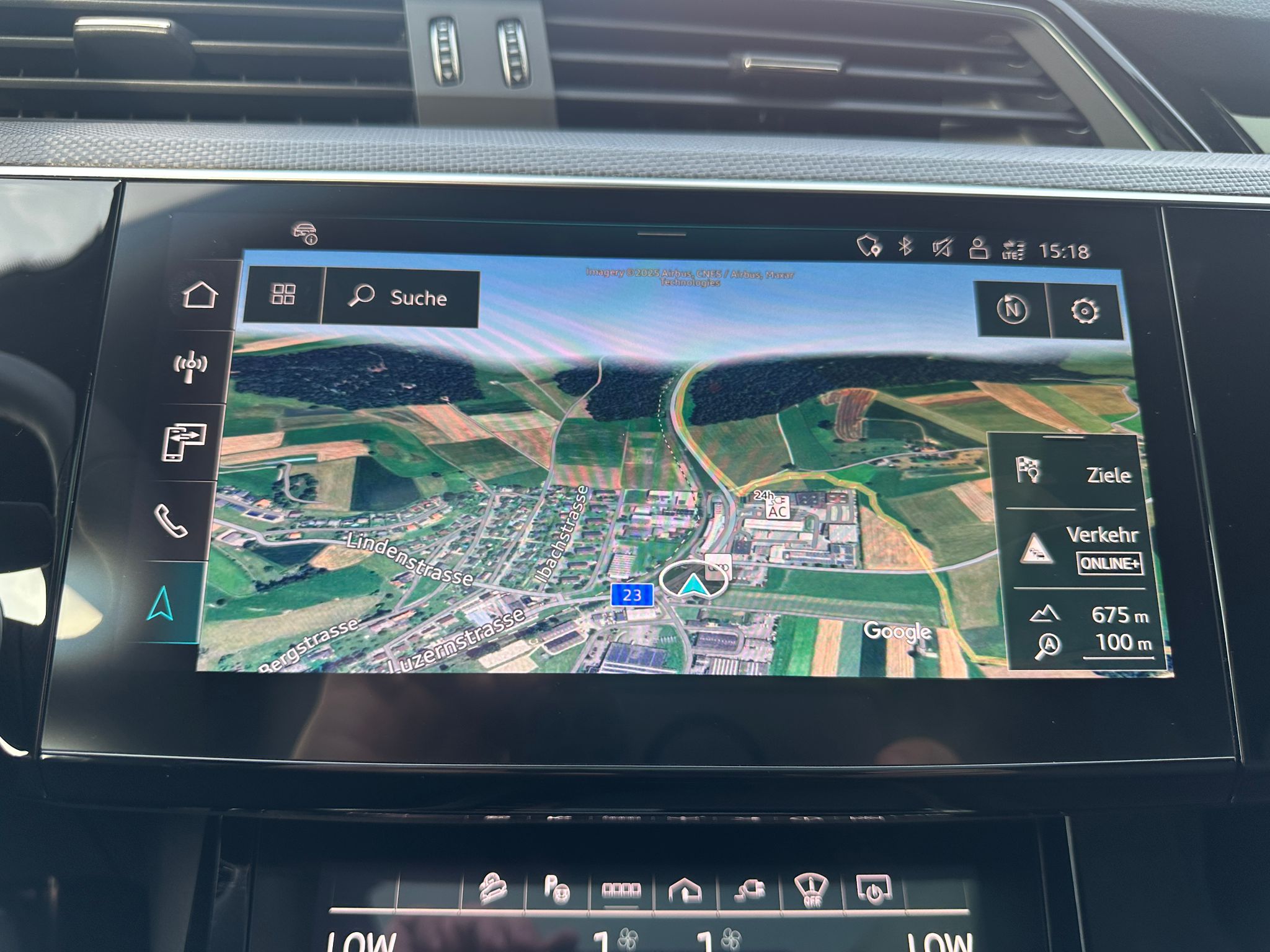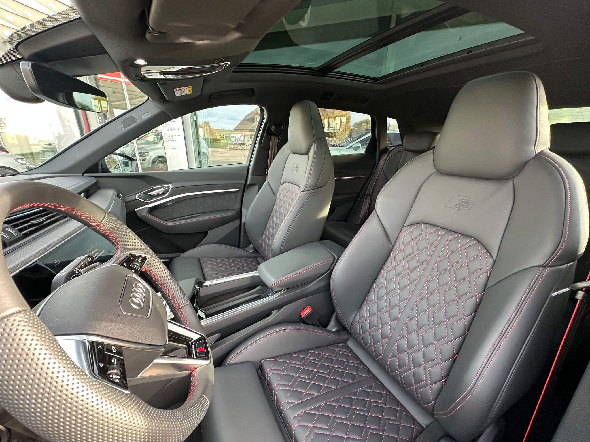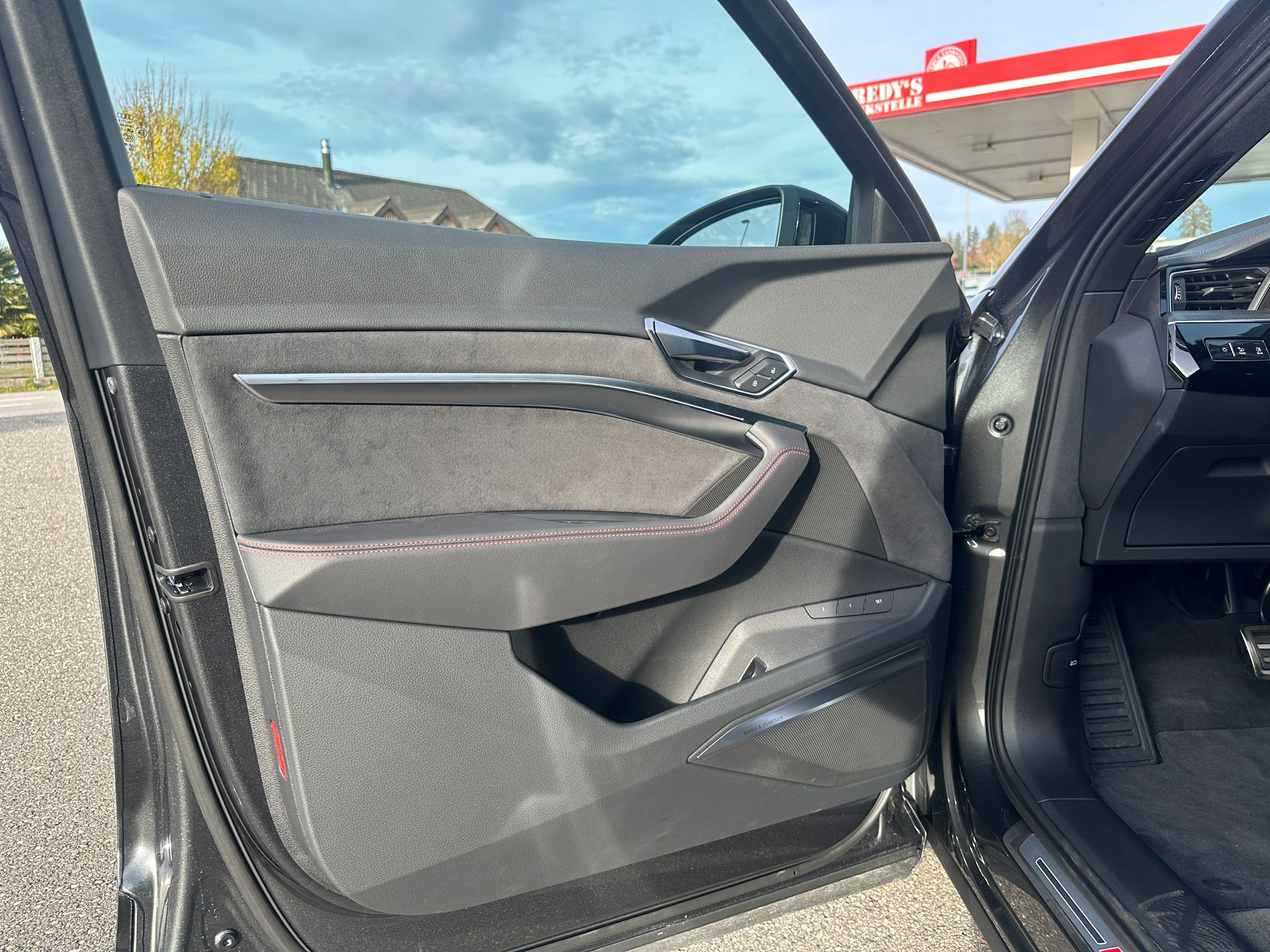 Akustikverglasung für Tür- und Seitenscheiben Audi virtual cockpit plus Aussenspiegel elektrisch, beheiz- und anklappbar, automatisch abblendend, mit Memory-Funktion Bordwerkzeug und Wagenheber Dekor: Farbnähte in Rot Audi Sport Entfall Modellbezeichnung Garantie: Audi Garantie: 5 Jahre oder 100'000 km (ab 1. Inv.) Haushaltsstecker Typ J (Schweiz) für das e-tron Ladesystem Industriestecker CEE 32A, 400V, lang und gerade Klima: 4-Zonen-Komfortklimaautomatik Klima: Standklimatisierung Komfort Komfortmittelarmlehne vorne Komfortschlüssel inklusive sensorgesteuerter Gepäckraumentriegelung Lenkrad: Lenkradeinstellung elektrisch Lenkrad: Sportlederlenkrad mit Multifunktion, Schaltwippen und Lenkradheizung Licht: Matrix LED-Scheinwerfer und LED-Heckleuchten Media: USB-Anschlüsse mit Ladefunktion im Fond On-Board-Ladegerät bis 22 kW (AC) Paket: Ablagen- und Gepäckraumpaket Paket: Assistenzpaket Stadt Paket: Assistenzpaket Tour Polster : Leder/ Kunstleder/mono. pur 550-Kombination Polster: Leder Valcona mit S-Prägung Räder: Räder Audi Sport, 6-Segmentspeichen, schwarz metallic, glanzgedreht Sitze: Sportsitze plus vorne Sonnenschutzrollo manuell für die Türscheiben hinten Sonnenschutzverglasung, abgedunkelt e-tron Ladesystem kompakt