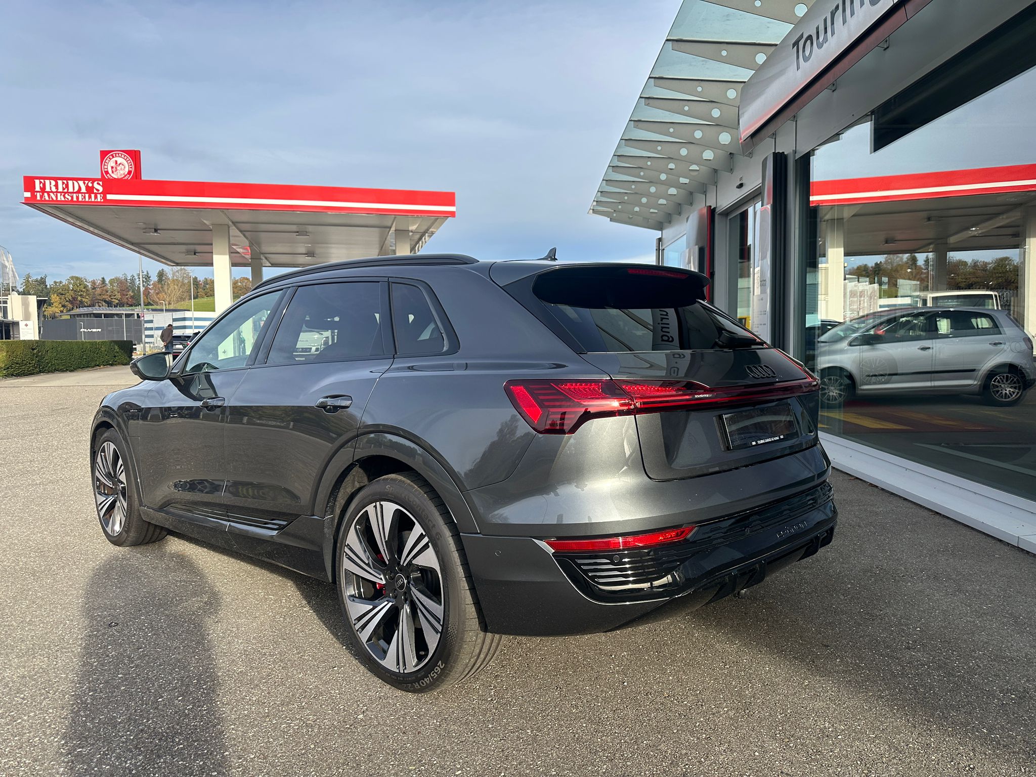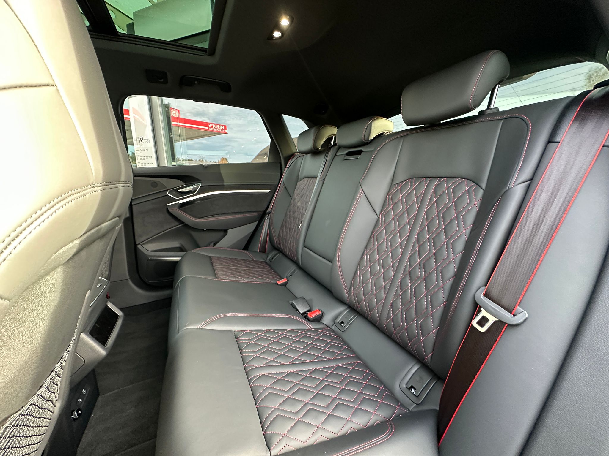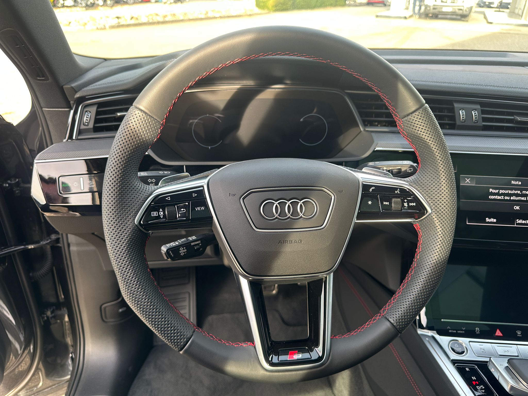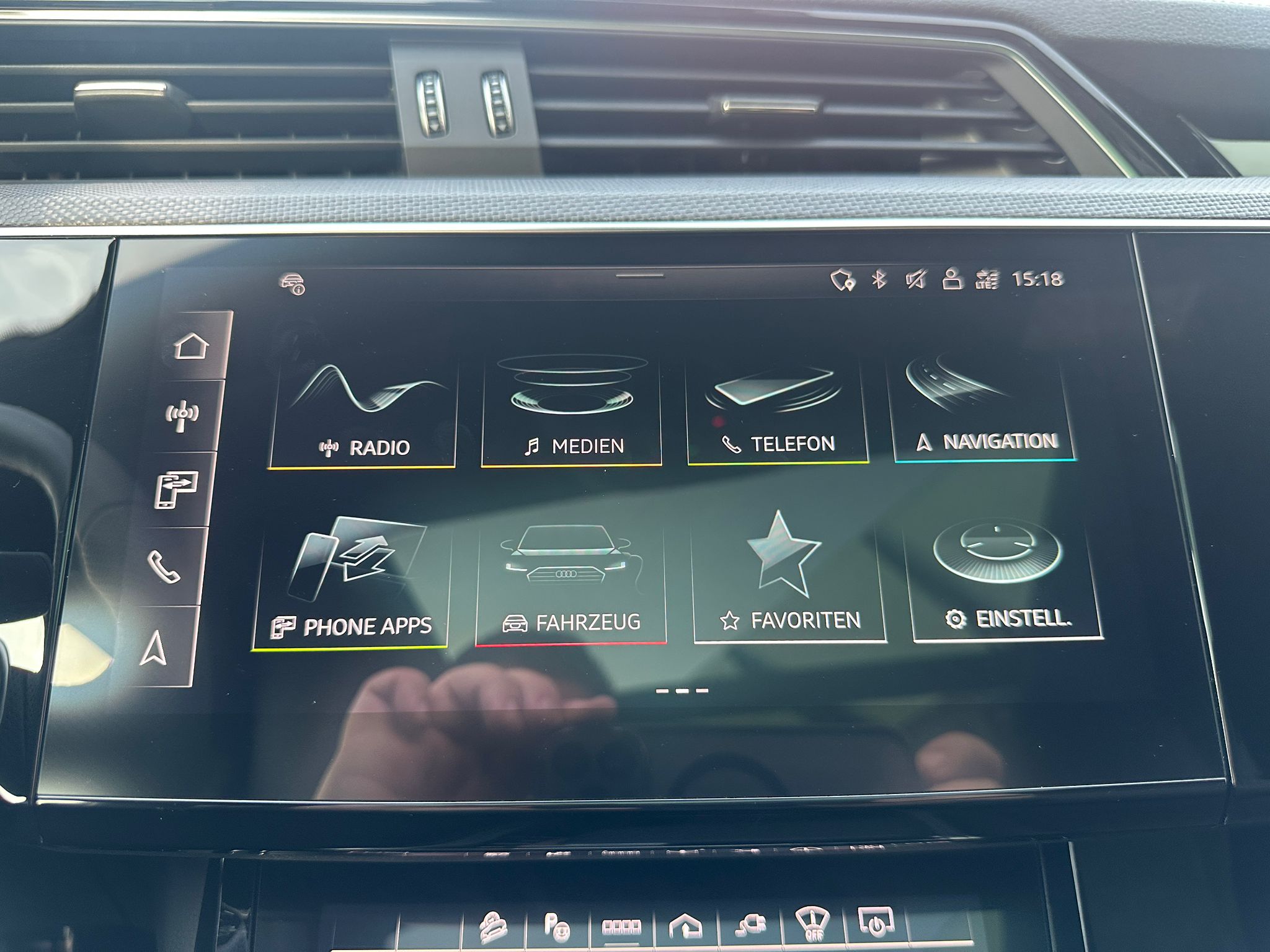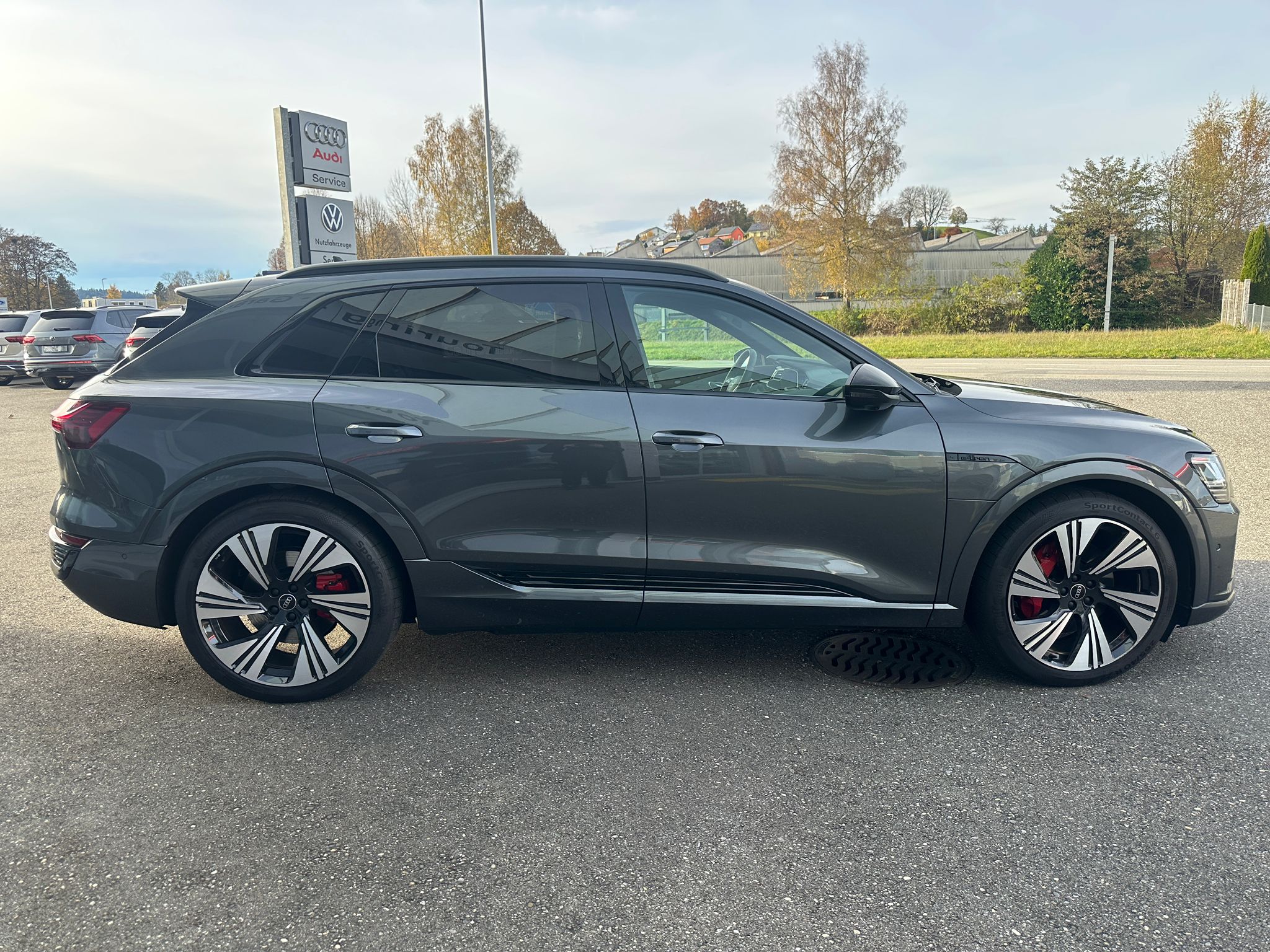 Akustikverglasung für Tür- und Seitenscheiben Audi virtual cockpit plus Aussenspiegel elektrisch, beheiz- und anklappbar, automatisch abblendend, mit Memory-Funktion Bordwerkzeug und Wagenheber Dekor: Farbnähte in Rot Audi Sport Entfall Modellbezeichnung Garantie: Audi Garantie: 5 Jahre oder 100'000 km (ab 1. Inv.) Haushaltsstecker Typ J (Schweiz) für das e-tron Ladesystem Industriestecker CEE 32A, 400V, lang und gerade Klima: 4-Zonen-Komfortklimaautomatik Klima: Standklimatisierung Komfort Komfortmittelarmlehne vorne Komfortschlüssel inklusive sensorgesteuerter Gepäckraumentriegelung Lenkrad: Lenkradeinstellung elektrisch Lenkrad: Sportlederlenkrad mit Multifunktion, Schaltwippen und Lenkradheizung Licht: Matrix LED-Scheinwerfer und LED-Heckleuchten Media: USB-Anschlüsse mit Ladefunktion im Fond On-Board-Ladegerät bis 22 kW (AC) Paket: Ablagen- und Gepäckraumpaket Paket: Assistenzpaket Stadt Paket: Assistenzpaket Tour Polster : Leder/ Kunstleder/mono. pur 550-Kombination Polster: Leder Valcona mit S-Prägung Räder: Räder Audi Sport, 6-Segmentspeichen, schwarz metallic, glanzgedreht Sitze: Sportsitze plus vorne Sonnenschutzrollo manuell für die Türscheiben hinten Sonnenschutzverglasung, abgedunkelt e-tron Ladesystem kompakt