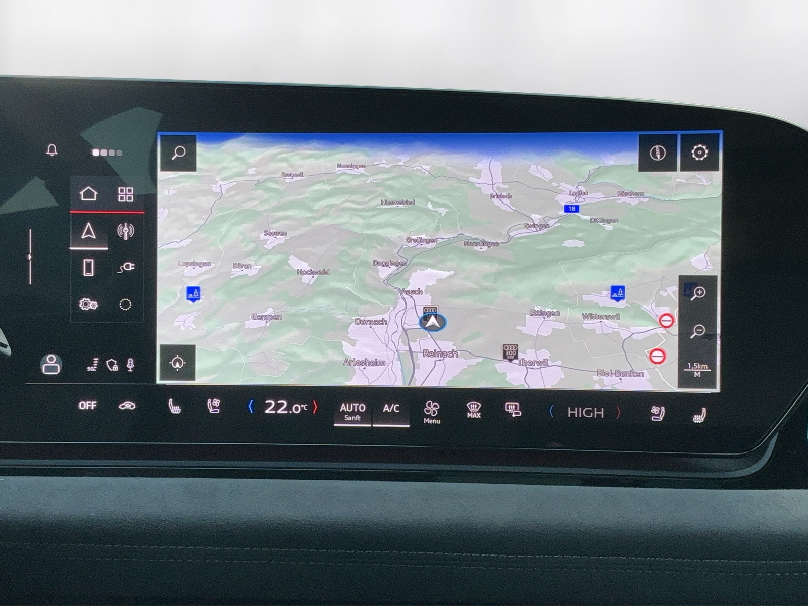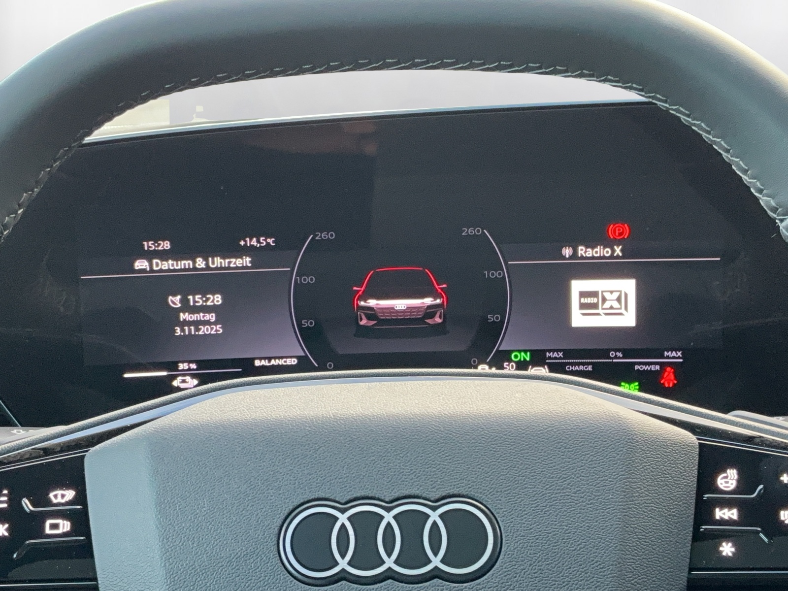 Airbag: Airbag Beifahrer deaktivierbar Airbag: Airbag Fahrer und Beifahrer Airbag: Seitenairbag vorn, mit Kopfairbag und Interaktionsairbag vorn Akustikverglasung Türscheiben vorn Akustisches Fahrzeug-Warnsystem Assist: Adaptiver Geschwindigkeitsassistent Assist: Aufmerksamkeits- und Müdigkeitserkennung Assist: Ausweichassistent und Abbiegeassistent Assist: Einparkhilfe plus mit Distanzanzeige Assist: Kamerabasierte Verkehrszeichenerkennung Assist: Kreuzungsassistent Assist: Notbremsassistent vorn Assist: Parkassistent plus Assist: Querverkehrassistent vorn Assist: Spurverlassenswarnung inkl. Notfallassistent Assist: Traktionskontrolle Assist: Verkehrszeichenbasierter Geschwindigkeitsbegrenzer Audi connect Notruf & Service mit Audi connect Remote & Control Audi virtual cockpit plus Aussenspiegel elektrisch einstell-, beheiz- und anklappbar, beidseitig automatisch abblendend Aussenspiegel in Wagenfarbe Dachhimmel Stoff, Farbe felsgrau Dekor: Dekoreinlage Aluminium matt gebürstet anthrazit Dekor: Dekoreinlagen Aluminium matt gebürstet mit Linearprägung anthrazit Dekor: Dekoreinlagen Audi exclusive Dekor: Instrumententafel-Oberseite schwarz mit Kontrastnaht Dekor: Interieurapplikationen Vanadiumoptik Dekor: Interieurelemente oben und unten Kunstleder Einstiegsleisten mit Aluminiumeinlegern vorn Elektrische Fensterheber vorne Elektronisches Stabilitäts-Programm (ESP) Entfall Modellbezeichnung Fahrwerk: Dynamikfahrwerk Fensterzierleisten Aluminiumoptik Fussmatten vorne und hinten Garantie: Audi Garantie 2 Jahre ohne Kilometerbegrenzung (ab 1. Inv.) Garantie: Audi Swiss Service Package + (ASSP+) Gepäckraumklappe elektrisch öffnend und schliessend Getriebe: Direktantrieb, kein Getriebe Industriestecker CEE 16A, 400V, lang und gerade für das e-tron Ladesystem Industriestecker CEE 32A, 400V, lang und gerade Innenspiegel automatisch abblendbar Interieur mit Normalsitzen, Stoff schwarz Klima: 3-Zonen-Klimatisierungsautomatik Klima: Automatische Umluftregelung Klima: Elektrische Luftzusatzheizung Komfortschlüssel mit Safelock Komfortschlüssel ohne Safelock Lackierung: Uni-Lackierung Ladekabel Mode 3 für öffentliches Laden bis 22 kW Lenkrad: Doppelspeichen-Lederlenkrad mit Multifunktion Lenkrad: Lenkradapplikation Chromoptik Lenkrad: Lenkradeinstellung manuell Licht: LED-Scheinwerfer plus Licht: Projektionsleuchte in den Aussenspiegeln Licht: Tagesfahrlicht mit Assistenzfahrlicht u.Coming- u. Leaving-home Funktion automatisch Media: Audi Application Store und Smartphone-Interface Media: Audi connect Navigation & Infotainment Media: Digitaler Radioempfang Media: FOD Funktionen online verfügbar Media: LTE-Unterstützung für Audi phone box Media: MMI Beifahrerdisplay Media: MMI experience plus Media: USB-Schnittstellen mit erhöhter Ladeleistung Modellkennzeichnung am Heck On-board-Ladegerät bis 11 kW (AC) Paket: Ambiente Lichtpaket Paket: Assistenzpaket Fahren und Parken Räder: Reifendruck-Kontrollanzeige Räder: Reifenreparatur-Set (Tire Fit) Räder: Räder, 5-Arm-Dynamik, platingrau Scheinwerfer-Reinigungsanlage Schlüssel für Schliesssystem mit Fernbedienung Sitze: 4-Wege-Lendenwirbelstütze für die Vordersitze Sitze: Kindersitzbefestigung i-Size auf der Beifahrerseite und i-Size und Top Tether Sitze: Rücksitzbank ungeteilt, Lehne geteilt umlegbar (dreiteilig) mit Mittelarmlehne Sitze: Vordersitze heizbar Sitze: Vordersitze manuell einstellbar Telefonablage mit induktiver Ladefunktion Türen: Türgriffe in Wagenfarbe Verbandmaterial mit 2 Warndreiecken Verbandmaterial,Warndreieck und Warnveste Vorbereitung für Anhängevorrichtung Vorbereitung für intelligente Ladefunktionen Wegfahrsperre elektronisch Wärmeschutz- und Akustikverglasung Frontscheibe Zentralverriegelung mit Fernbedienung