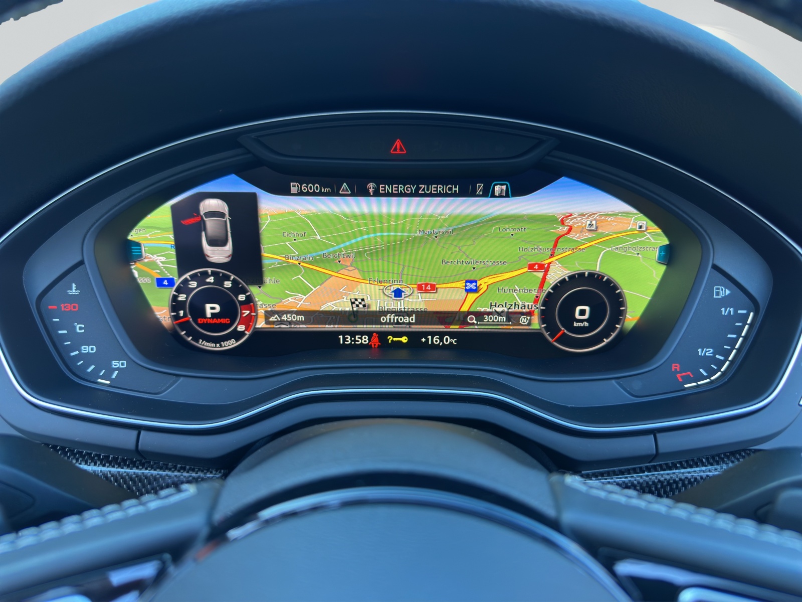 Alu-Räder 8.5J x 19 im 5-Speichen-Design Assist: Audi active lane assist Assistenzpaket Stadt+Parken Audi Smartphone Interface Audi virtual cockpit 12,3'' Aussenspiegel rechts und links beheizbar und elektrisch anklappbar Dekor: Interieurelemente in Kunstleder MMI Navigationssystem Plus Media: Bang & Olufsen Soundsystem Multifunktions-Sportlenkrad in Leder, Sitze: S Sportsitze vorne
