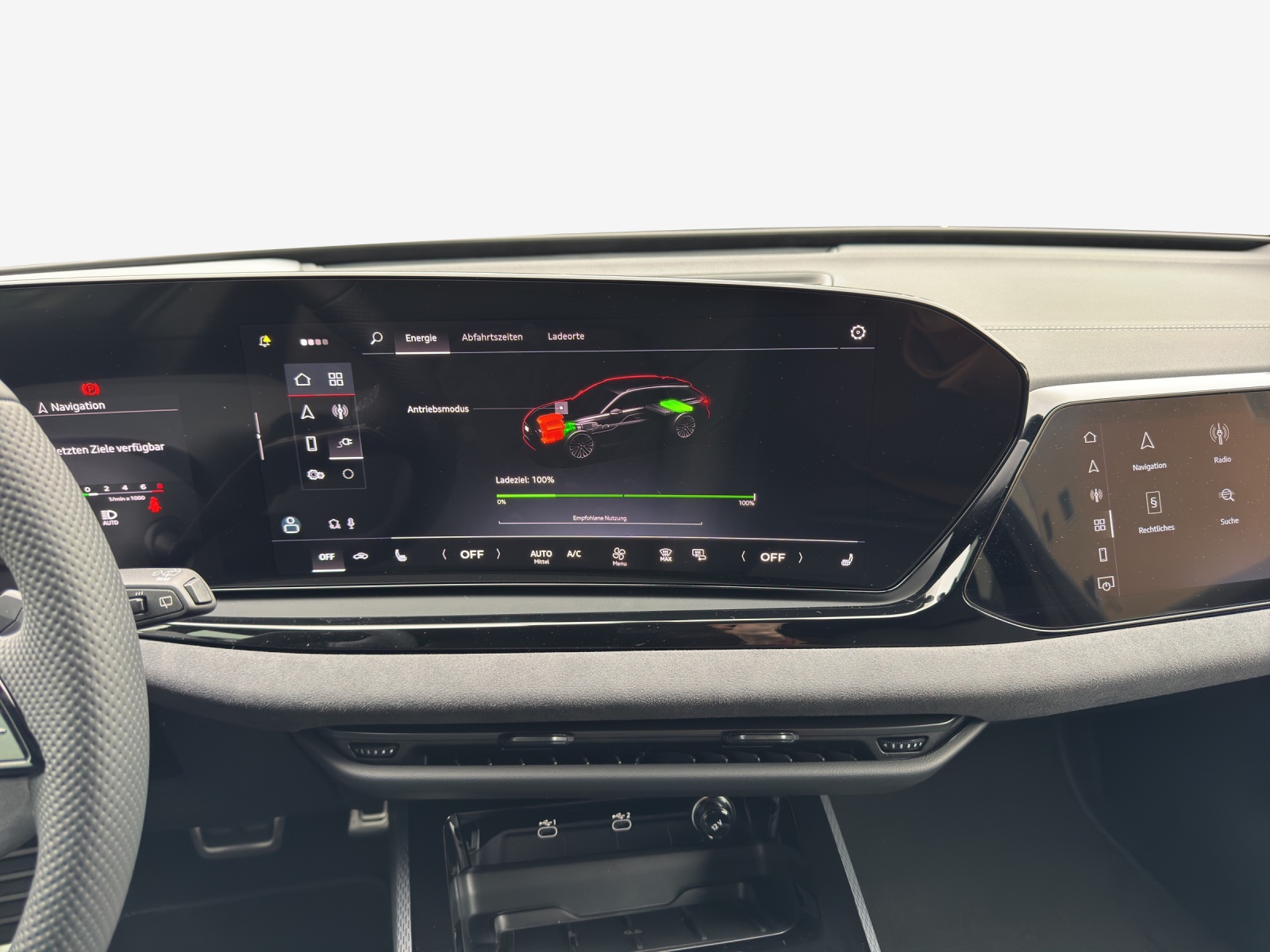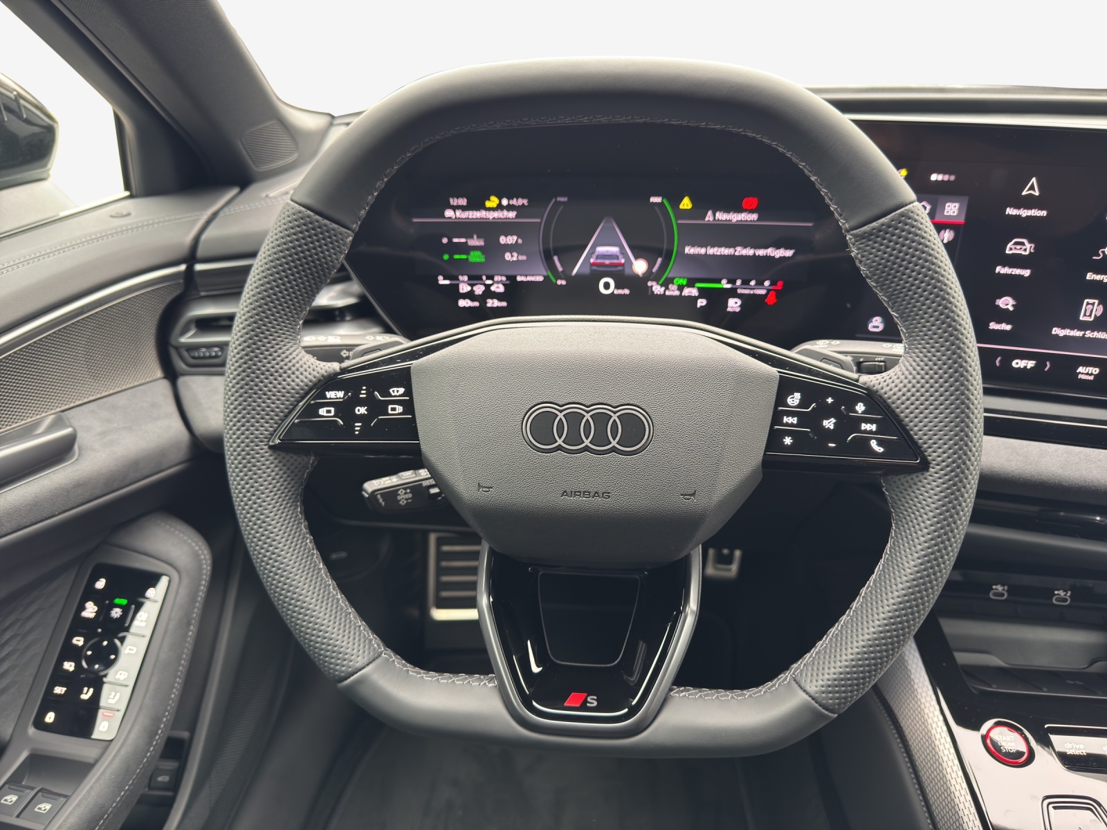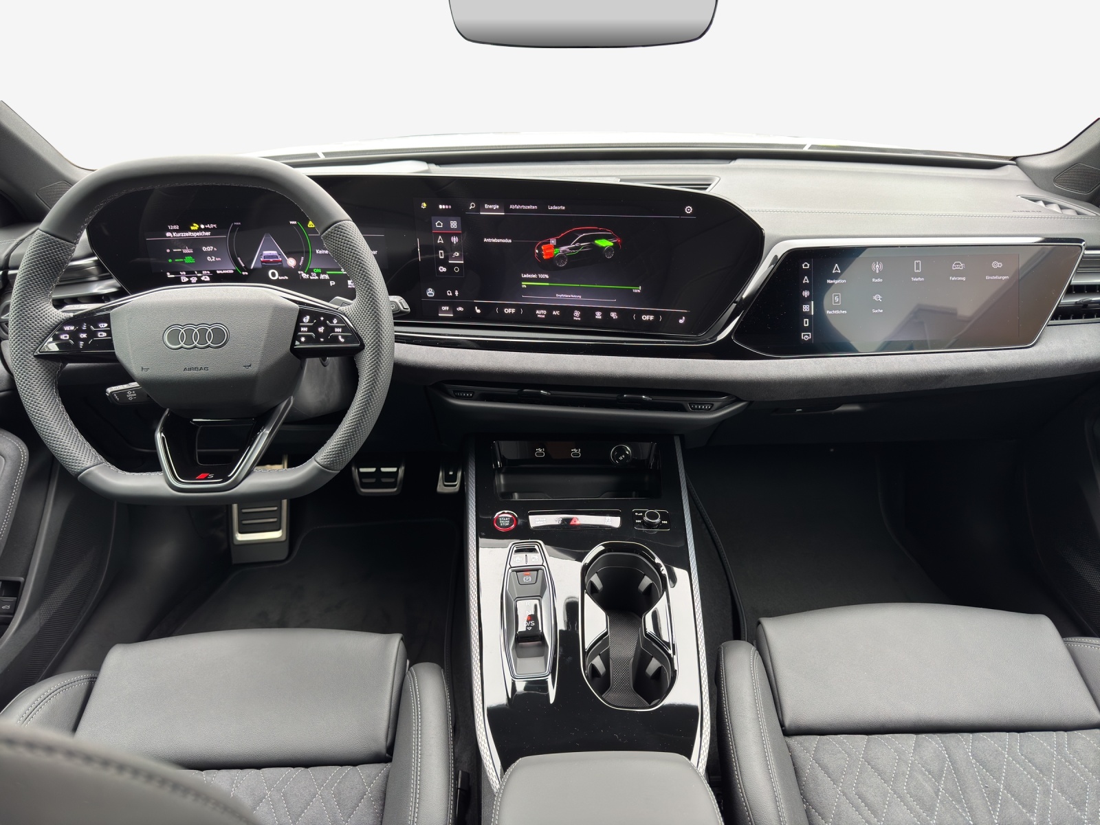 Akustikverglasung für Türscheiben vorn Assist: Spurverlassenswarnung inkl. Notfallassistent Dekor: Interieurapplikationen Vanadiumoptik Entfall Modellbezeichnung Haushaltsstecker Typ J (Schweiz) für das e-tron Ladesystem Industriestecker CEE 32A, 400V, lang und gerade Insassenerkennung im Fond Klima: Standklimatisierung Komfort Lackierung: Metallic-Lackierung Licht: Einstiegs-LED mit Logoprojektion vorn Paket: Interieur S mit Sportsitzen plus, Mikrofaser Dinamica/Leder-Kombination schwarz Räder: Räder Audi Sport, Vielspeichen-S, schwarz metallic, glanzgedreht Sonnenschutzrollo manuell für die Türscheiben hinten e-tron Ladesystem kompakt