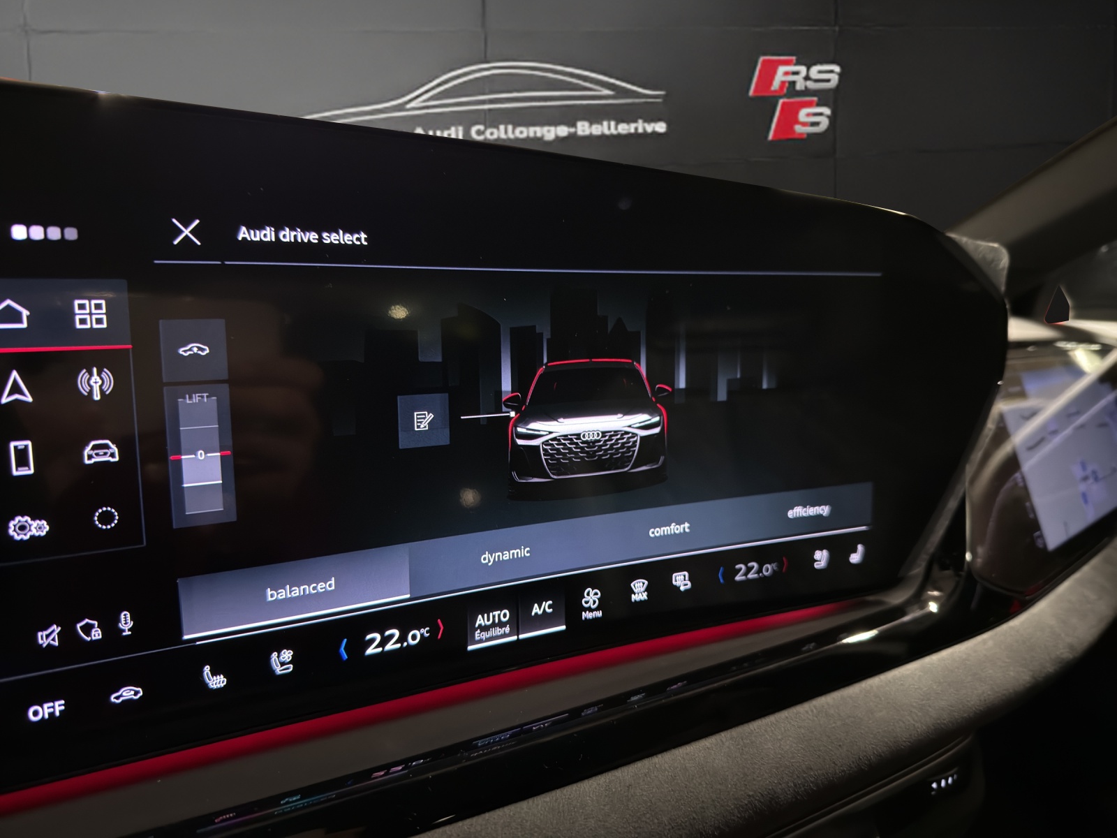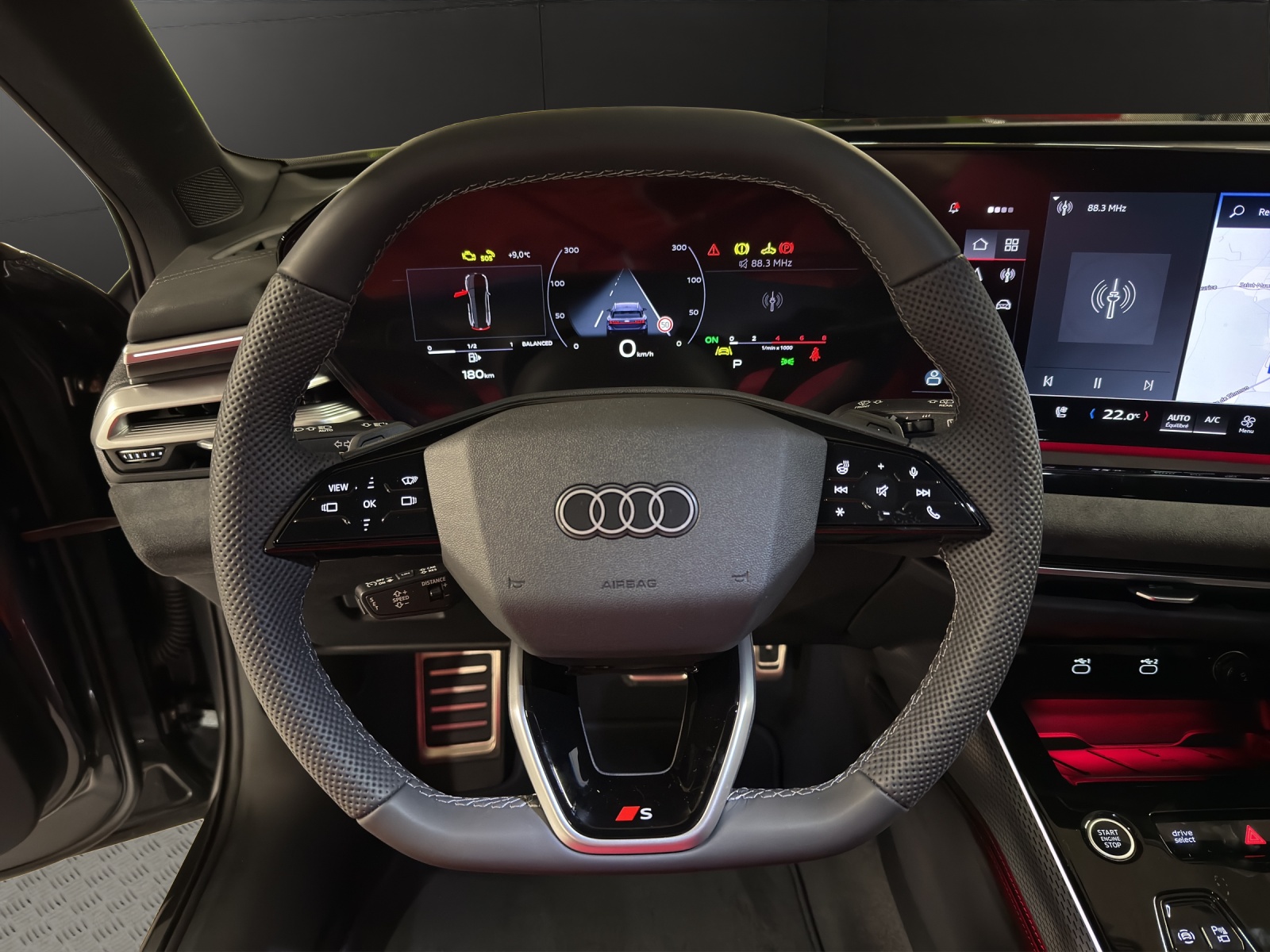 Akustikverglasung für Tür- und Seitenscheiben Assist: Assistant de conduite adaptatif plus Assist: Spurverlassenswarnung inkl. Notfallassistent Attelage pour remorque orientable mécaniquement Dekor: Dekoreinlagen Aluminium matt gebürstet mit Linearprägung anthrazit Fahrwerk: Adaptive air suspension Fahrwerk: Bremssättel rot lackiert Garantie: Audi Garantie: 5 Jahre oder 100'000 km (ab 1. Inv.) Lumière: Éclairage de seuil à LED avec projection du logo à lavant Media: Bang & Olufsen Premium Soundsystem mit 3D Klang Media: LTE-Unterstützung für Audi phone box Pack: Pack Premium Experience Paket: Ambiente Lichtpaket plus Roues: Jantes Audi Sport, multibranches, noir métallisé Toit panoramique vitré avec transparence commutable Vitrage de contrôle solaire, obscurci