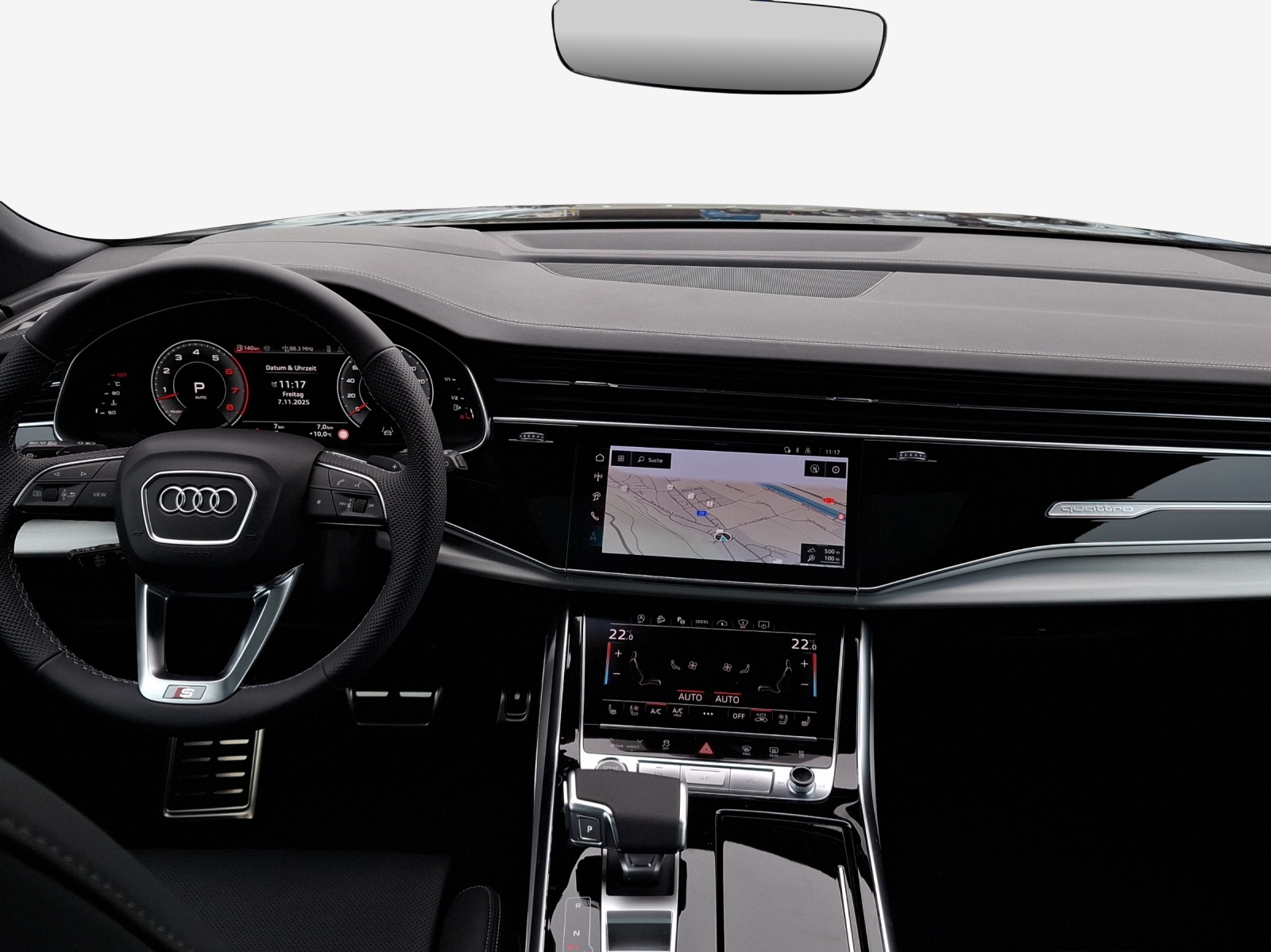 Akustikverglasung für Tür- und Seitenscheiben Audi virtual cockpit plus Aussenspiegel elektrisch einstell-, beheiz- und anklappbar, beidseitig automatisch abblendend Dachhimmel in Stoff schwarz Dekor: Bedientasten schwarz glänzend mit haptischem Feedback und Aluminiumoptik Interieur Dekor: Interieurelement oben in Leder und Interieurelemente unten in Kunstleder Fahrwerk: Adaptive air suspension sport Frontscheibe in Klimakomfort-/Akustikverglasung, drahtlos beheizbar Klima: Ionisator und Aromatisierung Klima: Komfortklimaautomatik 4-Zonen Klima: Standheizung und -lüftung Komfortmittelarmlehne vorn Lackierung: Individuallackierung Audi exclusive Lenkrad: Lederlenkrad im 3-Speichen-Design mit Multifunktion, Schaltwippen und Lenkradheizung Lenkrad: Lenkradeinstellung elektrisch Licht: Digitale OLED-Heckleuchten Licht: HD Matrix LED-Scheinwerfer mit Audi Laserlicht, LED-Heckleuchten Media: USB-Anschlüsse mit Ladefunktion im Fond Paket: Ambiente Lichtpaket plus Paket: Assistenzpaket Parken mit Parkassistent plus Paket: Assistenzpaket Stadt Paket: Assistenzpaket Tour Paket: Assistenzpaket plus Paket: Optikpaket schwarz plus Pedalerie und Fussstütze in Edelstahl Polster : Leder Valcona mit S-Prägung und Rautensteppung Räder: Leichtmetallräder im 5-W-Speichen-Design, graphitgrau, glanzgedreht Sitze: Sitzbelüftung und Massagefunktion vorne Sitze: Sitzheizung vorne und hinten Sitze: Vordersitze elektrisch verstellbar, Fahrersitz mit Memory-Funktion Sonnenschutzverglasung, abgedunkelt