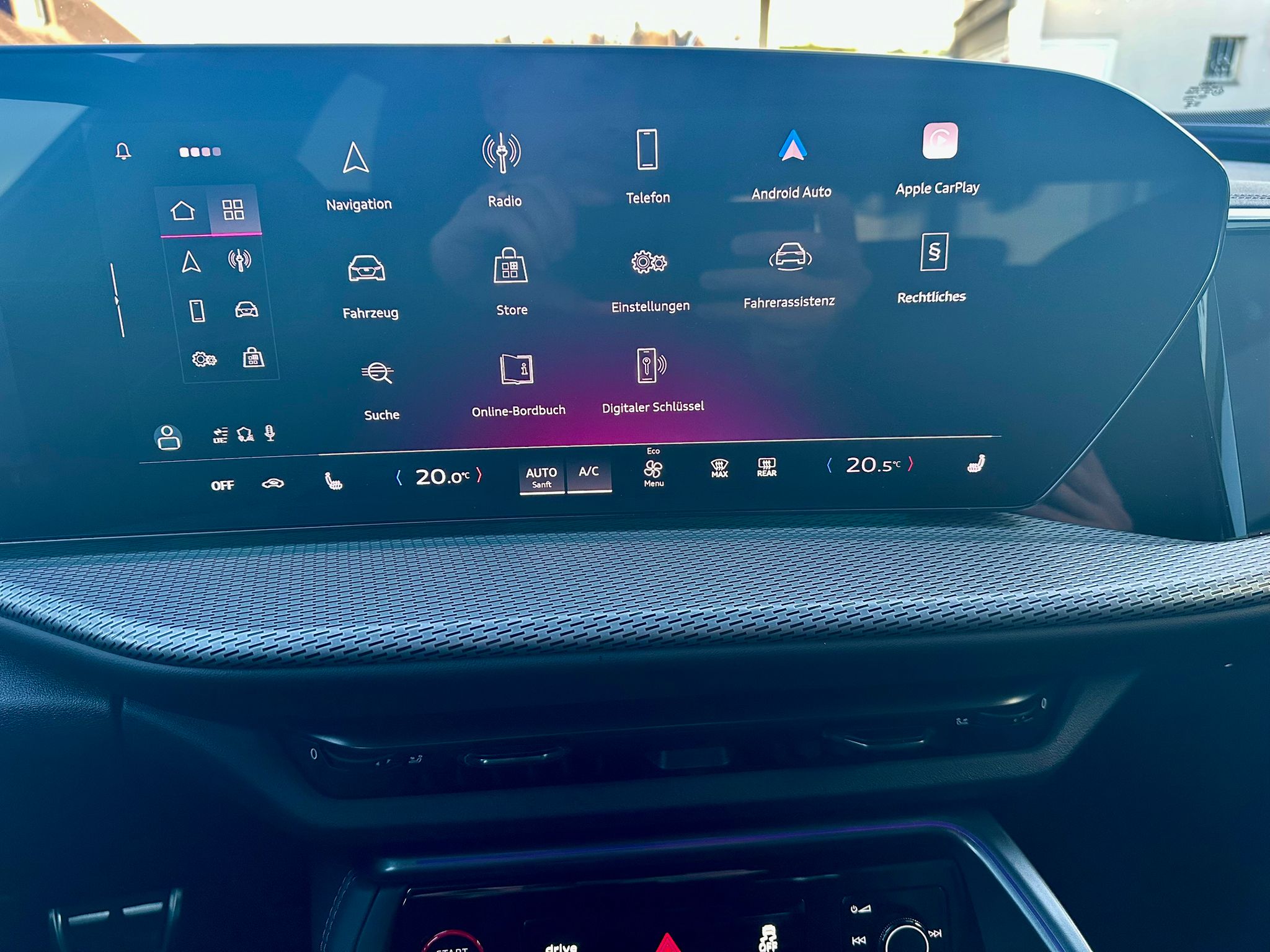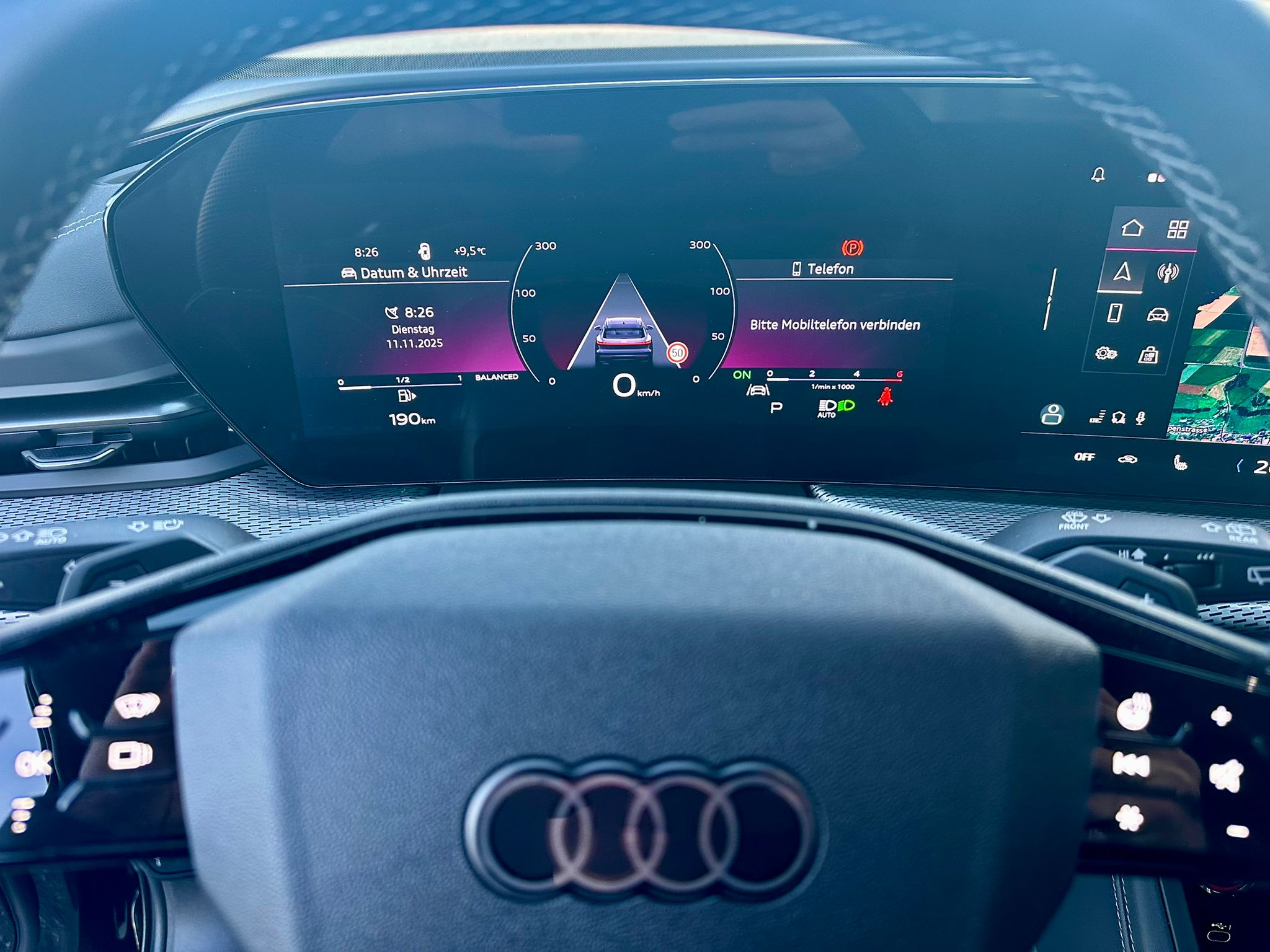 Akustikverglasung für Türscheiben vorn Assist: Adaptiver Fahrassistent plus Aussenspiegelgehäuse in Schwarz Fahrwerk: Adaptive air suspension Lackierung: Perleffekt-Lackierung Lackierung: Volllackierung Licht: Ein- und Ausstiegs-Komfortbeleuchtung Paket: Ablage- und Gepäckraumpaket Paket: Ambiente Lichtpaket pro Paket: Exterieurpaket schwarz Paket: Interieur S mit Sportsitzen in Leder/Kunstleder-Kombination schwarz Paket: MMI experience pro Paket: edition one mit Akzenten schwarz Räder: Räder Audi Sport, 5-Arm-Split, schwarz metallic, glanzgedreht Sitze: Vordersitze elektrisch verstellbar Sonnenschutzverglasung, abgedunkelt Vorbereitung für Anhängevorrichtung