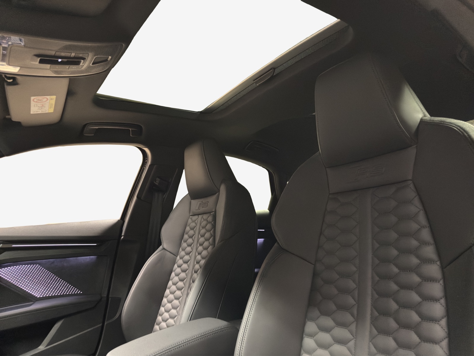 Assist: Alerte de changement de voie avec avertissement de sortie Décor: Application décorative en microfibre Dinamica noir Lackierung: Metallic-Lackierung Lumière: Phares Matrix LED, feux arrière LED et lave-phares Pack: Audi pre Pack assistance Systèmes de protection et davertissement plus Pack: Pack Premium Plus Berline Pack: Pack climatisation plus Pare-brise avec vitrage athermique Roues: Jantes, 10 branches croisées, noir métallisé Rétroviseurs extérieurs couleur carrosserie Sitze: 4-Wege-Lendenwirbelstütze für die Vordersitze Sièges: Sièges AV à réglage électrique Suspension: Système de freinage RS avec étriers de frein, rouge Tissu: Cuir Nappa fin avec surpiqûres alvéolées et gaufrage RS Toit panoramique en verre Vitrage de contrôle solaire, obscurci