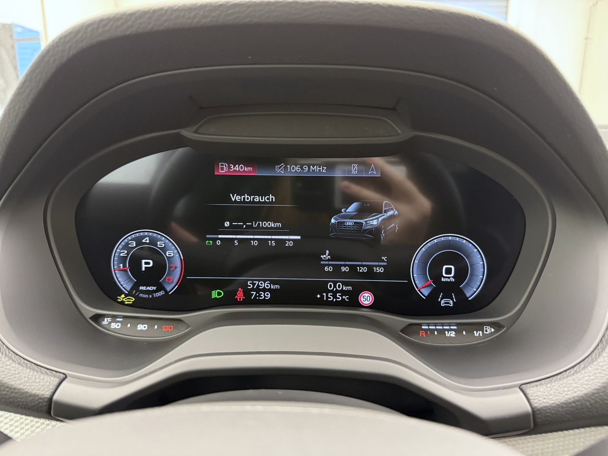 Assist: Adaptiver Fahrassistent Assist: Adaptiver Geschwindigkeitsassistent Assist: Geschwindigkeitsregelanlage Assist: Kamerabasierte Verkehrszeichenerkennung Audi virtual cockpit plus Einstiegsleisten mit Aluminiumeinlegern vorn Entfall Modellbezeichnung und Leistungs- / Technologie-Schriftzug Garantie: Audi Garantie: 5 Jahre oder 100'000 km (ab 1. Inv.) Gepäckraumklappe elektrisch öffnend und schliessend Klima: Komfortklimaautomatik Komfortschlüssel, mit Safelock Lackierung: Metallic-Lackierung Licht: Matrix LED-Scheinwerfer und LED-Heckleuchten Media: LTE-Unterstützung für Audi phone box Media: MMI Navigationssystem Plus mit MMI touch Paket: Ablage und Gepäckraumpaket mit USB Ladeschnittstelle im Fond & 12V Steckdose im Kofferraum Paket: Assistenzpaket Fahren 2 Paket: Diebstahlsicherungspaket Paket: Excellence Paket Q2 Paket: Optikpaket schwarz Privacy Verglasung (Scheiben abgedunkelt) Räder: Leichtmetallräder, 5-Doppelspeichen-Edge titangrau matt, glanzgedreht Sitze: Rücksitzlehne, geteilt umklappbar Sitze: Vordersitze heizbar