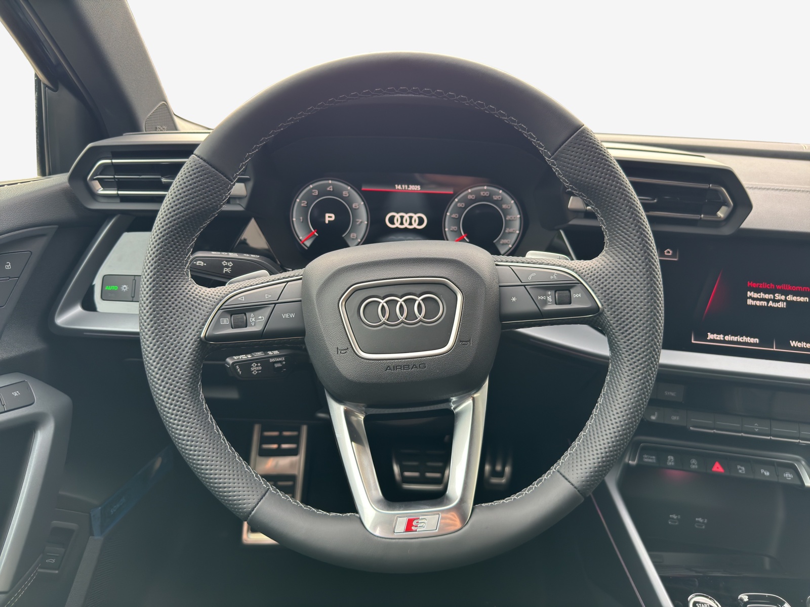 Assist: Adaptiver Fahrassistent mit Notfallassistent Assist: Caméras environnement Assist: Spurwechselwarnung mit Ausstiegswarnung und Querverkehrassistent hinten Boîtiers de rétroviseur extérieur en noir Décor: Application décorative en aluminium Spektrum foncé Pack: Intérieur S avec sièges sport, combinaison tissu/similicuir noir Pack: Pack Assistance conduite et stationnement pro et pack Assistance systèmes de protection Pack: Pack Assistance systèmes de protection et davertissement plus Pack: Pack Premium Plus A3 Sportback / allstreet Pack: Pack climatisation plus Pack: Pack optique noir plus Pack: Phares Matrix LED, feux arrière LED et lave-phares Pack:Pack Éclairage dambiance plus Peinture: Bleu Ascari Métallisé Préparation pour dispositif d´attelage Roues: jantes en alliage léger Audi Sport 19 pouces à 5 doubles branches, noir anthracite, brillant Sièges: dossier de siège arrière, partiellement rabattable Vitrage de contrôle solaire, obscurci