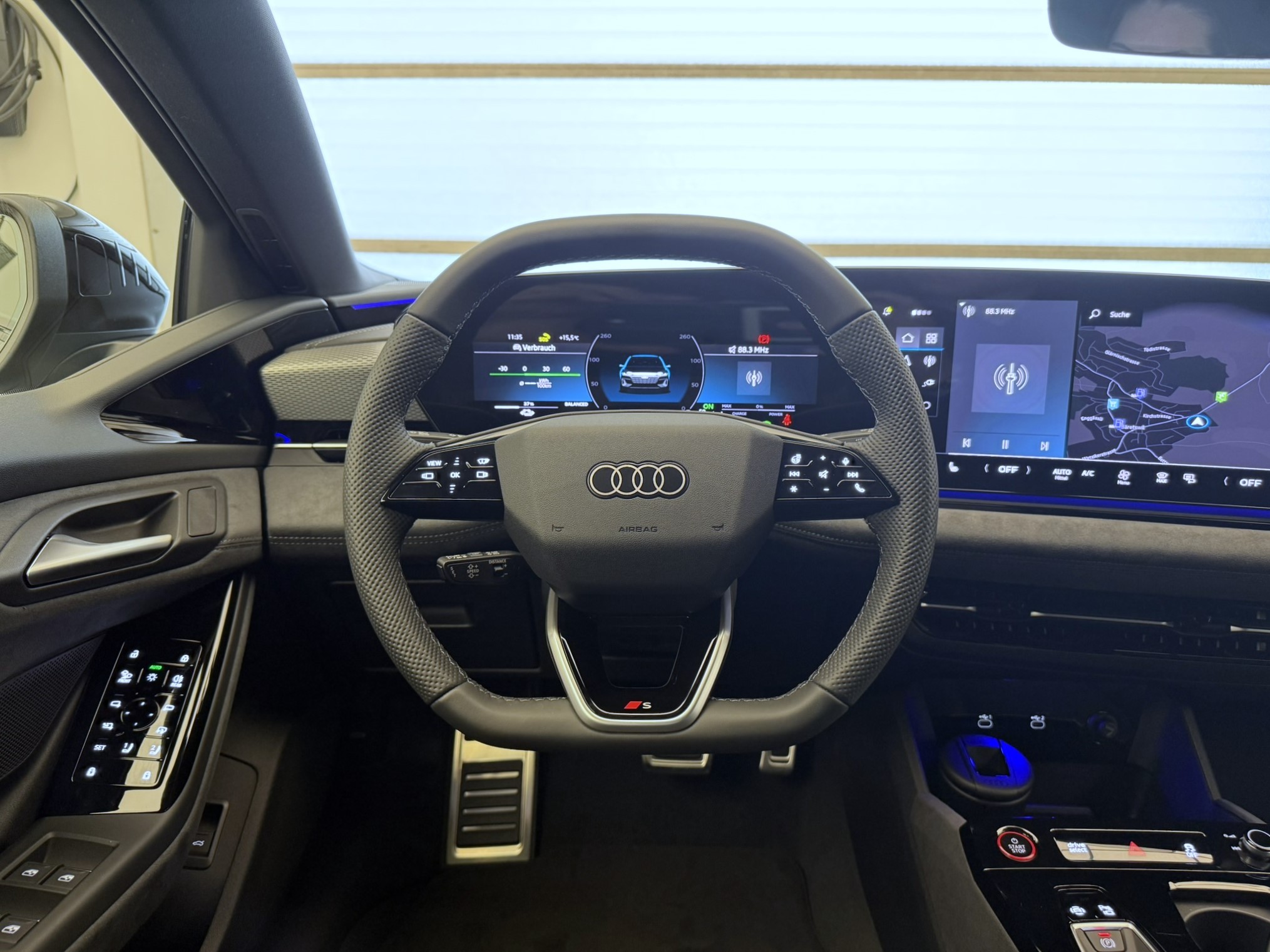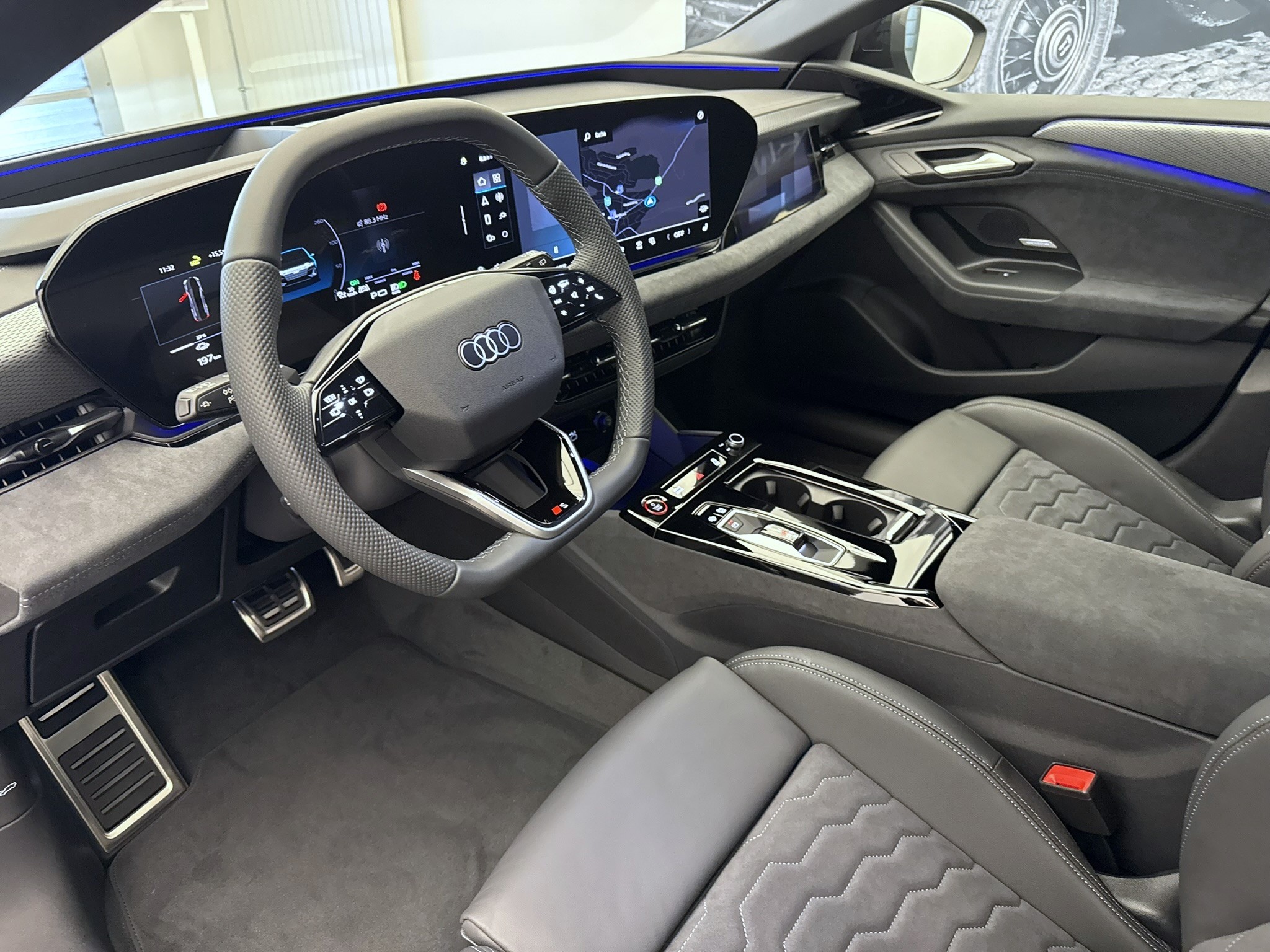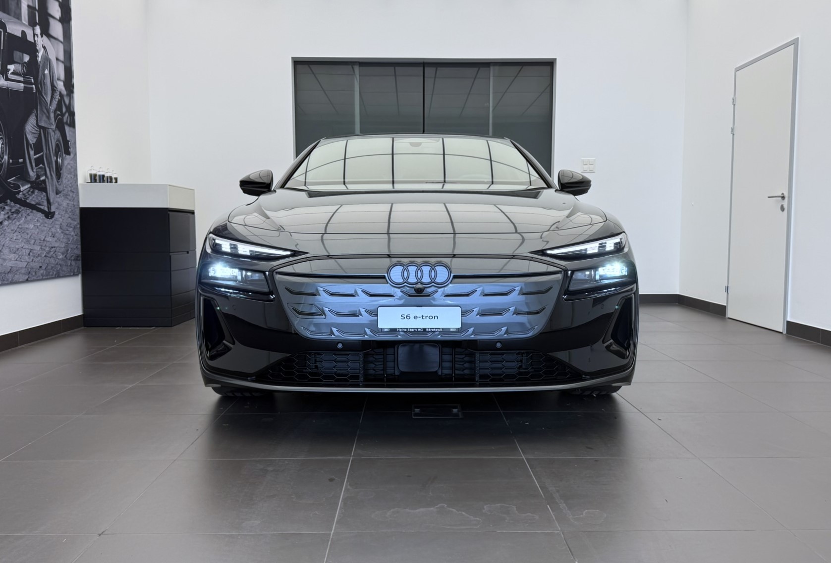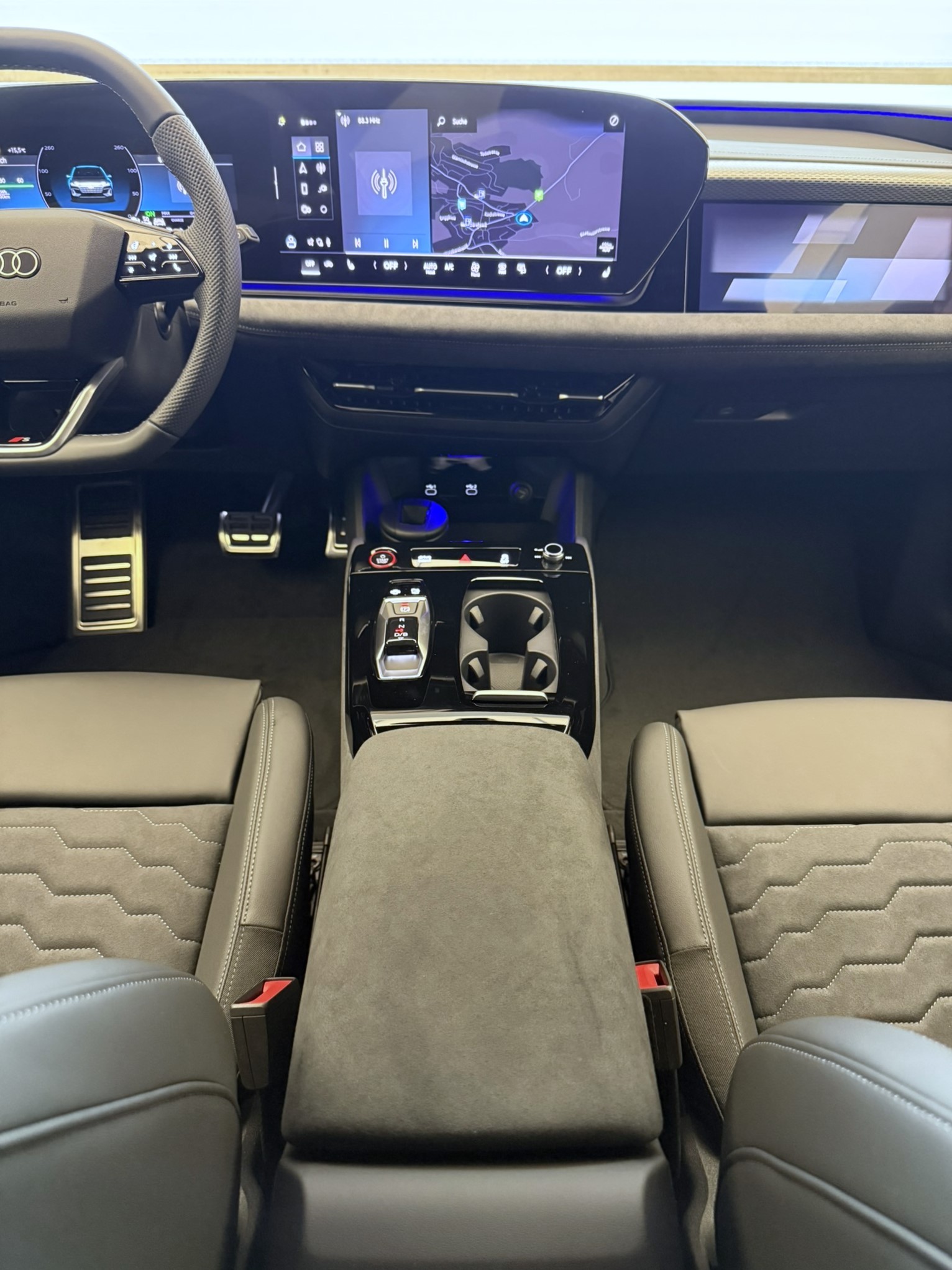 Airbag: Airbag Beifahrer deaktivierbar Airbag: Airbag Fahrer und Beifahrer Airbag: Seitenairbag vorn, mit Kopfairbag und Interaktionsairbag vorn Akustikverglasung Türscheiben vorn Assist: Adaptiver Geschwindigkeitsassistent Assist: Aufmerksamkeits- und Müdigkeitserkennung Assist: Ausweichassistent und Abbiegeassistent Assist: Einparkhilfe plus mit Distanzanzeige Assist: Kamerabasierte Verkehrszeichenerkennung Assist: Kreuzungsassistent Assist: Notbremsassistent vorn Assist: Parkassistent plus Assist: Querverkehrassistent vorn Assist: Spurverlassenswarnung inkl. Notfallassistent Assist: Traktionskontrolle Assist: Verkehrszeichenbasierter Geschwindigkeitsbegrenzer Audi connect Notruf & Service mit Audi connect Remote & Control Audi virtual cockpit plus Aussenspiegel elektrisch einstell-, beheiz- und anklappbar, beidseitig automatisch abblendend Aussenspiegelgehäuse Chromoptik matt silber Dachhimmel in Stoff schwarz Dekor: Akzentflächen und Bedientasten schwarz glänzend Dekor: Dekoreinlagen Aluminium matt gebürstet mit Linearprägung anthrazit Dekor: Dekoreinlagen Audi exclusive Dekor: Instrumententafel-Oberseite schwarz mit Kontrastnaht Dekor: Interieurapplikationen Vanadiumoptik Dekor: Interieurelemente oben und unten Kunstleder plus Einstiegsleisten mit Aluminiumeinlagen, vorne, beleuchtet, mit S-Schriftzug Elektrische Fensterheber vorne Elektronisches Stabilitäts-Programm (ESP) Entfall Modellbezeichnung Fahrwerk: Adaptives S-Luftfederfahrwerk Fensterzierleisten Aluminiumoptik Fussmatten vorne und hinten Garantie: Audi Garantie 2 Jahre ohne Kilometerbegrenzung (ab 1. Inv.) Garantie: Audi Swiss Service Package + (ASSP+) Gepäckraumklappe elektrisch öffnend und schliessend Getriebe: Direktantrieb, kein Getriebe Industriestecker CEE 16A, 400V, lang und gerade für das e-tron Ladesystem Industriestecker CEE 32A, 400V, lang und gerade Innenspiegel automatisch abblendbar Interieur mit Sportsitzen, Leder/Kunstleder-Kombination mit S-Prägung Klima: 3-Zonen-Klimatisierungsautomatik Klima: Automatische Umluftregelung Klima: Elektrische Luftzusatzheizung Komfortschlüssel mit Safelock Komfortschlüssel ohne Safelock Lackierung: Uni-Lackierung Ladekabel Mode 3 für öffentliches Laden bis 22 kW Lenkrad: Lenkradapplikation Chromoptik, S-Emblem, Lenkradgriffe perforiertes Leder und Kontrastnaht Lenkrad: Lenkradeinstellung manuell Lenkrad: Sportlederlenkrad, 3-Speichen, oben und unten abgeflacht mit Multifunktion und Schaltwippen Licht: LED-Scheinwerfer plus Licht: Projektionsleuchte in den Aussenspiegeln Licht: Tagesfahrlicht mit Assistenzfahrlicht u.Coming- u. Leaving-home Funktion automatisch Media: Audi Application Store und Smartphone-Interface Media: Audi connect Navigation & Infotainment Media: Digitaler Radioempfang Media: FOD Funktionen online verfügbar Media: LTE-Unterstützung für Audi phone box Media: MMI Beifahrerdisplay Media: MMI experience plus Media: USB-Schnittstellen mit erhöhter Ladeleistung Modellkennzeichnung am Heck On-board-Ladegerät bis 11 kW (AC) Paket: Ambiente Lichtpaket Paket: Assistenzpaket Fahren und Parken Paket: Interieur S mit Sportsitzen, Leder/Kunstleder-Kombination schwarz/hellgrau Pedalerie und Fussstütze in Edelstahl Räder: Reifendruck-Kontrollanzeige Räder: Reifenreparatur-Set (Tire Fit) Räder: Räder Audi Sport, 5-Speichen-Tripod, schwarz metallic, glanzgedreht Scheinwerfer-Reinigungsanlage Schlüssel für Schliesssystem mit Fernbedienung Sitze: 4-Wege-Lendenwirbelstütze für die Vordersitze Sitze: Kindersitzbefestigung i-Size auf der Beifahrerseite und i-Size und Top Tether Sitze: Rücksitzbank ungeteilt, Lehne geteilt umlegbar (dreiteilig) mit Mittelarmlehne Sitze: Vordersitze elektrisch verstellbar Sitze: Vordersitze heizbar Telefonablage mit induktiver Ladefunktion Türen: Türgriffe in Wagenfarbe Verbandmaterial mit 2 Warndreiecken Verbandmaterial,Warndreieck und Warnveste Vorbereitung für Anhängevorrichtung Vorbereitung für intelligente Ladefunktionen Wegfahrsperre elektronisch Wärmeschutz- und Akustikverglasung Frontscheibe Zentralverriegelung mit Fernbedienung