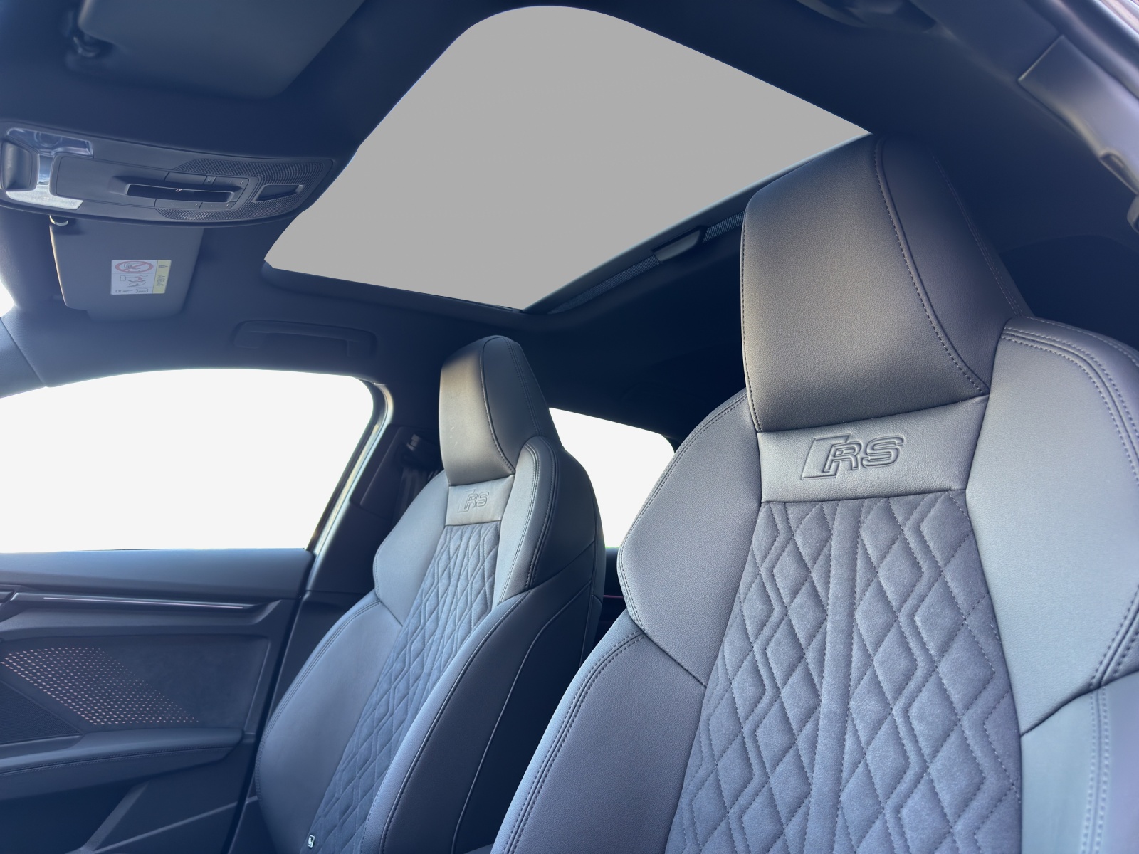 Airbag: Airbag für Fahrer und Beifahrer mit Beifahrer-Airbag-Deaktivierung Airbag: Airbags latéraux à lavant et système dairbags de tête Airbag: Seitenairbags vorn, mit Kopfairbag und Interaktionsairbag vorn Appel d'urgence juridique Assist: Audi pre sense front Assist: Ausweichassistent und Abbiegeassistent Assist: Contrôle de la traction Assist: Détecteur de distraction et de fatigue Assist: Geschwindigkeitsbegrenzungsanlage bis 250 km/h Assist: Geschwindigkeitsregelanlage mit Vorbereitung adaptiver Geschwindigkeitsassistent Assist: Reconnaissance des panneaux de Audi connect Navigation & Infotainment plus Ciel de pavillon en tissu noir Climat: climatisation automatique confort 2 zones Clé à télécommande sans verrouillage de sécurité Cockpit virtuel Audi plus mit zusätzlichem RS-Layout Dekor: Dekoreinlage Carbon Atlas Struktur Dekor: Interieurapplikationen Vanadiumoptik Décor: Application décorative en microfibre Dinamica noir Détecteur de luminosité et de pluie Fahrwerk: RS-Stahlbremse vorn mit Bremssätteln schwarz glänzend Frontscheibe in Wärmeschutzverglasung Garantie: Audi Garantie 2 ans / kilométrage illimité Garantie: Audi Swiss Service Package+ (ASSP+) Getriebe: 7-Stufen Automatisiertes Schaltgetriebe Komfortschlüssel ohne Safelock Licht: Einstiegs LED mit RS-Projektion vorn Lumiere: Feux de circulation diurnes Lumiére: Feu arrière foncé LED avec clignotant dnymique Lunette arrière, vitres des portes arrière et vitres latérales en verre transparent Lève-vitres électriques AV Media: Audi connect Notruf & Service mit Audi connect Remote & Control Media: LTE-Unterstützung für Audi phone box Media: Ports USB avec fonction de charge à larrière Mèdias: Audi Application Store et interface pour smartphone Mèdias: Réception radio numérique Médias: système de navigation MMI Plus avec MMI touch Pack: Pack Assistance conduite et stationnement plus Pack: Pack optique noir plus Paket: Ambiente-Lichtpaket pro Polster: Mikrofaser Dinamica/Kunstleder - Kombination mit Rautensteppung und RS-Prägung Programme électronique de la stabilité (ESP) RS-Exterieurumfänge in schwarz matt Roues: Affichage du contrôle de la pression Roues: Jantes à 5 rayons en Y, noir mat Roues: Set de réparation pour les pneus (Tire Fit) Rétroviseurs extérieurs en couleur de la carrosserie Rétroviseurs extérieurs en noir Sitze: Gurtanlegekontrolle mit Sitzbelegungserkennung hinten Sièges: Sièges AV de sport Sièges: Sièges avant à réglage manuel Sièges: dossier de siège arrière, partiellement rabattable Sièges: soutien lombaire 4 directions pour les sièges avant Suspension: suspension sport RS Système antiblocage (ABS) Trousse de premiers secours et triangle Verrouillage central avec télécommande Volant: Volant sport à 3 branches, aplati en haut et en bas, avec multifonction Wärmeschutz- und Akustikverglasung Frontscheibe mit grauem Colorstreifen