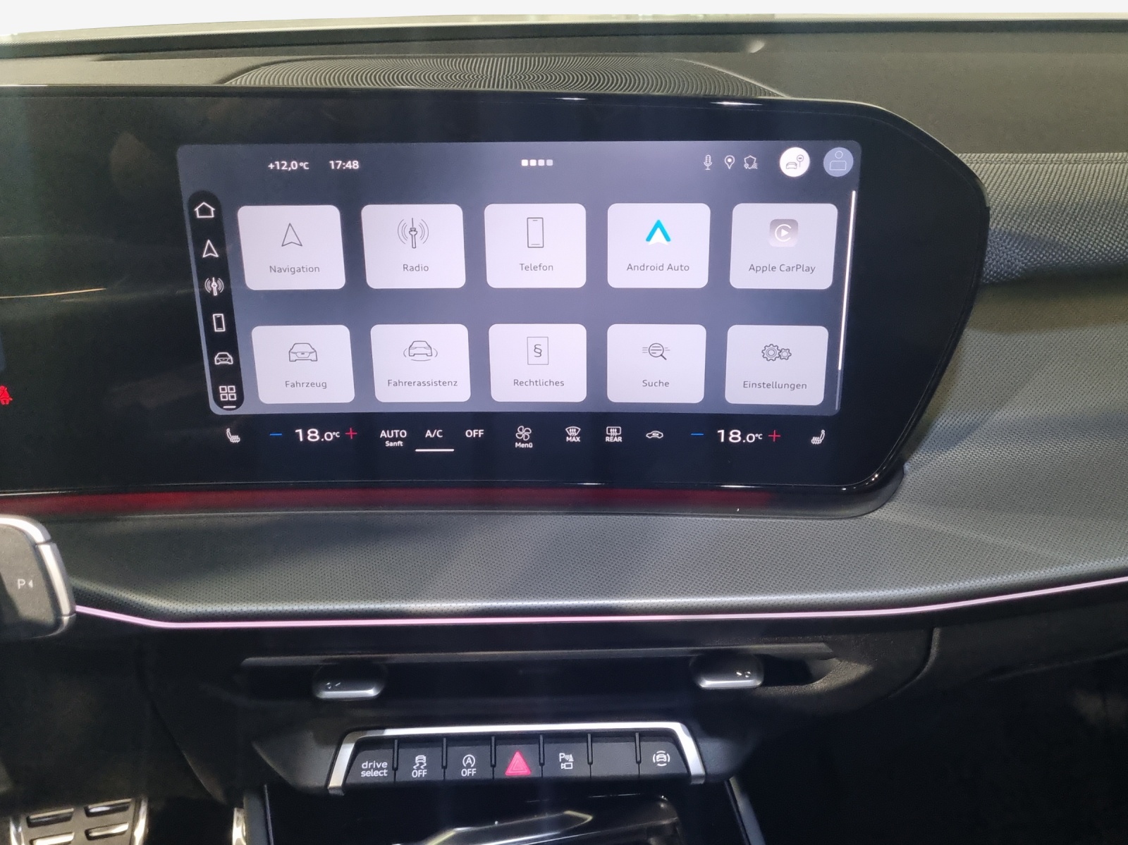 Airbag: Airbag Beifahrer deaktivierbar Airbag: Seitenairbags vorn, mit Kopfairbag und Interaktionsairbag vorn Assist: Aufmerksamskeits-und Müdigkeitserkennung mit Fahrerbeobachtung Assist: Ausweichassistent und Abbiegeassistent Assist: Berganfahrassistent Assist: Einparkhilfe plus mit Distanzanzeige Assist: Geschwindigkeitsregelanlage mit Vorbereitung adaptiver Geschwindigkeitsassistent Assist: Kamerabasierte Verkehrszeichenerkennung Assist: Multifunktionskamera Assist: Notbremsassistent vorn Assist: Querverkehrassistent vorn Assist: Spurverlassenswarnung inkl. Notfallassistent Assist: Traktionskontrolle Assist: Verkehrszeichenbasierter Geschwindigkeitsbegrenzer Audi virtual cockpit plus Aussenspiegel elektrisch einstellbar, separat beheizbar Aussenspiegel in Wagenfarbe Dachhimmel in Stoff in spezifischer Farbe Dachreling Aluminiumoptik Dekor: Dekoreinlage Feinlack vulkangrau Dekor: Interieurapplikationen Aluminiumoptik Dekor: Interieurelemente Stoff Einstiegsleisten mit Aluminiumeinlegern vorn Elektromechanische Parkbremse Elektronisches Stabilitäts-Programm (ESP) Fahrwerk: Komfortfahrwerk Fensterschachtzierleisten in Aluminium Frontscheibe Wärmeschutzverglasung Funkschlüssel, ohne Safelock Fussmatten vorne und hinten Garantie: Audi Garantie 2 Jahre ohne Kilometerbegrenzung (ab 1. Inv.) Gepäckraumklappe elektrisch öffnend und schliessend Getriebe: 7-Stufen Automatisiertes Schaltgetriebe Kindersicherung, elektrisch Klima: 1-Zonen Klimaanlage Lackierung: Kontrastlackierung Lackierung: Uni-Lackierung Ladekantenschutz in Kunststoff Lenkrad: Doppelspeichen-Lenkrad mit Multifunktion und Schaltwippen Lenkrad: Lenkradapplikation Chromoptik Lenkrad: Lenkradbedieneinheit schwarz matt Licht: Tagesfahrlicht mit Assistenzfahrlicht u.Coming- u. Leaving-home Funktion automatisch Licht: Vorbereitung für weitere Lichtfunktionen Media: Audi Application Store und Smartphone-Interface Media: Audi connect Navigation & Infotainment Media: Audi connect Notruf & Service mit Audi connect Remote & Control Media: Digitaler Radioempfang Media: MMI experience plus Media: Telefonablage mit induktiver Ladefunktion Media: USB-Anschlüsse mit Ladefunktion in erster und zweiter Sitzreihe Modellbezeichnung am Heck Paket: Exterieur Advanced Räder: Reifendruck-Kontrollanzeige Räder: Reifenreparatur-Set (Tire Fit) Räder: Räder, 5-Doppelspeichen Scheiben seitlich und hinten in Wärmeschutzverglasung Sitze: Kindersitzbefestigung i-Sitze-konform auf Beifahrerseite und äusseren Fondsitzen, Sitze: Kopfstützen hinten (3 Stück) Sitze: Rücksitzbank plus (2-teilig) Sitze: Sitzbelegungserkennung Sitze: Vordersitze manuell einstellbar Verbandmaterial,Warndreieck und Warnveste Wegfahrsperre elektronisch Zentralverriegelung mit Fernbedienung
