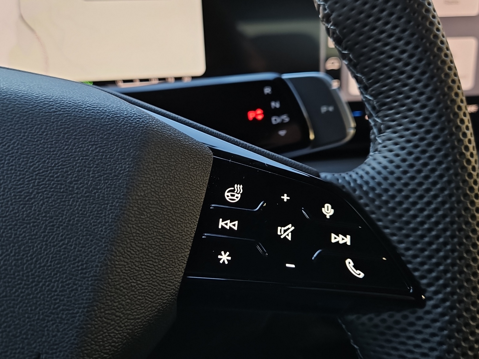 Volant: Application de volant aspect chromé, emblème S, poignées de volant en cuir perforé