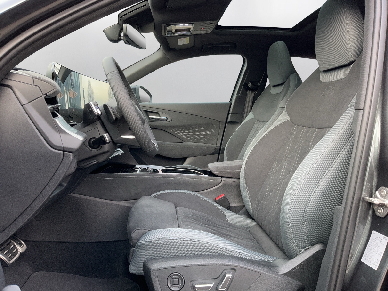 Airbag: Seitenairbag vorn und hinten, mit Kopfairbag und Interaktionsairbag vorn Assist: Bergabfahrassistent Assist: Parkassistent plus mit Einparkhilfe mit Umgebungsanzeige Komfortschlüssel ohne Safelock Lackierung: Perleffekt-Lackierung Daytonagrau Lenkrad: Sportlederlenkrad, 3-Speichen, oben und unten abgeflacht mit Multifunktion, Licht: Digitale OLED-Heckleuchten Licht: Fernlicht-Assistent Media: Telefonablage mit induktiver Ladefunktion und Mobilfunk-Koppelantenne Paket: Assistenzpaket Fahren und Parken pro und Assistenzpaket Schutz- und Warnsysteme plus Paket: Interieur S line mit Sportsitzen Mikrofaser schwarz Paket: Klimatisierungspaket plus Paket: MMI experience pro Paket: Optikpaket schwarz Paket: Paket Premium experience Panorama-Schiebedach (1-teilig) Räder: Räder Audi Sport, 5-Speichen-Tripod, schwarz metallic, glanzgedreht, abgedunkelt Scheinwerfer-Reinigungsanlage Sonnenschutzverglasung, abgedunkelt Vorbereitung für Anhängevorrichtung