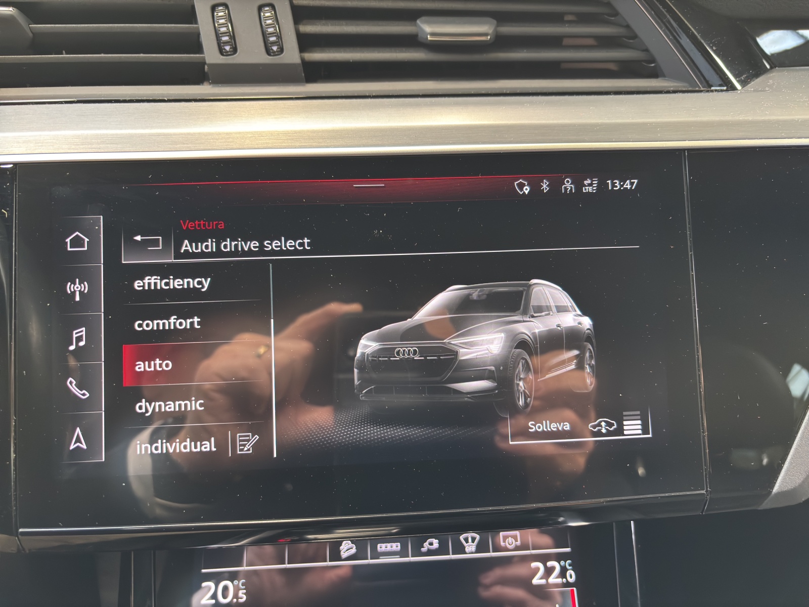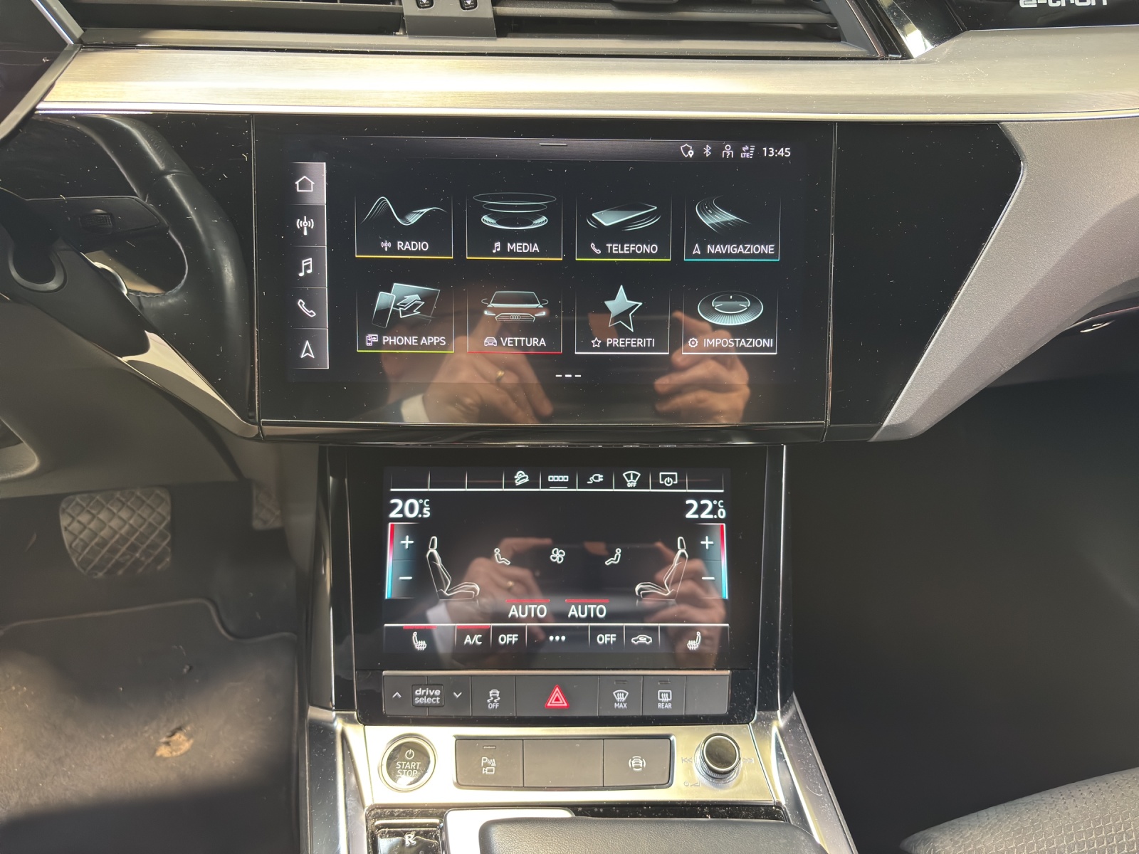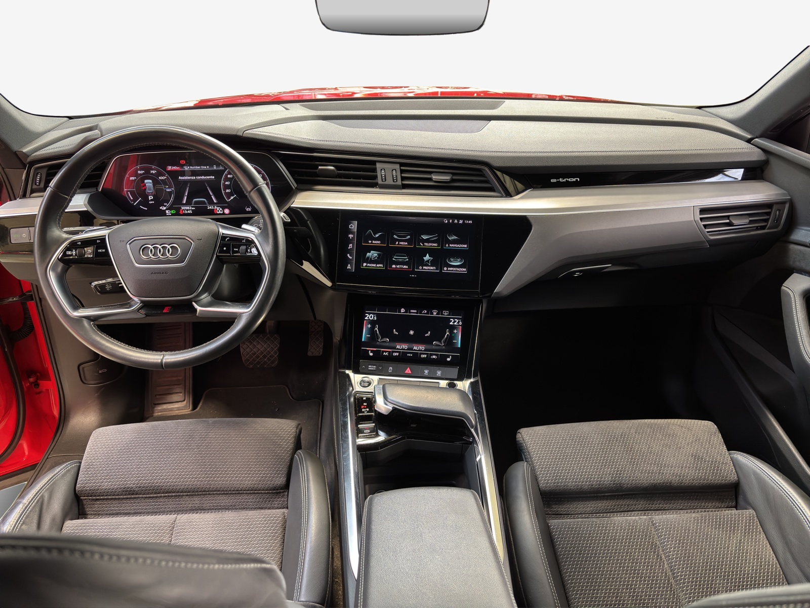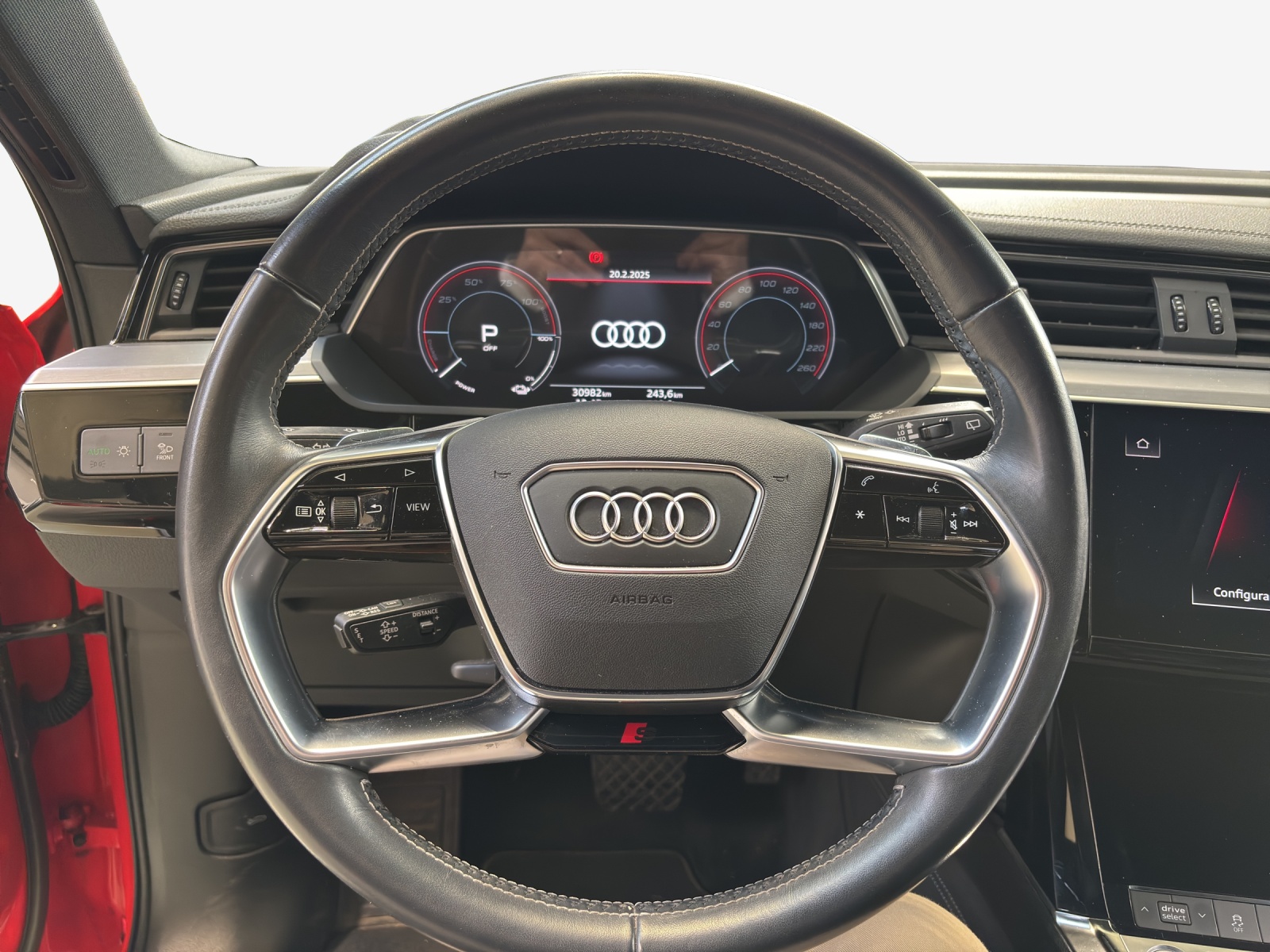 Serienausstattung Airbag: Airbag Beifahrer deaktivierbar Airbag: Seitenairbags vorne Airbag: Window-Kopfairbags Akustisches Fahrzeug-Warnsystem (AVAS) Assist: Audi pre sense front Assist: Geschwindigkeitsregelanlage inklusive Geschwindigkeitsbegrenzer Assist: Spurverlassenswarnung Audi connect Notruf & Service mit Audi connect Remote & Control Aussenspiegel elektrisch einstell- und beheizbar Aussenspiegel in Wagenfarbe Bedientasten schwarz matt Dachhimmel in Stoff mondsilber Dekor: Dekoreinlagen Feinlack graphitgrau Einparkhilfe plus mit Umgebungsanzeige Einstiegsleisten mit Aluminiumeinlegern vorne und hinten, beleuchtet, vorne mit S-Schriftzug Fahrwerk: Adaptive air suspension sport Frontscheibe in Akustikverglasung Fussmatten vorne und hinten Garantie: 2 Jahre ohne Kilometerbegrenzung (ab 1. Inv.) Gepäckraumabdeckung (manuell) Gepäckraumklappe elektrisch öffnend und schliessend Haushaltsstecker Typ J (CH) Industriestecker CEE 16A, 400V, lang und gerade für das e-tron Ladesystem Innenspiegel automatisch abblendbar Kindersitzbefestigung ISOFIX und Top Tether für die Rücksitzbank Kindersitzvorrichtung ISOFIX Beifahrerseite Klima: 2-Zonen-Komfortklimaautomatik Klima: Standklimatisierung Lackierung: Bottom line in Volllackierung (Wagenfarbe) Lackierung: Uni-Lackierung Lenkrad: Doppelspeichen-Lederlenkrad mit Multifunktion und Schaltwippen Licht: LED-Scheinwerfer mit Vorbereitung für weitere Lichtfunktionen Licht: Scheinwerfer-Reinigungsanlage Media: Audi connect Navigation & Infotainment Media: Audi music interface Media: Bluetooth-Schnittstelle Media: Digitaler Radioempfang (DAB) Media: MMI Navigationssystem Plus Modellbezeichnung und Leistungs- / Technologie-Schriftzug On-Board-Ladegerät bis 11 kW (AC) Räder: Leichtmetallräder 20", 5-Arm-Dynamik, graphitgrau, glanzgedreht Räder: Reifendruck-Kontrollanzeige Räder: Reifenreparatur-Set (Tire Fit) S line-Emblem im Kühlerschutzgitter Sitze: Vordersitze höhenverstellbar Sonnenblende Fahrer und Beifahrerseite mit beleuchtetem Spiegel Stossfänger S line in Volllackierung Unterfahrschutz vorne und Diffusor hinten in sportlich markantem Design in Selenitsilber matt Verbandmaterial und Warndreieck e-tron Ladesystem kompakt