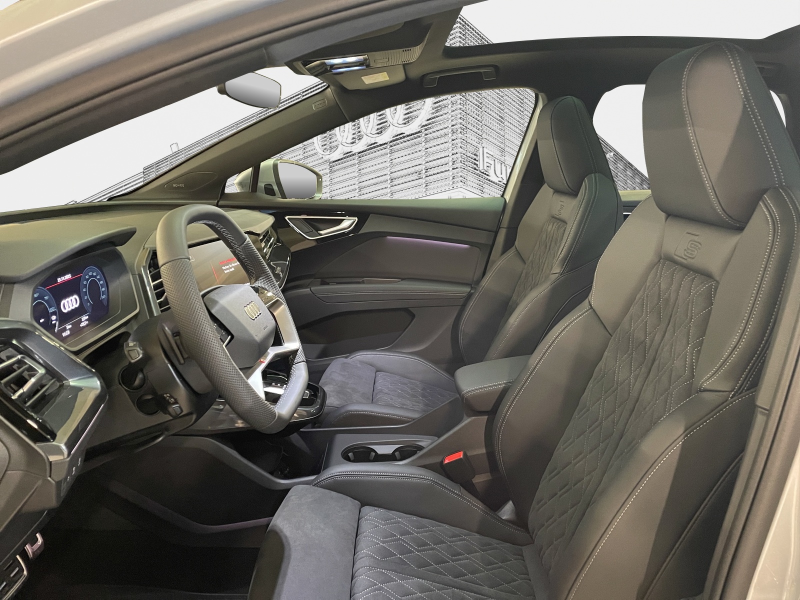 Akustikverglasung für Türscheiben vorn Frontscheibe in Klimakomfort-/Akustikverglasung, drahtlos beheizbar Garantie: Audi Garantie: 5 Jahre oder 100'000 km (ab 1. Inv.) Media: Audi Application Store und Smartphone-Interface Media: SONOS Premium Soundsystem Paket: Advanced Exterieur Paket: Ambiente Lichtpaket plus Paket: Interieur S line mit Sportsitzen in Mikrofaser Dinamica / Kunstleder-Kombination schwarz Paket: Optikpaket schwarz plus Privacy-Verglasung (Scheiben abgedunkelt) Räder: Leichtmetallräder, 5-W-Speichen-Aero, graphitgrau, glanzgedreht