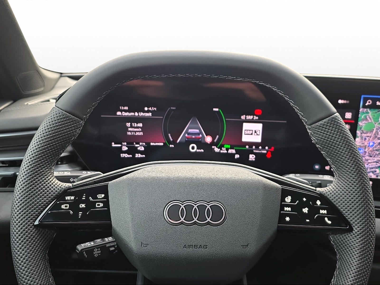 Airbag: Airbag Fahrer und Beifahrer Assist: Adaptiver Geschwindigkeitsassistent Assist: Aufmerksamkeits- und Müdigkeitserkennung Assist: Ausweichassistent und Abbiegeassistent Assist: Einparkhilfe plus mit Distanzanzeige Assist: Kamerabasierte Verkehrszeichenerkennung Assist: Kreuzungsassistent Assist: Notbremsassistent vorn Assist: Parkassistent plus Assist: Querverkehrassistent vorn Assist: Spurverlassenswarnung Assist: Traktionskontrolle Assist: Verkehrszeichenbasierter Geschwindigkeitsbegrenzer Audi virtual cockpit plus Aussenspiegel elektrisch einstell-, beheiz- und anklappbar, beidseitig automatisch abblendend Dachreling in Aluminiumoptik Dekor: Dekoreinlagen Aluminium matt gebürstet mit Linearprägung anthrazit Elektrische Fensterheber vorne Elektronisches Stabilitäts-Programm (ESP) Fahrwerk: Bremssättel rot lackiert Fahrwerk: S-Sportfahrwerk Fensterzierleisten Aluminiumoptik Fussmatten vorne und hinten Garantie: Audi Garantie 2 Jahre ohne Kilometerbegrenzung (ab 1. Inv.) Getriebe: 7-Stufen Automatisiertes Schaltgetriebe Klima: 4-Zonen-Komfortklimaautomatik Klima: Automatische Umluftregelung Klima: Elektrische Luftzusatzheizung Klima: Standklimatisierung Komfort Komfortschlüssel ohne Safelock Lackierung: Uni-Lackierung Ladedose AC Typ 2 Mode 2-3 Ladekabel Mode 3 für öffentliches Laden bis 22 kW Lenkrad: Lenkradeinstellung manuell Licht: Einstiegs-LED mit Logoprojektion vorn Licht: Matrix LED-Scheinwerfer Licht: Projektionsleuchte in den Aussenspiegeln Media: Audi Application Store und Smartphone-Interface Media: Audi connect Navigation & Infotainment Media: Audi connect Notruf & Service mit Audi connect Remote & Control Media: Digitaler Radioempfang Media: FOD Funktionen online verfügbar Media: Telefonablage mit induktiver Ladefunktion Media: USB-Anschlüsse mit Ladefunktion in erster und zweiter Sitzreihe Modellkennzeichnung am Heck Paket: Ambiente Lichtpaket plus Paket: Assistenzpaket Fahren und Parken Paket: Interieur S line mit Sportsitzen Stoff schwarz Polster: Leder-Ausstattung Räder: Reifendruckkontrollsystem Räder: Reifenreparatur-Set (Tire Fit) Scheiben seitlich und hinten in Wärmeschutzverglasung Sitze: Kindersitzbefestigung i-Size auf der Beifahrerseite und i-Size und Top Tether Sitze: Vordersitze manuell einstellbar Telefonablage mit induktiver Ladefunktion Türen: Gepäckraumklappe elektrisch öffnend und schliessend Türen: Türgriffe in Wagenfarbe Verbandmaterial,Warndreieck und Warnveste Wärmeschutz- und Akustikverglasung Frontscheibe Zentralverriegelung mit Fernbedienung