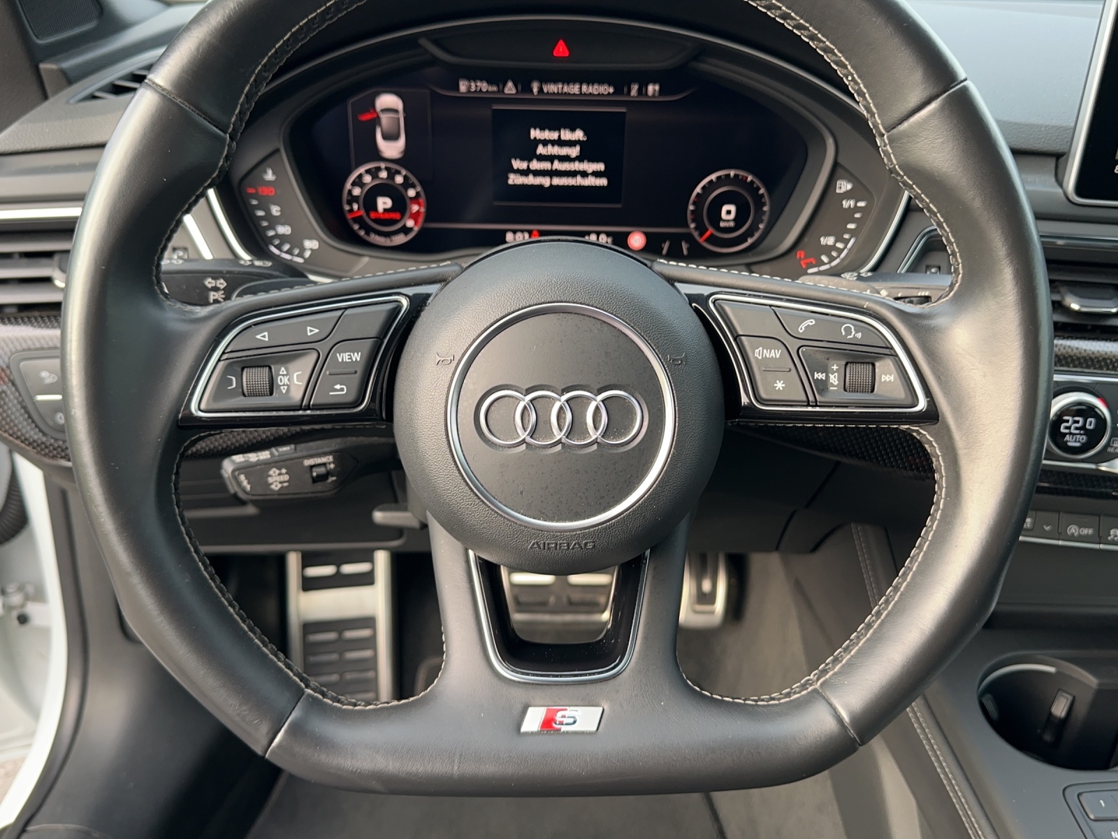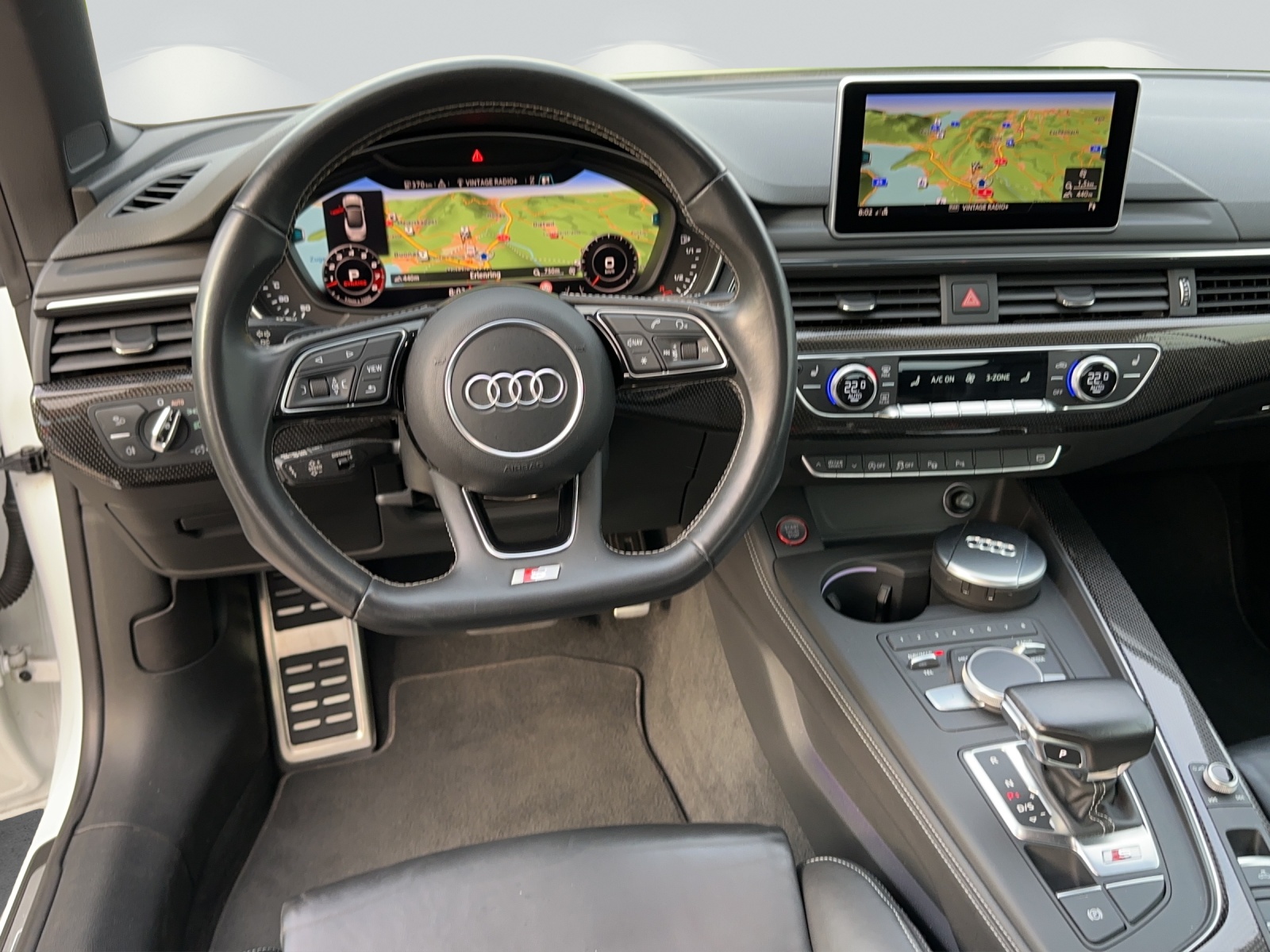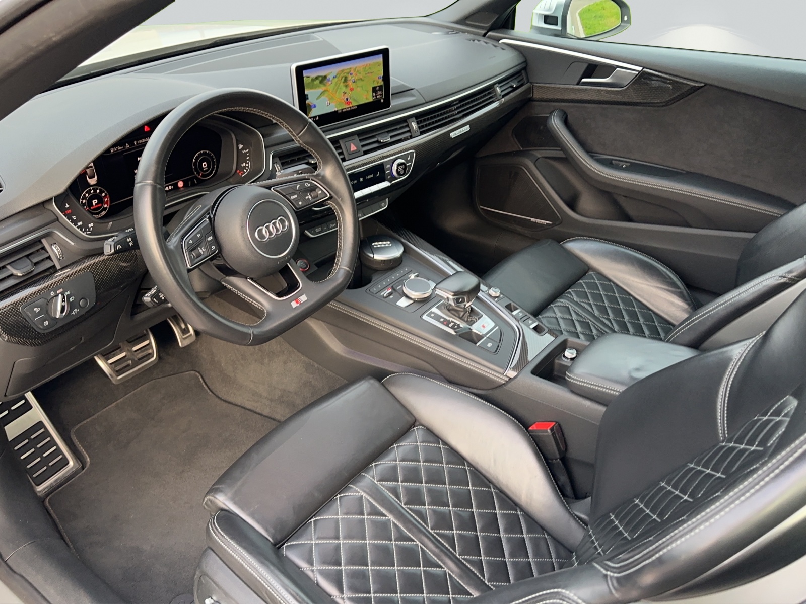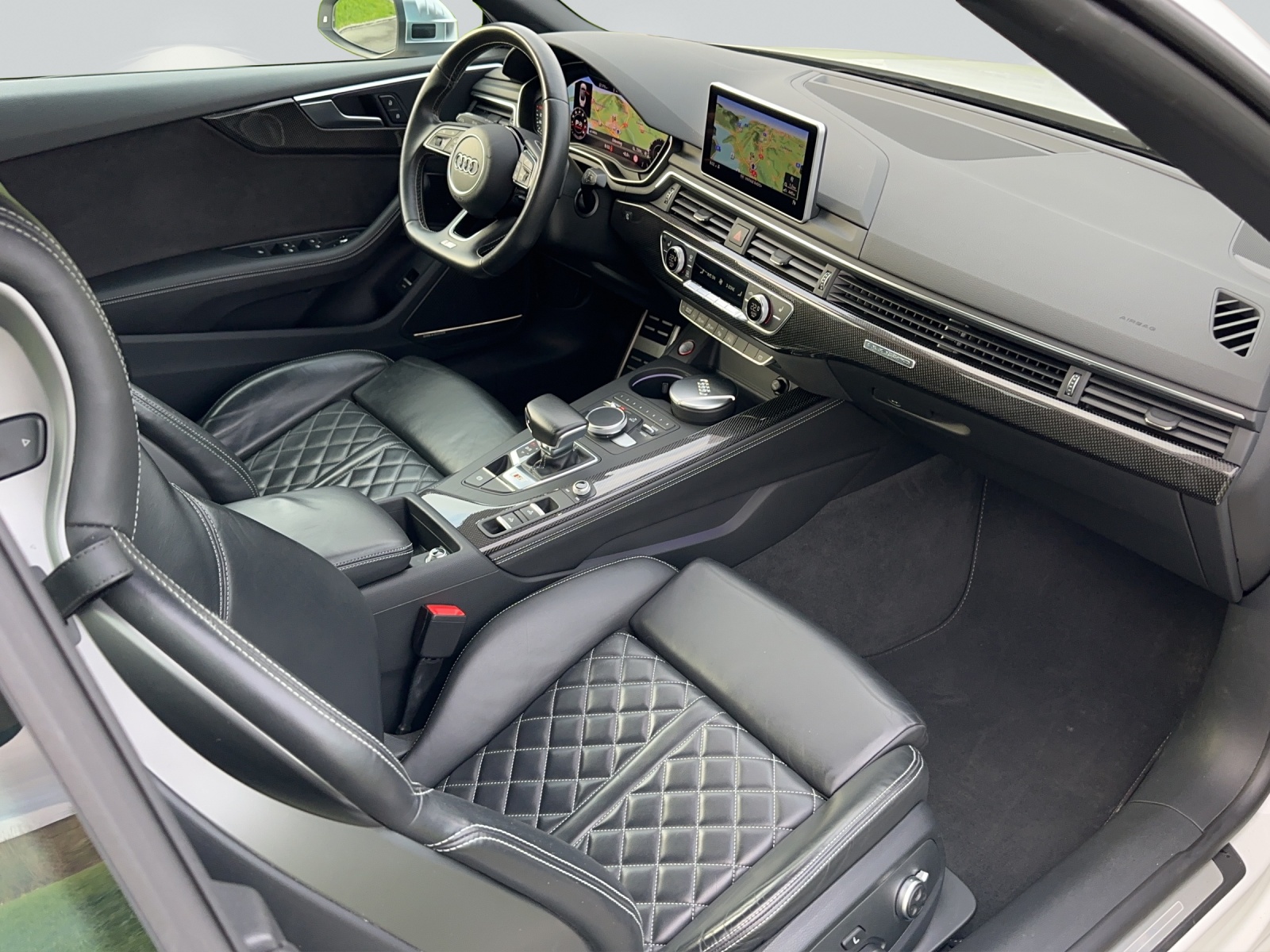 Alu-Räder 8.5J x 19 im 5-Speichen-Design Assist: Audi active lane assist Assistenzpaket Stadt+Parken Audi Smartphone Interface Audi virtual cockpit 12,3'' Aussenspiegel rechts und links beheizbar und elektrisch anklappbar Dekor: Interieurelemente in Kunstleder Lackierung: Perleffekt-Lackierung MMI Navigationssystem Plus Media: Bang & Olufsen Soundsystem Multifunktions-Sportlenkrad in Leder, Sitze: S Sportsitze vorne