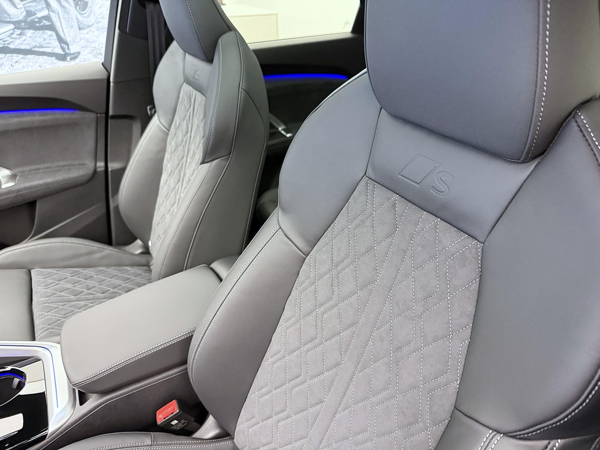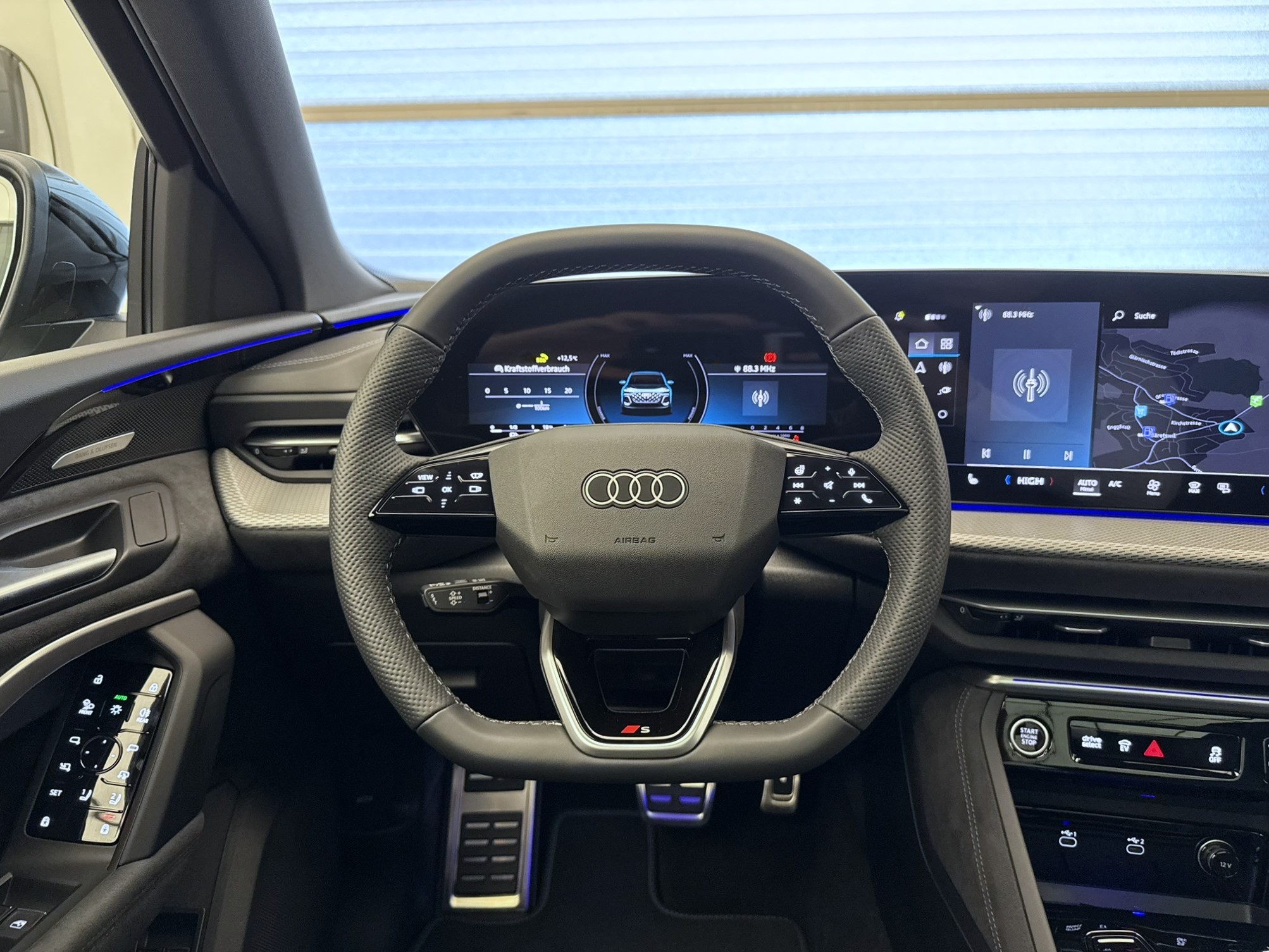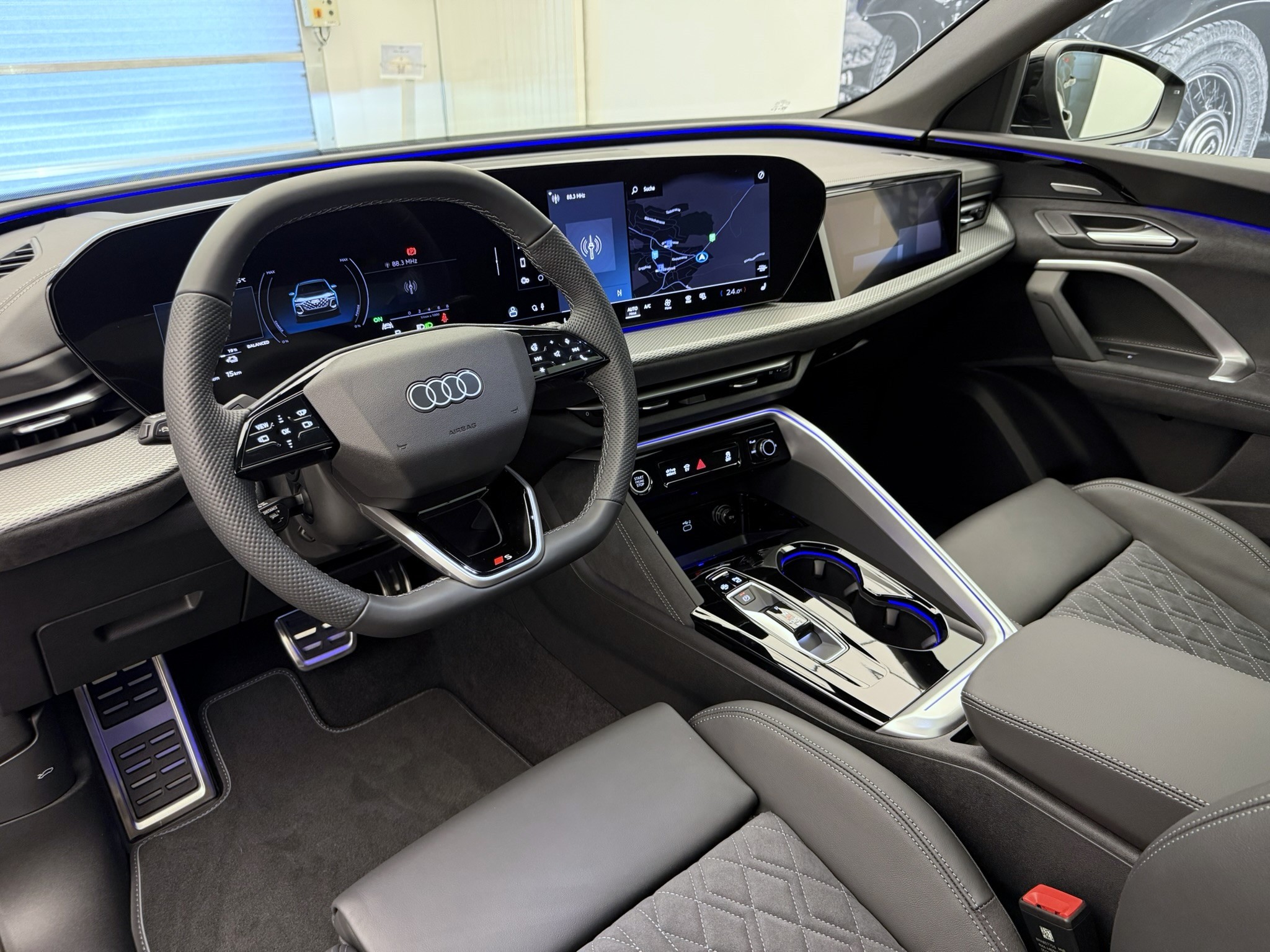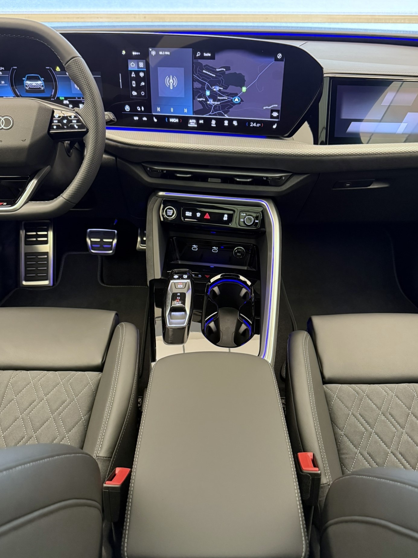 Airbag: Airbag für Fahrer und Beifahrer mit Beifahrer-Airbag-Deaktivierung Airbag: Seitenairbags vorn, mit Kopfairbag und Interaktionsairbag vorn Akustisches Fahrzeug-Warnsystem Assist: Ablenkungs- und Müdigkeitserkennung Assist: Adaptiver Geschwindigkeitsassistent Assist: Ausweichassistent und Abbiegeassistent Assist: Einparkhilfe plus mit Distanzanzeige Assist: Kamerabasierte Verkehrszeichenerkennung Assist: Notbremsassistent vorn Assist: Parkassistent plus Assist: Querverkehrassistent vorn Assist: Spurverlassenswarnung Assist: Traktionskontrolle Assist: Verkehrszeichenbasierter Geschwindigkeitsbegrenzer Audi connect Notruf & Service mit Audi connect Remote & Control Audi virtual cockpit plus Aussenspiegel elektrisch einstell-, beheiz- und anklappbar, beidseitig automatisch abblendend Aussenspiegel in Wagenfarbe Dekor: Aluminiumoptik im Interieur Dekor: Dekoreinlagen Aluminium matt gebürstet mit Linearprägung anthrazit Elektrische Fensterheber vorne Elektronisches Stabilitäts-Programm (ESP) Entfall Modellbezeichnung Fahrwerk: Bremssättel, farbig Fahrwerk: S-Sportfahrwerk Fensterzierleisten Aluminiumoptik Frontscheibe in Wärmeschutz- und Akustikverglasung Funkschlüssel, mit Safelock Funkschlüssel, ohne Safelock Fussmatten vorne und hinten Garantie: Audi Garantie 2 Jahre ohne Kilometerbegrenzung (ab 1. Inv.) Garantie: Audi Swiss Service Package + (ASSP+) Getriebe: 7-Gang- Automat S tronic Innenspiegel automatisch abblendbar Klima: 3-Zonen-Klimatisierungsautomatik Klima: Standklimatisierung Lackierung: Kontrastlackierung in Tamboragrau Metallic Lackierung: Uni-Lackierung Ladekabel Mode 3 für öffentliches Laden bis 22 kW Ladekabel mit Industriestecker CEE 16A/400V/6 h lang + gerade Lenkrad: Lenkradeinstellung manuell Licht: Fernlicht-Assistent Licht: LED-Heckleuchten pro Licht: LED-Scheinwerfer plus Licht: Tagesfahrlicht mit Assistenzfahrlicht u.Coming- u. Leaving-home Funktion automatisch Media: Audi Application Store und Smartphone-Interface Media: Audi connect Navigation & Infotainment Media: Audi phone box light Media: Digitaler Radioempfang Media: USB-Anschlüsse mit Ladefunktion in erster und zweiter Sitzreihe Modellbezeichnung am Heck Paket: Ablagen- und Gepäckraumpaket Paket: Ambiente Lichtpaket plus Paket: Interieur S mit Sportsitzen in Leder/Kunstleder-Kombination schwarz Paket: Klimatisierungspaket Räder: Reifen 255/45 R20 105W XL Rollwiderstandsoptimiert Räder: Reifendruck-Kontrollanzeige Räder: Reifenreparatur-Set (Tire Fit) Räder: Räder, 10-Arm-Aero, graphitgrau, glanzgedreht Räder: Räder, 5-Doppelspeichen, graphitgrau, glanzgedreht Scheiben seitlich und hinten in Wärmeschutzverglasung Scheinwerfer-Reinigungsanlage Servolenkung Elektromechanisch Sitze: Kindersitzbefestigung i-Size auf der Beifahrerseite und i-Size und Top Tether Sitze: Vordersitze elektrisch verstellbar Sitze: Vordersitze heizbar Türen: Komfortöffnung Gepäckraumklappe Verbandmaterial,Warndreieck und Warnveste Wegfahrsperre elektronisch Zentralverriegelung mit Fernbedienung
