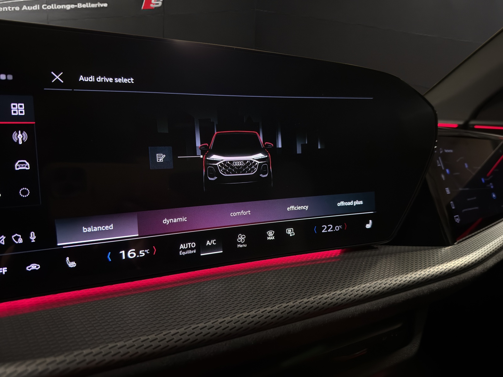 Assist: Assistant de conduite adaptatif plus Boîtier de rétroviseur extérieur en noir Coutures de couleur rouge Audi Sport Dekor: Dekoreinlagen Aluminium matt gebürstet mit Linearprägung anthrazit Dekor: Interieurapplikationen Vanadiumoptik Garantie: Audi Garantie: 5 Jahre oder 100'000 km (ab 1. Inv.) Komfortschlüssel ohne Safelock Lumière: Éclairage confort montée et descente Pack: Intérieur avec sièges sport, tissu noir Pack: Pack Premium business Pack: edition one avec accents noirs Paket: Ambiente Lichtpaket plus Rampes de pavillon en noir Roues: Jantes Audi Sport, design multibranches en S, noir métallisé, finition brillante Sitze: Fahrersitz und Aussenspiegel mit Memoryfunktion Sitze: Vordersitze elektrisch verstellbar Suspension: Étriers de frein, colorés Vitrage de contrôle solaire, obscurci
