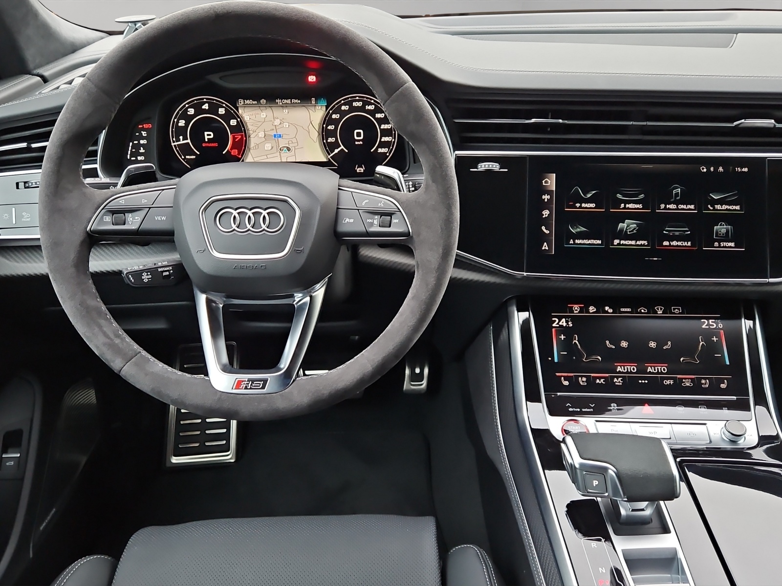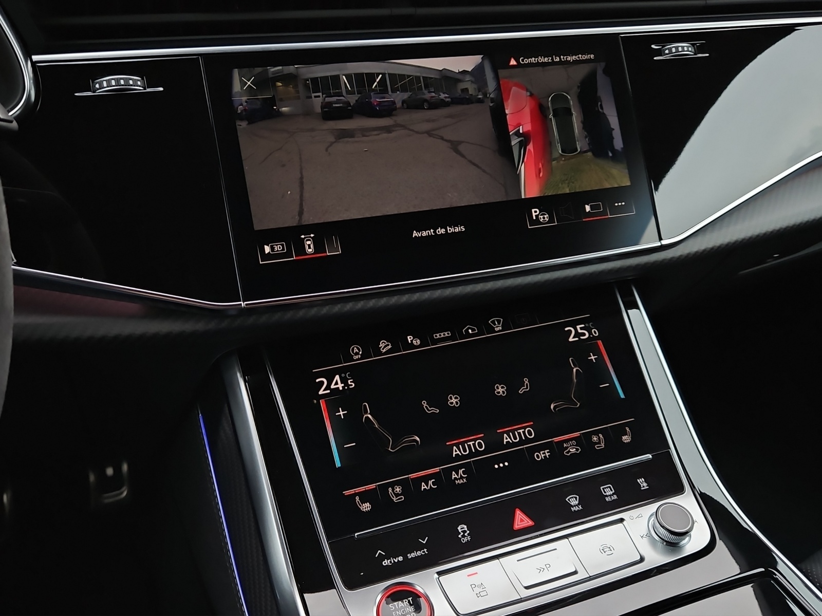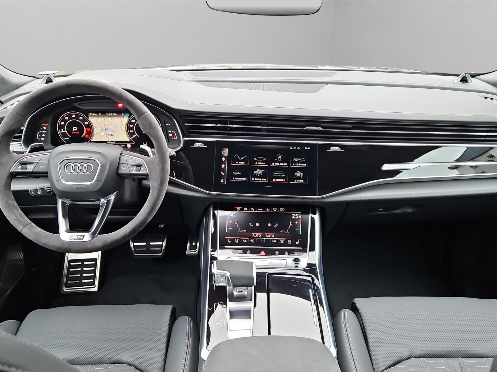 [A03] Sans lecteur de CD- & DVD dans la boîte à gants [64J] Roues: Jantes à 5 branches en Y, noir contrasté mat - 10,5 J x 23, pneus 295/35 R23 [D17] Bénéfice paquet d'assistance plus [6FI] Boîtier de rétroviseurs extérieurs en carbone mat [3GN] Système de glissières avec set de fixation [0VB] Papiers français [PXB] Phares Matrix LED HD avec lumière laser Audi, feu arr. en technique LED et nettoyeur de phares [1D9] Assist: Attelage pour remorque avec assistant de manoeuvre de remorque [UB] noir - gris rocher [PG3] Clé confort, protection de seuil de chargement en acier inoxydable, couvre-coffre électrique, système d'alarme, contrôle gestuel [A41] Garantie: Audi Swiss Service Package+ (ASSP+) - Réparation 3 ans ou 100000 km, entretien 10 ans ou 100000 km - Le premier réalisé s'applique [Q0] peinture individuelle/Nardograu Uni Véhicule Suisse / Services gratuits 10 ans ou 100'000 kms / Garantie usine 5 ans ou 100'000 kms / Leasing et reprise toutes marques possible / Remise flotte applicable