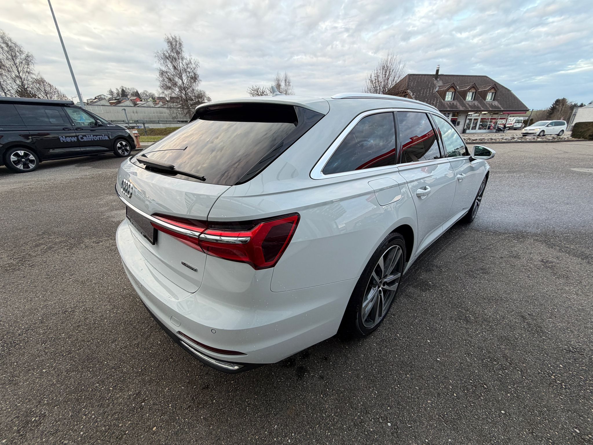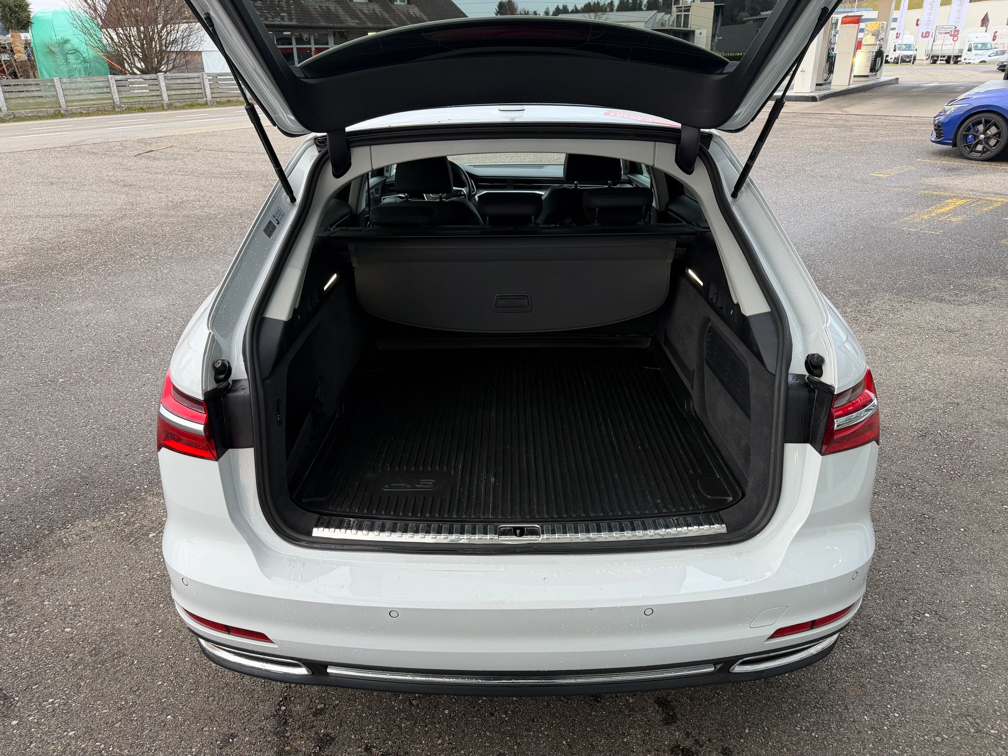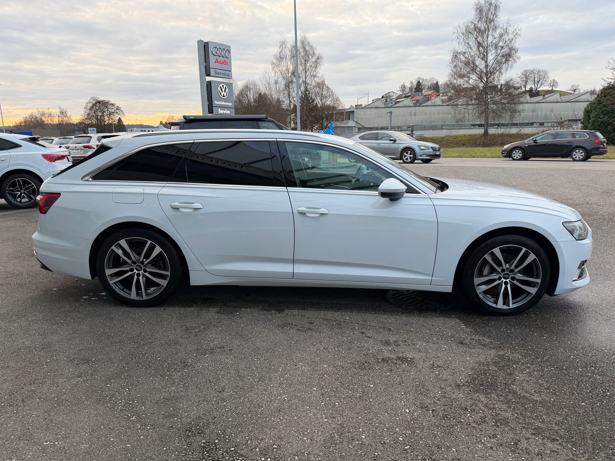 Aussenspiegel elektrisch einstell-, beheiz- und anklappbar, beidseitig automatisch abblendend, Entfall Modellbezeichnung und Leistungs- / Technologie-Schriftzug Garantie: Audi Swiss Service Package + (ASSP+) Komfortschlüssel inklusive sensorgesteuerter Gepäckraumentriegelung Licht: Fernlicht-Assistent Media: Audi Smartphone Interface Paket: Assistenzpaket Stadt Paket: Assistenzpaket Tour Privacy-Verglasung (Scheiben abgedunkelt) Räder: Leichtmetallräder im 5-Doppelspeichen-Design, kontrastgrau, teilpoliert Sitze: Vordersitze elektrisch einstellbar mit Memory-Funktion für Aussenspiegel und Fahrersitz Verbandmaterial,Warndreieck und Warnveste Vorbereitung für Anhängevorrichtung