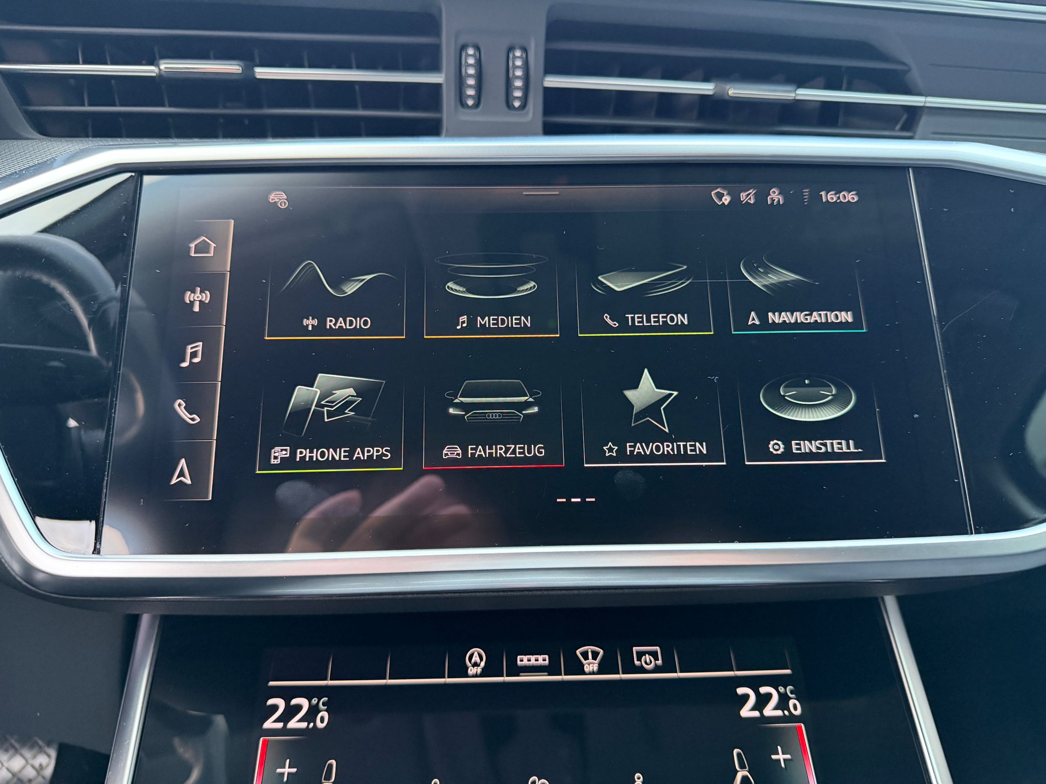 3-Punkt-Sicherheitsgurte auf allen Plätzen Airbag: Airbag Beifahrer deaktivierbar Airbag: Airbag Fahrer und Beifahrer Airbag: Seitenairbags hinten mit Window-Kopfairbags Airbag: Seitenairbags vorn und Kopfairbagsystem Assist: Audi pre sense basic Assist: Einparkhilfe plus Assist: Geschwindigkeitsregelanlage mit Geschwindigkeitsbegrenzer Assist: Spurverlassenswarnung Aussenspiegel elektrisch einstell-, beheiz- und anklappbar Aussenspiegel in Wagenfarbe Dachhimmel in Stoff mondsilber Dekor: Bedientasten schwarz matt Dekor: Dekoreinlagen Aluminium Fragment Einstiegsleisten mit Aluminiumeinlegern vorne und hinten Elektronisches Stabilitäts-Programm (ESP) Fahrer-Informationssystem mit Farbdisplay Frontscheibe mit Wärmeschutzverglasung Garantie: 2 Jahre ohne Kilometerbegrenzung (ab 1. Inv.) Gepäckraumklappe elektrisch öffnend und schliessend Getriebe: 7-Gang- Automat S tronic Innenspiegel automatisch abblendend, rahmenlos Klima: 2-Zonen-Klimaautomatik Komfortmittelarmlehne vorne Kraftstoffbehälter (63 Liter) Lackierung: Uni-Lackierung Lenkrad: Sportlederlenkrad mit Multifunktion und Schaltwippen Licht: Drittes Bremslicht Licht: Nebelschlussleuchte Media: Audi connect Navigation & Infotainment Media: Audi connect Notruf & Service mit Fahrzeugsteuerung Media: Digitaler Radioempfang Media: MMI Navigation mit MMI touch response Modellbezeichnung und Leistungs- / Technologie-Schriftzug Paket: Ambiente Lichtpaket Partikelfilter und Oxydationskatalysator Reifendruck-Kontrollanzeige Räder: Leichtmetallräder im 5-Arm-Design Räder: Reifenreparatur-Set (Tire Fit) Sitze: 4-Wege-Lendenwirbelstütze für die Vordersitze Sitze: Fondsitze 4+1 Sitzer Sitze: Kindersitzbefestigung i-Size auf der Beifahrerseite und den äusseren Fondsitzen Sitze: Vordersitze heizbar Sitze: Vordersitze manuell verstellbar Sonnenblende Fahrer und Beifahrerseite mit beleuchtetem Spiegel Wegfahrsperre elektronisch Wärmeschutzverglasung seitlich und hinten Zentralverriegelung mit Fernbedienung