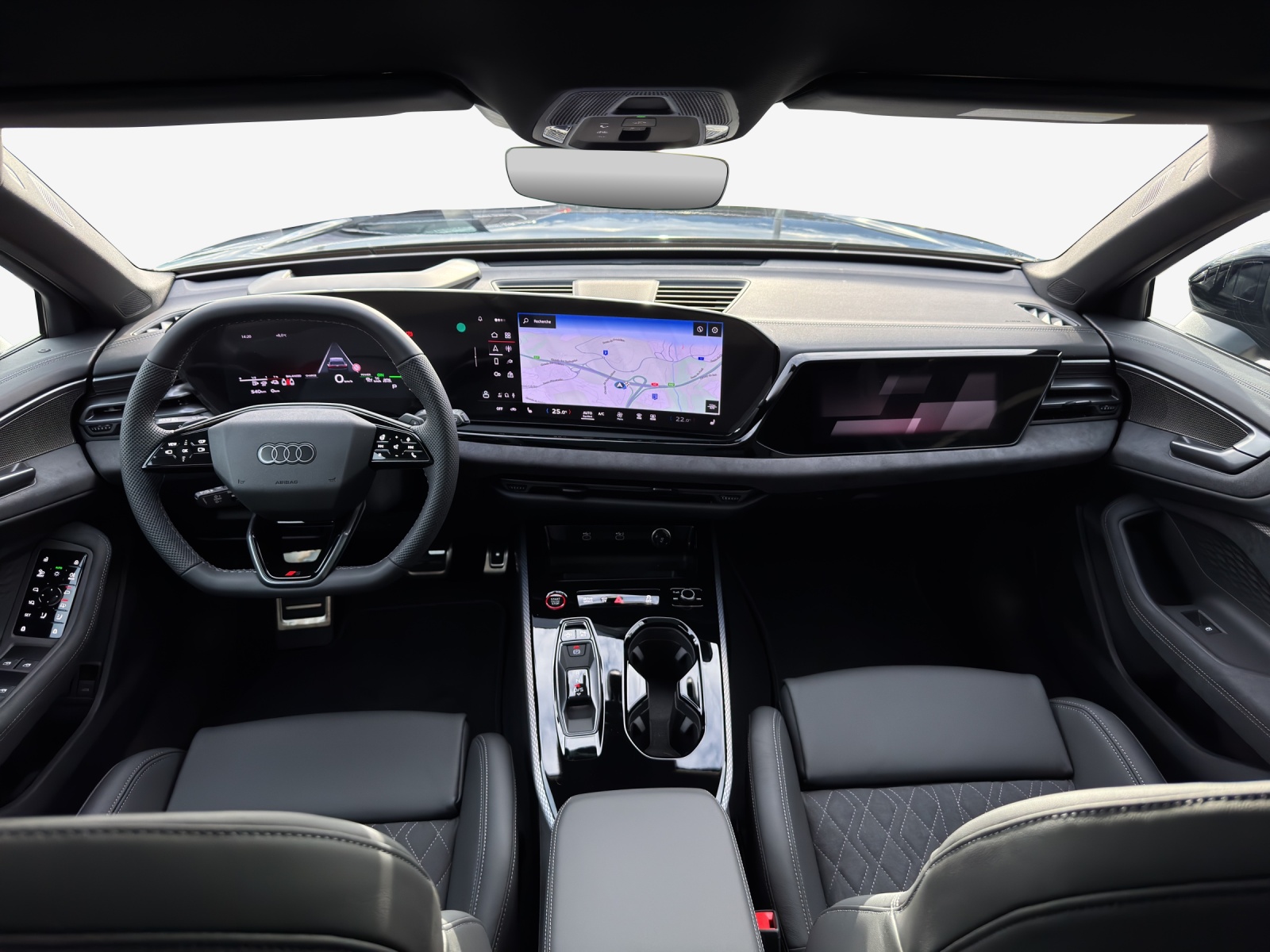 Équipement en option Assist: Spurverlassenswarnung inkl. Notfallassistent Boulons de roues avec antivol Clima: Chauffage & Climatisation autonome Dekor: Interieurapplikationen Vanadiumoptik Détection des passagers à larrière Lackierung: Metallic-Lackierung Pack: Intérieur S avec sièges sport, combinaison cuir/similicuir noir Prise domestique type J (Suisse) pour le système de charge e-tron Prise industrielle CEE 16A, 400V, longue et droite pour le système de charge e-tron Roues: Jantes Audi Sport, design multibranches en S, noir métallisé, finition brillante Rouleaux pare-soleil pour vitres des Système de recharge compact e-tron Toit panoramique vitré avec transparence commutable Vitrage acoustique pour fenêtres de porte d'entrée