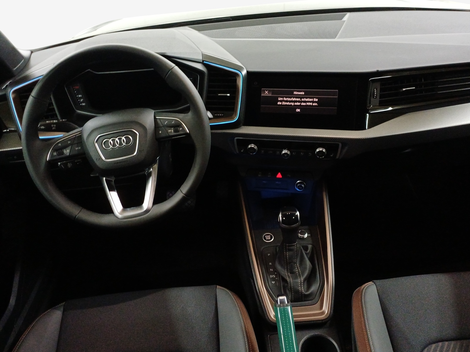 Dachhimmel in Stoff schwarz Dekor: Aluminiumoptik im Interieur Klima: 2-Zonen-Komfortklimaautomatik Komfortschlüssel (ohne Safelock) Media: MMI Navigation plus mit MMI touch Paket: Kontur / Ambiente Lichtpaket, mehrfarbig Paket: design selection mit Sportsitz (Leder / Kunstleder mono.pur 550-Kombination titangrau) Räder: Aluminium-Gussräder - 16 Zoll - im 10-Speichen-Design