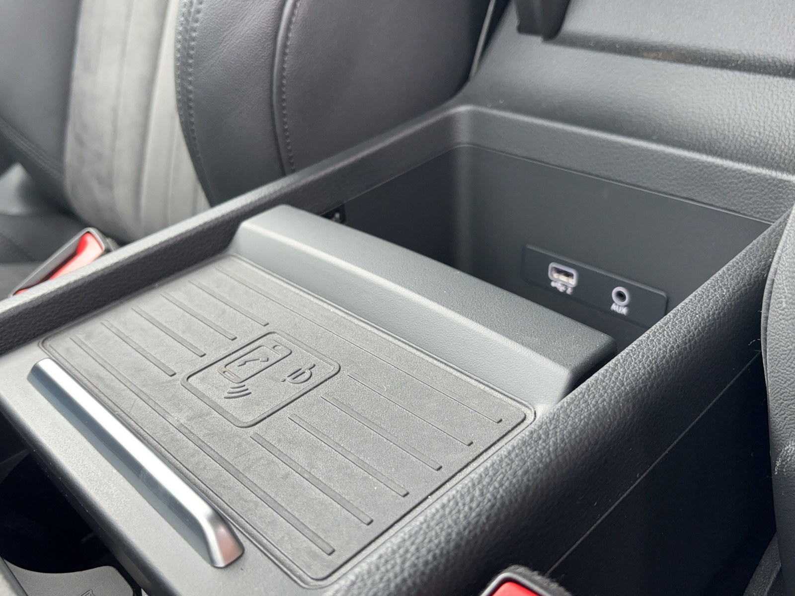 Mittelarmlehne vorn in Kunstleder schwarz mit Kontrastnaht in Rot