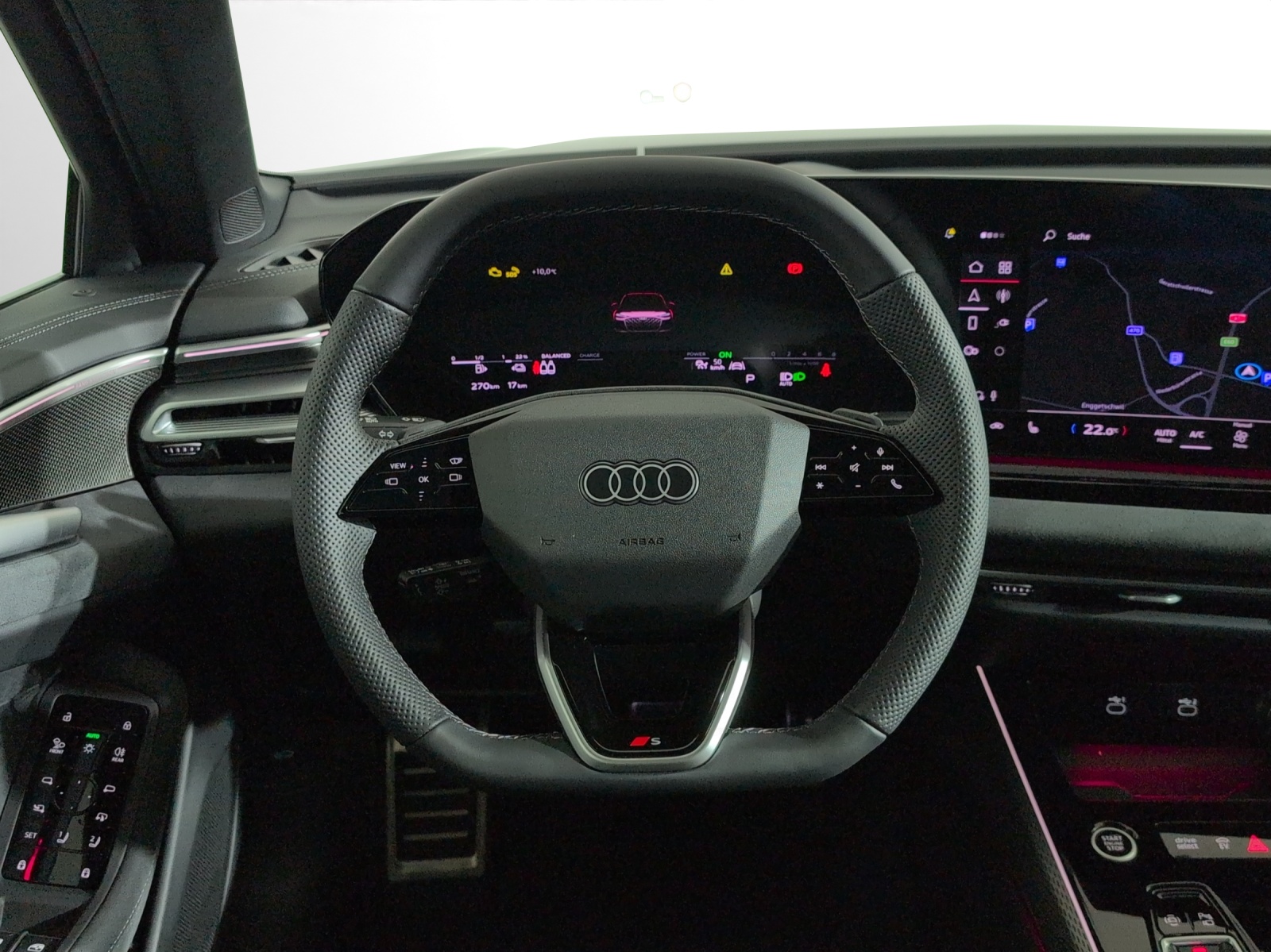 Serienausstattung Airbag: Airbag Fahrer und Beifahrer Assist: Adaptiver Geschwindigkeitsassistent Assist: Aufmerksamkeits- und Müdigkeitserkennung Assist: Ausweichassistent und Abbiegeassistent Assist: Einparkhilfe plus mit Distanzanzeige Assist: Kamerabasierte Verkehrszeichenerkennung Assist: Kreuzungsassistent Assist: Notbremsassistent vorn Assist: Parkassistent plus Assist: Querverkehrassistent vorn Assist: Spurverlassenswarnung Assist: Traktionskontrolle Assist: Verkehrszeichenbasierter Geschwindigkeitsbegrenzer Audi virtual cockpit plus Aussenspiegel elektrisch einstell-, beheiz- und anklappbar, beidseitig automatisch abblendend Dachreling in Aluminiumoptik Dekor: Dekoreinlagen Aluminium matt gebürstet mit Linearprägung anthrazit Elektrische Fensterheber vorne Elektronisches Stabilitäts-Programm (ESP) Entfall Modellbezeichnung Fahrwerk: Bremssättel rot lackiert Fahrwerk: S-Sportfahrwerk Fensterzierleisten Aluminiumoptik Fussmatten vorne und hinten Garantie: Audi Garantie 2 Jahre ohne Kilometerbegrenzung (ab 1. Inv.) Garantie: Audi Swiss Service Package + (ASSP+) Getriebe: 7-Stufen Automatisiertes Schaltgetriebe Haushaltsstecker Typ J (Schweiz) für das e-tron Ladesystem Industriestecker CEE 16A, 400V, lang und gerade für das e-tron Ladesystem Industriestecker CEE 32A, 400V, lang und gerade Klima: 4-Zonen-Komfortklimaautomatik Klima: Automatische Umluftregelung Klima: Elektrische Luftzusatzheizung Klima: Standklimatisierung Komfort Komfortschlüssel mit Safelock Komfortschlüssel ohne Safelock Lackierung: Uni-Lackierung Ladedose AC Typ 2 Mode 2-3 Ladekabel Mode 3 für öffentliches Laden bis 22 kW Lenkrad: Lenkradeinstellung manuell Licht: Einstiegs-LED mit Logoprojektion vorn Licht: Matrix LED-Scheinwerfer Licht: Projektionsleuchte in den Aussenspiegeln Media: Audi Application Store und Smartphone-Interface Media: Audi connect Navigation & Infotainment Media: Audi connect Notruf & Service mit Audi connect Remote & Control Media: Digitaler Radioempfang Media: FOD Funktionen online verfügbar Media: LTE-Unterstützung für Audi phone box Media: Telefonablage mit induktiver Ladefunktion Media: USB-Anschlüsse mit Ladefunktion in erster und zweiter Sitzreihe Modellkennzeichnung am Heck Paket: Ambiente Lichtpaket plus Paket: Assistenzpaket Fahren und Parken Paket: Interieur S line mit Sportsitzen Stoff schwarz Polster: Leder-Ausstattung Räder: Reifendruckkontrollsystem Räder: Reifenreparatur-Set (Tire Fit) Scheiben seitlich und hinten in Wärmeschutzverglasung Sitze: Kindersitzbefestigung i-Size auf der Beifahrerseite und i-Size und Top Tether Sitze: Vordersitze manuell einstellbar Telefonablage mit induktiver Ladefunktion Türen: Gepäckraumklappe elektrisch öffnend und schliessend Türen: Türgriffe in Wagenfarbe Verbandmaterial,Warndreieck und Warnveste Wärmeschutz- und Akustikverglasung Frontscheibe Zentralverriegelung mit Fernbedienung