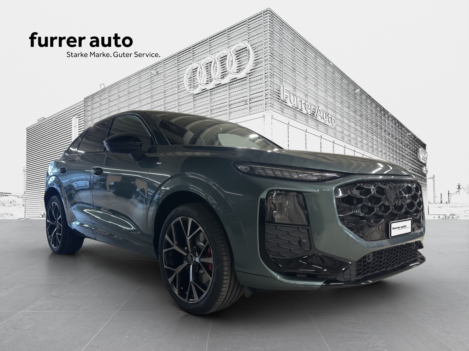 [8A2] Assist: Parkassistent plus mit Einparkhilfe mit Umgebungsanzeige [53C] Räder: Räder Audi Sport, 5-Speichen-Tripod, schwarz metallic, glanzgedreht, abgedunkelt - 8,5 J x 20, Reifen 255/40 R20 [VC2] Garagentoröffner [V6] salbeigrün metallic Zusätzlicher Flottenrabatt, Saisonale Prämien und attraktives 3.99% Sonderzinsleasing erhältlich!