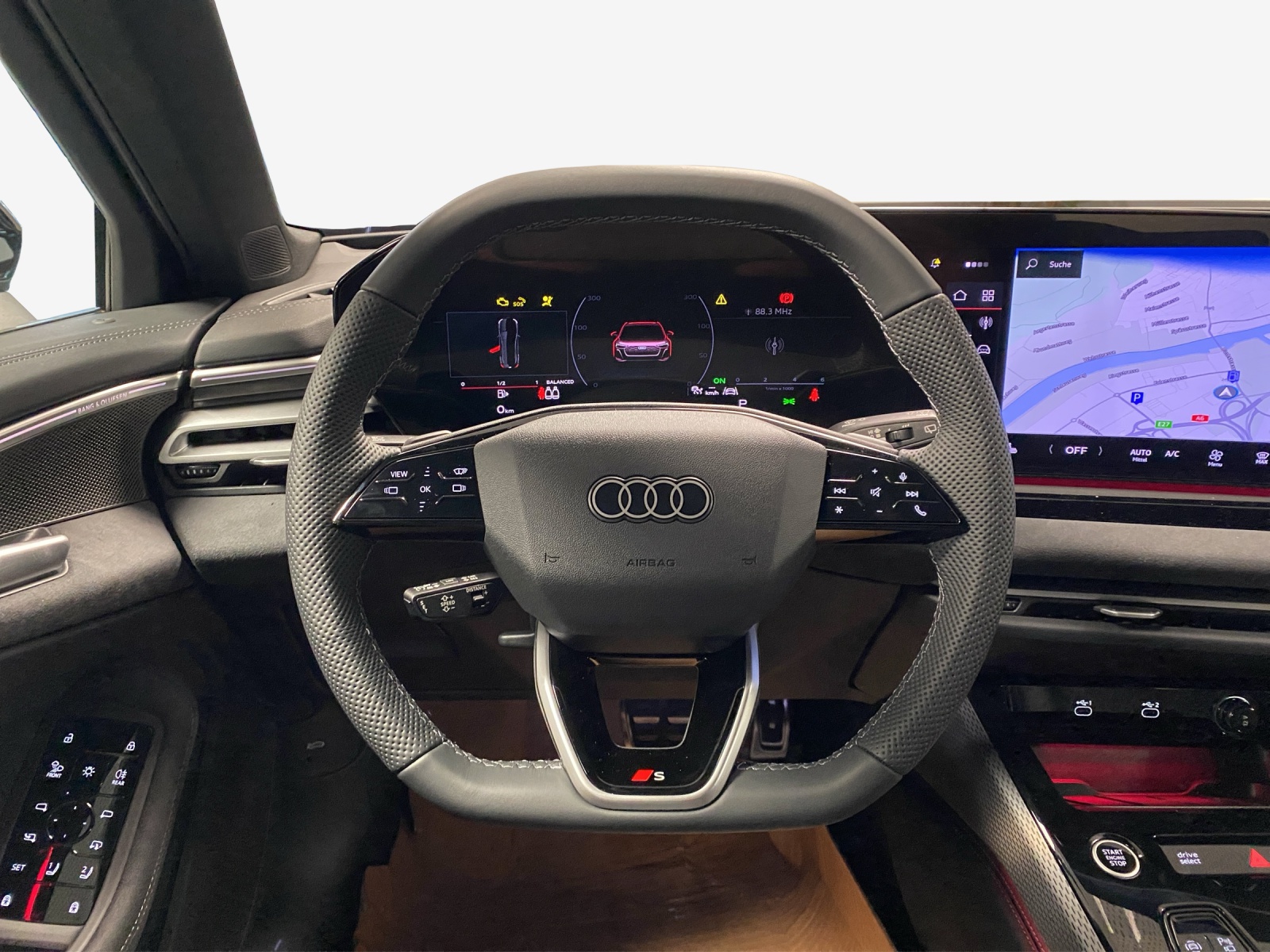 Dekor: Dekoreinlagen Aluminium matt gebürstet mit Linearprägung anthrazit Komfortschlüssel ohne Safelock Media: Sound-Système Premium Bang & Olufsen Pack: Intérieur S avec sièges sport, combinaison cuir/similicuir noir Pack: Pack Ambiente Light plus Pack: Pack Esthétique extérieur noir Peinture: Peinture métallisée Roues: Jantes Audi Sport, 5 doubles branches, noir métallisé, finition brillante Roues: Jantes, design à 5 doubles branches en V, gris graphite, finition brillante Suspencsion: suspension sport S Vitrage de contrôle solaire, obscurci
