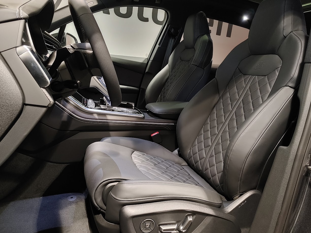 Tissu: Cuir Valcona avec gaufrage S et surpiqûre en losanges