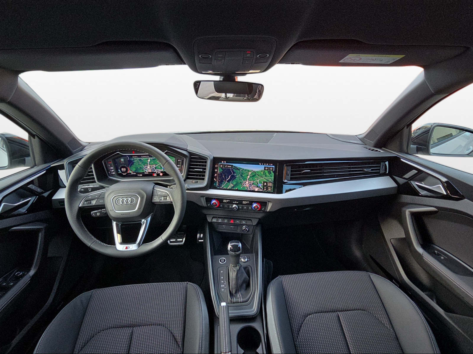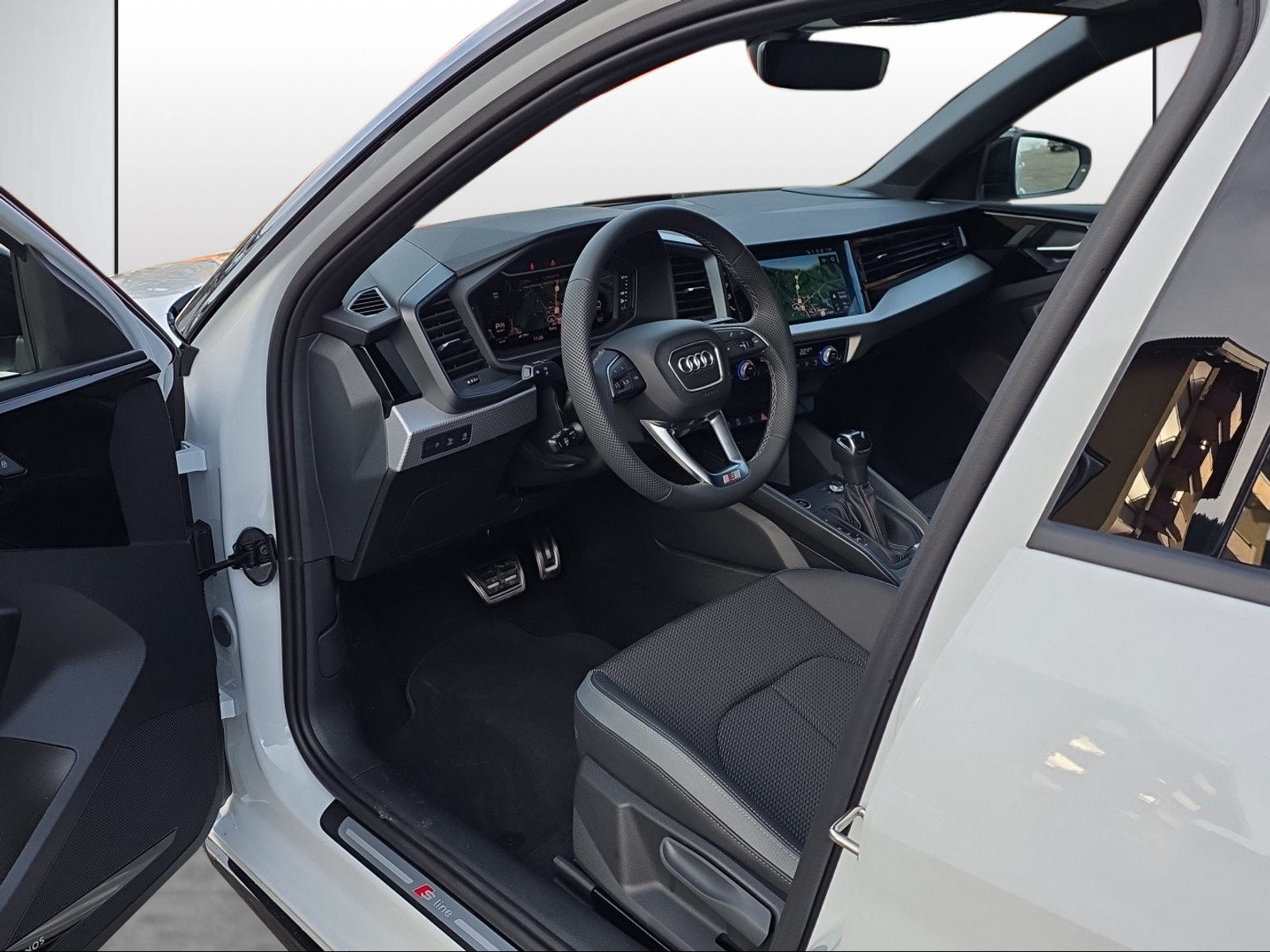 Dachhimmel in Stoff schwarz Dekor: Aluminiumoptik im Interieur Dekor: Interieurelemente in Kunstleder Entfall Modellbezeichnung und Leistungs- / Technologie-Schriftzug Klima: 2-Zonen-Komfortklimaautomatik Komfortschlüssel (ohne Safelock) Lackierung: Dach in Kontrastfarbe Paket: S line mit Sportsitz (Stoff Puls / Kunstleder mono.pur 550- Kombination schwarz) Räder: Aluminium-Gussräder - 18 Zoll - Audi Sport, 5-Y-Speichen, schwarz metallic, glanzgedreht, Sonnenschutzverglasung abgedunkelt