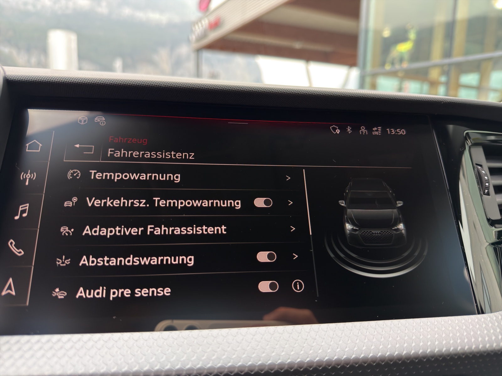 Assist: Einparkhilfe plus Assist: Spurwechselwarnung Dekor: Aluminiumoptik im Interieur Garantie: Audi Garantie: 4 Jahre oder 80'000 km (ab 1. Inv.) Klima: 2-Zonen-Komfortklimaautomatik Komfortschlüssel (ohne Safelock) Lackierung: Metallic-Lackierung Lenkrad: Sportkontur-Lederlenkrad im 3-Speichen-Design unten abgeflacht mit Multifunktion plus Licht: Fernlicht-Assistent Media: MMI Navigation plus mit MMI touch Sonnenschutzverglasung abgedunkelt