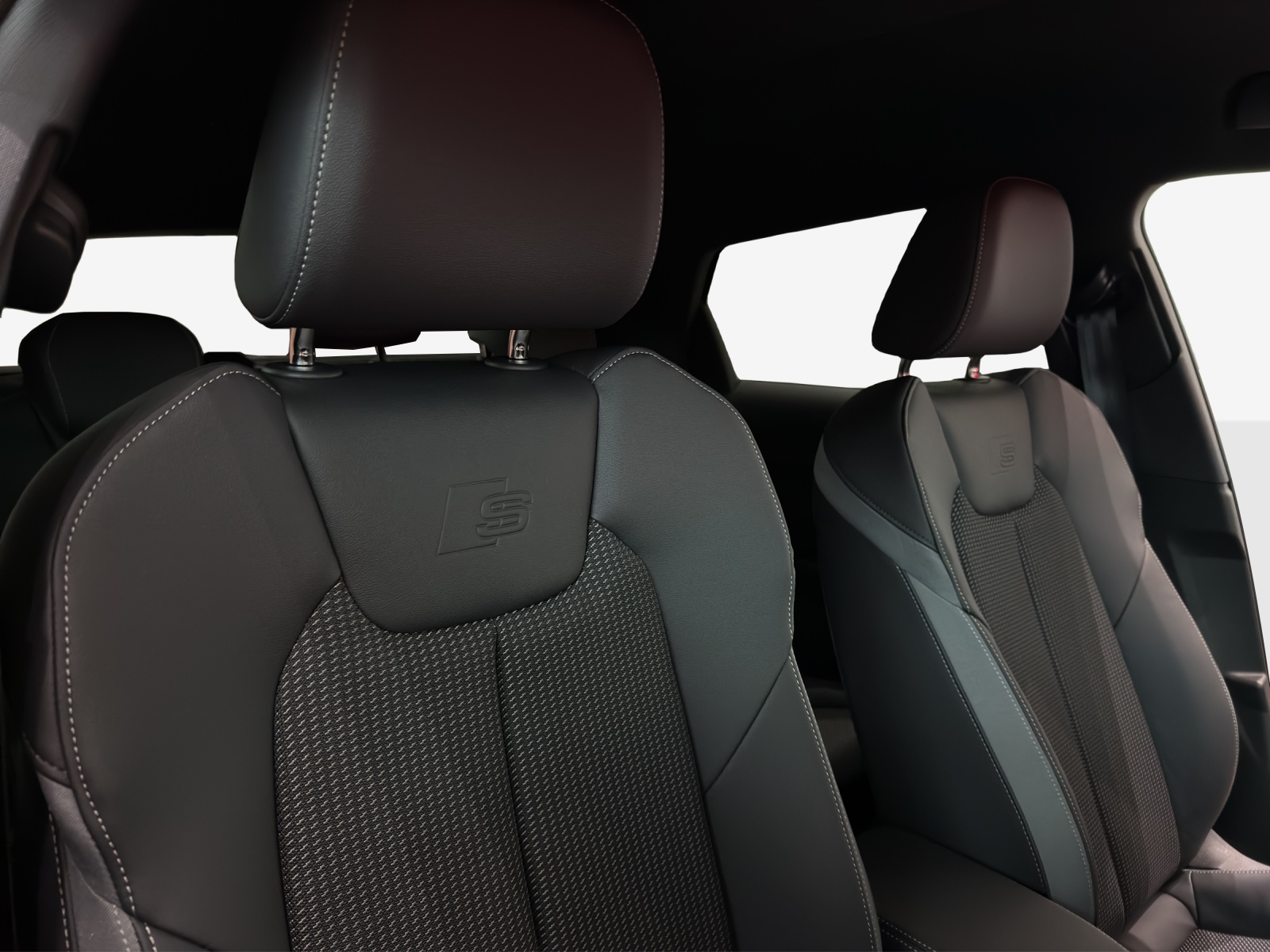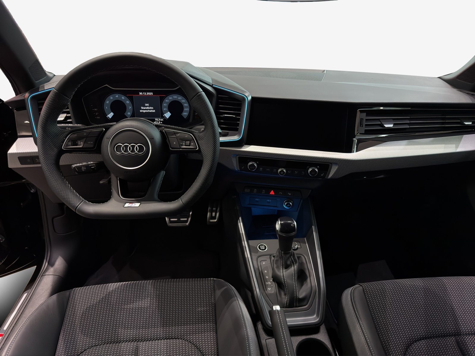 Assist: Spurwechselwarnung Dachhimmel in Stoff schwarz Dekor: Aluminiumoptik im Interieur Klima: 2-Zonen-Komfortklimaautomatik Komfortschlüssel (ohne Safelock) Lenkrad: Sportkontur-Lederlenkrad im 3-Speichen-Design unten abgeflacht mit Multifunktion plus Licht: Fernlicht-Assistent Media: MMI Navigation plus mit MMI touch Paket: Kontur / Ambiente Lichtpaket, mehrfarbig Paket: Optikpaket schwarz plus Paket: S line mit Sportsitz (Stoff Puls / Kunstleder mono.pur 550- Kombination schwarz) Räder: Aluminium-Gussräder - 17 Zoll - im 5-V-Speichen-Design, kontrastgrau, teilpoliert Sonnenschutzverglasung abgedunkelt
