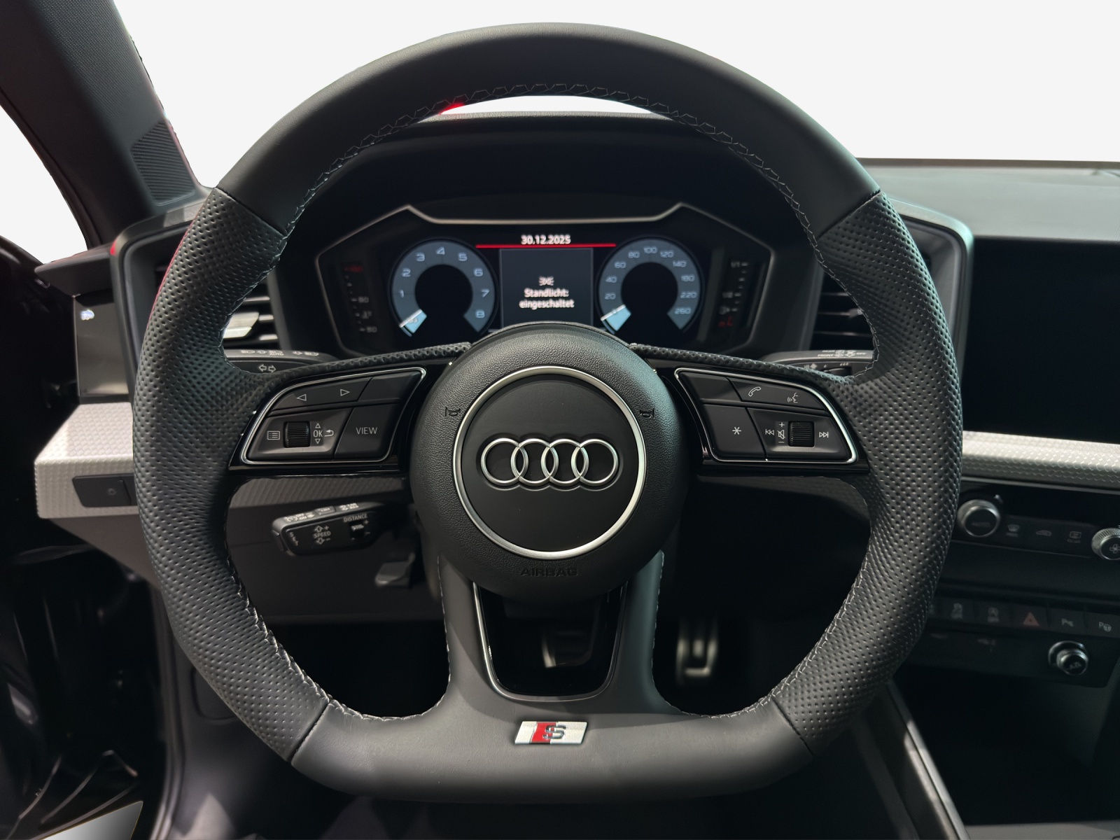 3-Punkt-Sicherheitsgurte auf allen Plätzen Airbag: Airbag Beifahrer deaktivierbar Airbag: Seitenairbags vorne Airbag: Window-Kopfairbags Assist: Ablenkungs- und Müdigkeitserkennung Assist: Audi pre sense front Assist: Berganfahrassistent Assist: Kamerabasierte Verkehrszeichenerkennung Assist: Müdigkeitserkennung Assist: Spurverlassenswarnung Audi connect Notruf & Service Audi connect Remote & Controll Aussenspiegel in Wagenfarbe Außenspiegelgehäuse in Schwarz genarbt Dachhimmel in Stoff titangrau Dekor: Akzentfläche in der Armaturentafel schwarz matt Dekor: Akzentflächen im Einleger der Ausströmer und der Mittelkonsole sowie in der Griffmulde der Dekor: Dekoreinlagen Polygonstruktur schwarz Diffusor in Titanschwarz matt Diffusor-Gitter in Titanschwarz matt Diffusor-Spange in plantinumgrau matt Einstiegsleisten mit Aluminiumeinlegern vorn, mit S line-Schriftzug Elektronische Stabilisierungskontrolle (ESC) Entfall Leistungs- / Technologie-Schriftzug Entfall Modellbezeichnung und Leistungs- / Technologie-Schriftzug Fensterheber vorne und hinten elektrisch Funkschlüssel, ohne Safelock Fussmatten vorne und hinten Garantie: 2 Jahre ohne Kilometerbegrenzung (ab 1. Inv.) Garantie: Audi Swiss Service Package + (ASSP+) Geschwindigkeitsbegrenzer einstellbar Getriebe: 7-Gang- Automat S tronic Heckscheiben-Wisch-/Waschanlage Höhenverstellbare Gurten vorne Klima: Manuelle Klimaanlage Kühlerschutzgitter Rahmen in Aluminiumsilber matt Kühlerschutzgitter in Titanschwarz Lackierung: Dachkuppel in Wagenfarbe Lackierung: Uni-Lackierung Cortinaweiss Lenkrad: Lederlenkrad im 3-Speichen-Design mit Multifunktion plus Licht: Drittes Bremslicht Licht: Nebelschlussleuchte Media: 4 Lautsprecher vorne (passiv) Media: Bluetooth-Schnittstelle Media: Digitaler Radioempfang Media: Navigations-Vorbereitung Media: Vorbereitung für MMI Navigation plus Modellbezeichnung und Leistungs- / Technologie-Schriftzug Polster : advanced mit Sportsitz (Stoff Novum) Polster: advanced mit Sportsitz (Stoff Derby) Reifendruck-Kontrollanzeige Räder: Aluminium-Gussräder - 16 Zoll - im 10-Speichen-Turbinen-Design S line-Emblem auf den vorderen Kotflügeln Seitenschweller in Wagenfarbe Seitliche Lufteinlässe vorne schwarz matt genarbt Seitlichen Lufteinlässe mit Rahmen in Titanschwarz Sicherheitsgurte auf allen Plätzen Sitze: Beifahrersitz mit Höhenverstellung Sitze: Fahrersitz manuell höheneinstellbar Sitze: Kindersitzbefestigung i-Size auf der Beifahrerseite und den äusseren Fondsitzen Sitze: Rücksitzlehne umklappbar Sitze: Sitzbelegungserkennung Sonnenblende auf Fahrer- und Beifahrerseite Start-Stop-System mit Rekuperation Verbandmaterial und Warndreieck Wegfahrsperre elektronisch Zentralverriegelung mit Fernbedienung