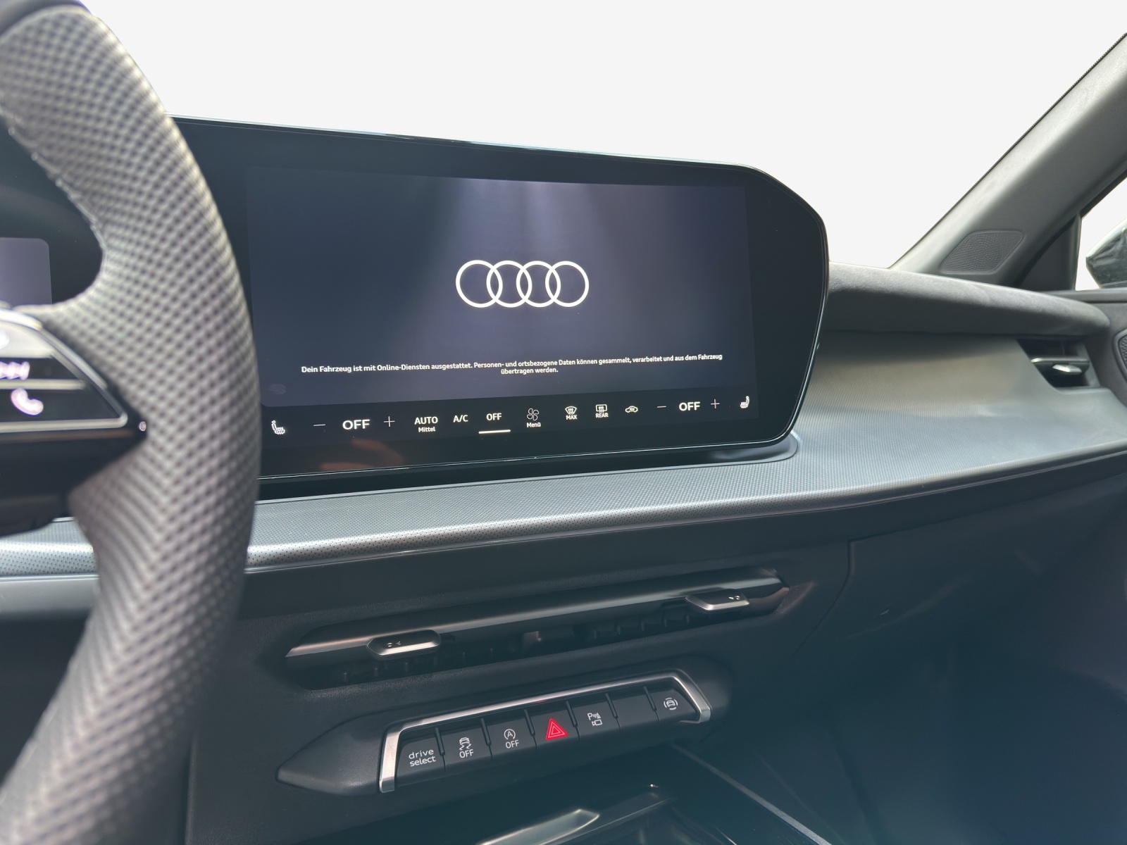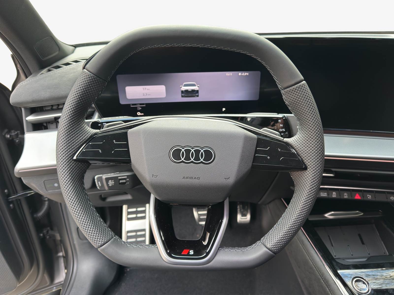 Assist: Parkassistent plus mit Einparkhilfe mit Umgebungsanzeige Komfortschlüssel ohne Safelock Lenkrad: Sportlederlenkrad, 3-Speichen, oben und unten abgeflacht mit Multifunktion, Licht: Digitale OLED-Heckleuchten Licht: Fernlicht-Assistent Media: Telefonablage mit induktiver Ladefunktion und Mobilfunk-Koppelantenne Paket: Assistenzpaket Fahren und Parken pro und Assistenzpaket Schutz- und Warnsysteme plus Paket: Interieur S line mit Sportsitzen Mikrofaser schwarz Paket: Klimatisierungspaket plus Paket: MMI experience pro Paket: Optikpaket schwarz Paket: Paket Premium experience Panorama-Schiebedach (1-teilig) Räder: Räder Audi Sport, Vielspeichen-S, schwarz metallic, glanzgedreht, abgedunkelt Sonnenschutzverglasung, abgedunkelt