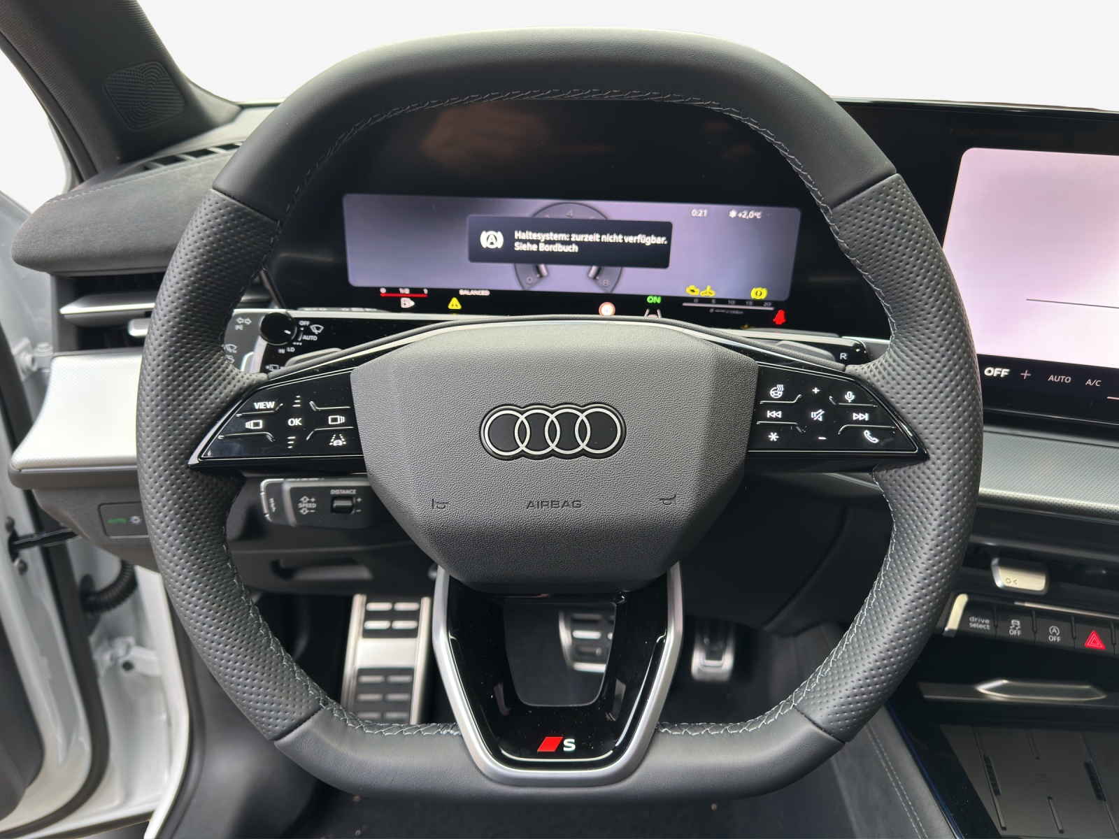 Assist: Parkassistent plus mit Einparkhilfe mit Umgebungsanzeige Dekor: Dekoreinlage Aluminium Divergenz dunkel Entfall Modellbezeichnung Komfortschlüssel ohne Safelock Lackierung: Metallic-Lackierung Lackierung: Volllackierung Lenkrad: Sportlederlenkrad, 3-Speichen, oben und unten abgeflacht mit Multifunktion, Licht: Fernlicht-Assistent Media: Audi connect Navigation & Infotainment Media: Mobilfunk-Signalverstärker Typ 1 Media: Telefonablage mit induktiver Ladefunktion und Mobilfunk-Koppelantenne Paket: Assistenzpaket Fahren und Parken pro und Assistenzpaket Schutz- und Warnsysteme plus Paket: Interieur S line mit Sportsitzen Mikrofaser schwarz Paket: Interieur mit Sportsitzen, Stoff schwarz Paket: Klimatisierungspaket plus Paket: Optikpaket schwarz Paket: Paket Premium experience Räder: Räder 5-Arm, platingrau Sonnenschutzverglasung, abgedunkelt Vorbereitung für Anhängevorrichtung