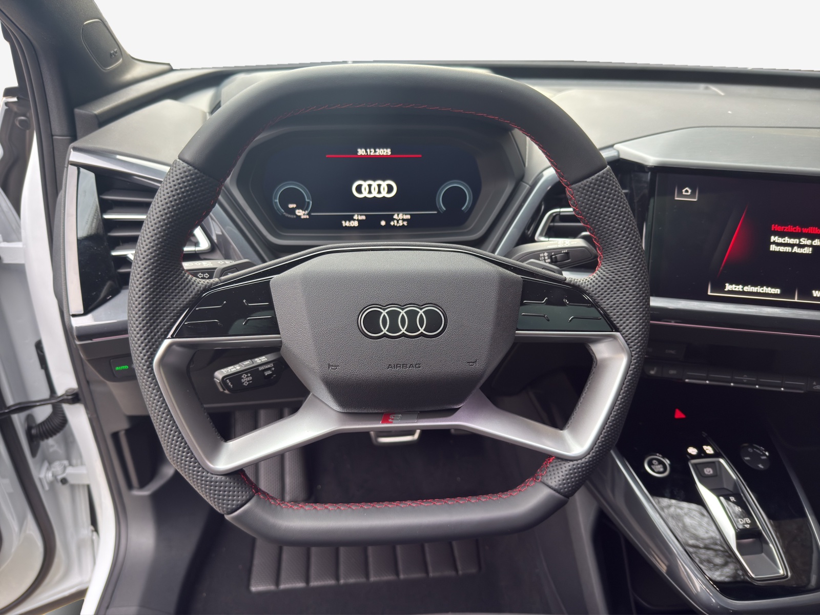 3-Punkt-Sicherheitsgurte auf allen Plätzen Airbag: Airbag für Fahrer und Beifahrer mit Beifahrer-Airbag-Deaktivierung Airbag: Seitenairbags vorn, mit Kopfairbag und Interaktionsairbag vorn Assist: Ablenkungs- und Müdigkeitserkennung Assist: Einparkhilfe hinten Assist: Geschwindigkeitsregelanlage FOD: ACC möglich Assist: Geschwindigkeitsregelanlage mit einstellbarem Geschwindigkeitsbegrenzer Assist: Kamerabasierte Verkehrszeichenerkennung Assist: Proaktiver Insassenschutz Front, Seite und Heck Assist: Speedlimiter mit Intelligent Speed Assist Assist: Spurverlassenswarnung inkl. Notfallassistent Aussenspiegel in Wagenfarbe Bottom line rundum in genarbter Optik Dekor: Dekoreinlage Haptiklack schwarz Elektronisches Stabilitäts-Programm (ESP) Entfall Leistungs- / Technologie-Schriftzug Entfall Modellbezeichnung und Leistungs- / Technologie-Schriftzug Fahrwerk: Komfortfahrwerk Funkschlüssel, ohne Safelock Garantie: 2 Jahre ohne Kilometerbegrenzung (ab 1. Inv.) Garantie: Audi Swiss Service Package + (ASSP+) Gepäckraumklappe elektrisch mit sensorgesteuerter Gepäckraumentriegelung Gepäckraumklappe ohne sensorgesteuerte Gepäckraumentriegelung Getriebe: Direktantrieb, kein Getriebe Haushaltsstecker Typ J (Schweiz) für das e-tron Ladesystem Industriestecker CEE 16A, 400V, lang und gerade für das e-tron Ladesystem Klima: Komfort Standklimatisierung Klima: Standklimatisierung Komfortmittelarmlehne vorne Lackierung: Uni-Lackierung Ladekabel Mode 3 Typ 2 32A Lenkrad: Doppelspeichen-Sportlederlenkrad, oben und unten abgeflacht mit Multifunktion Licht: Drittes Bremslicht Licht: Nebelschlussleuchte Media: Bluetooth-Schnittstelle Media: Digitaler Radioempfang (DAB) Modellbezeichnung Technologieschriftzug Performance Typenzeichen Paket: Glanzpaket mit horizontalen Fensterzierleisten in eloxiertem Aluminium Paket: Sicherheitspaket plus Räder: Leichtmetallräder Audi Sport, 5-W-Speichen-Stern, bronze matt Räder: Leichtmetallräder, 5-Arm Räder: Leichtmetallräder, 5-Y-Speichen Räder: Reifendruck-Kontrollanzeige Räder: Reifenreparatur-Set (Tire Fit) Sitze: Interieur mit Normalsitzen in Stoff Index schwarz Sitze: Kindersitzbefestigung i-Size auf der Beifahrerseite und i-Size und Top Tether Sitze: Vordersitze heizbar Sitze: Vordersitze manuell einstellbar Verbandmaterial,Warndreieck und Warnveste Wegfahrsperre elektronisch Wärmeschutzverglasung grün getönt Zentralverriegelung mit Fernbedienung ohne Dacheinsatz (Volldach) ohne Ladekabel (Industriestecker) ohne Scheinwerferreinigungsanlage