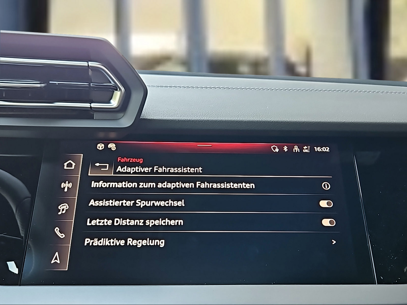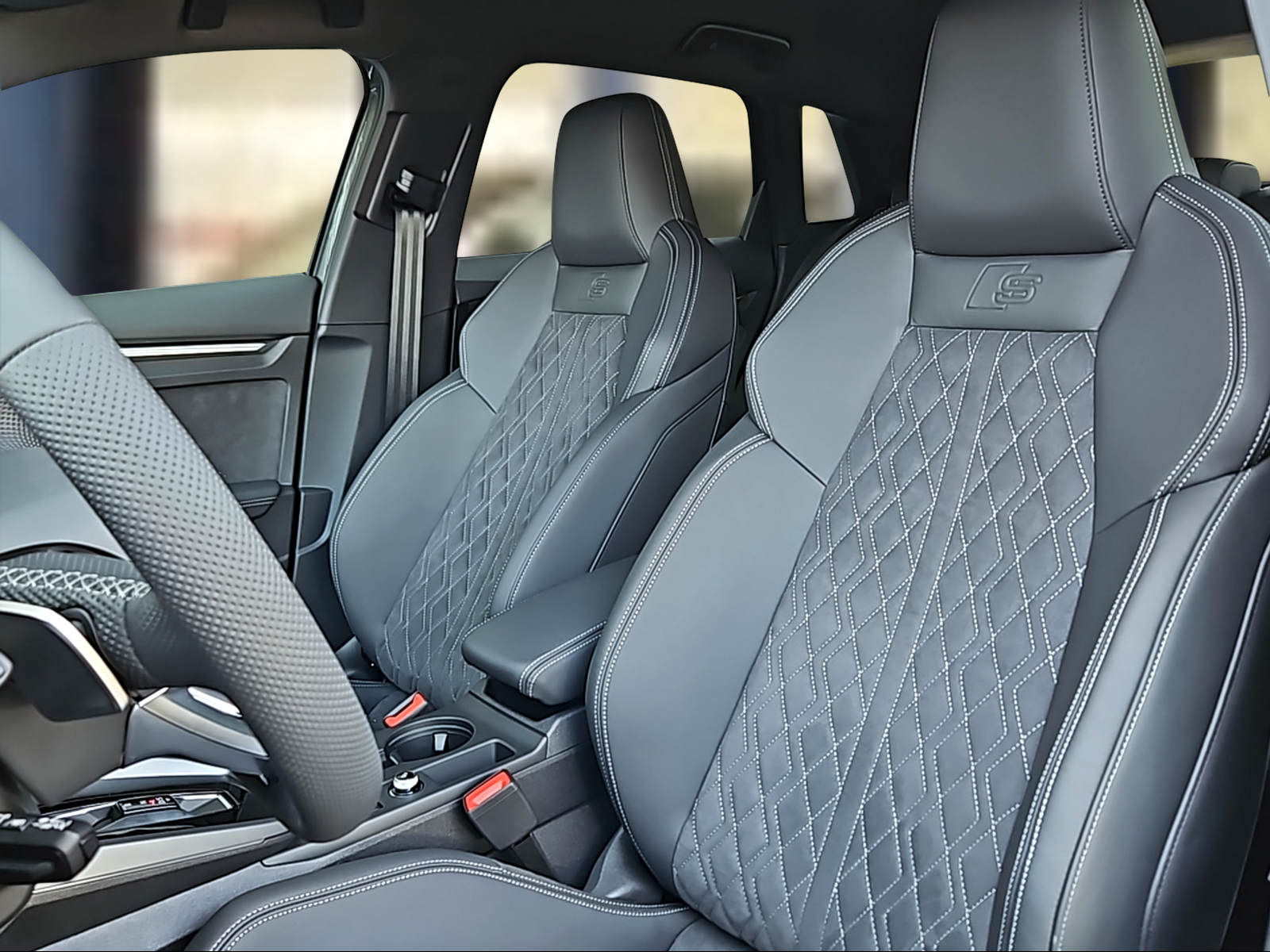 Assist: Adaptiver Fahrassistent mit Notfallassistent Aussenspiegelgehäuse in Schwarz Dekor: Dekoreinlage Aluminium Spektrum dunkel Lackierung: Perleffekt-Lackierung Paket: Ambiente-Lichtpaket plus Paket: Assistenzpaket Fahren und Parken pro und Assistenzpaket Schutz- und Warnsysteme plus Paket: Interieur S mit Sportsitzen, Mikrofaser Dinamica/Kunstleder-Kombination schwarz Paket: Klimatisierungspaket plus Paket: Optikpaket schwarz plus Räder: Leichtmetallräder Audi Sport - 19 Zoll - 5-Y-Arm-Struktur, titangrau matt, glanzgedreht Sitze: Vordersitze elektrisch verstellbar Sonnenschutzverglasung, abgedunkelt Türen: Komfortöffnung Gepäckraumklappe