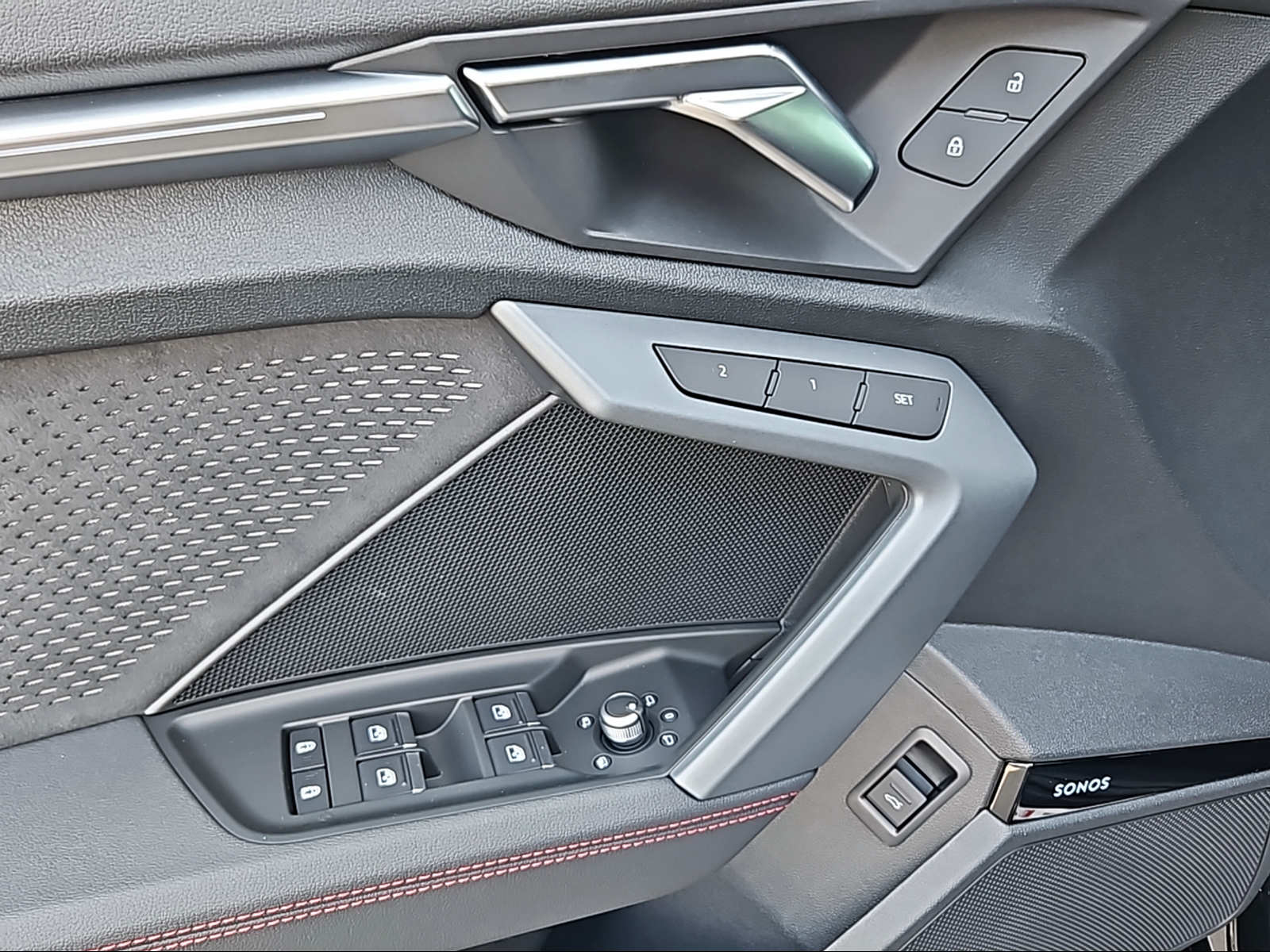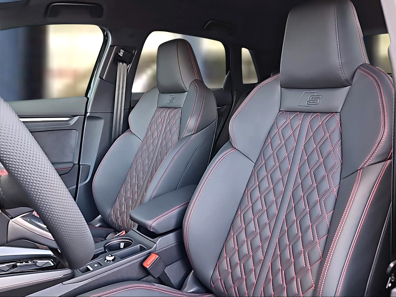 Assist: Adaptiver Fahrassistent mit Notfallassistent Dekor: Dekoreinlage Aluminium Spektrum dunkel Farbnähte in Rot Audi Sport Lackierung: Metallic-Lackierung Paket: Ambiente-Lichtpaket pro Paket: Assistenzpaket Fahren und Parken pro und Assistenzpaket Schutz- und Warnsysteme plus Paket: Interieur S mit Sportsitzen, Leder schwarz Paket: Klimatisierungspaket plus Paket: Optikpaket schwarz plus Paket: Paket Premium Plus A3 Sportback / allstreet Räder: Leichtmetallräder Audi Sport 19 Zoll 5-Doppelspeichen-Edge, anthrazitschwarz, glanzgedreht Sonnenschutzverglasung, abgedunkelt Vorbereitung für Anhängevorrichtung