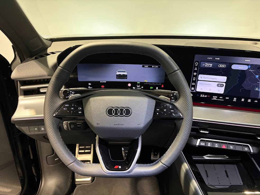 [A41] Garantie: Audi Swiss Service Package + (ASSP+) - Reparatur 3 Jahre oder 100 000 km, Service 10 Jahre oder 100 000 km - Es gilt jeweils das zuerst Erreichte [0E] mythosschwarz metallic [42R] Räder: Räder Audi Sport, 5-Doppelspeichen-Peak, schwarz metallic, glanzgedreht - 8,5 J x 19, Reifen 255/45 R19 [GB1] LTE-Unterstützung für Audi phone box [JW] schwarz, Naht agavengrau, Himmel schwarz (S line) Fahrzeug ist mit Flottenkonditionen Inseriert!