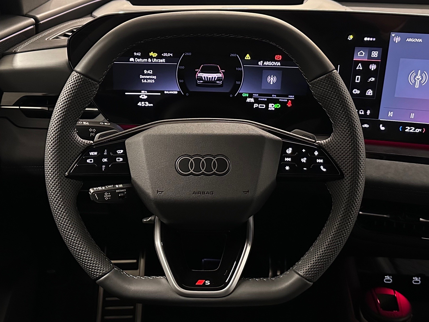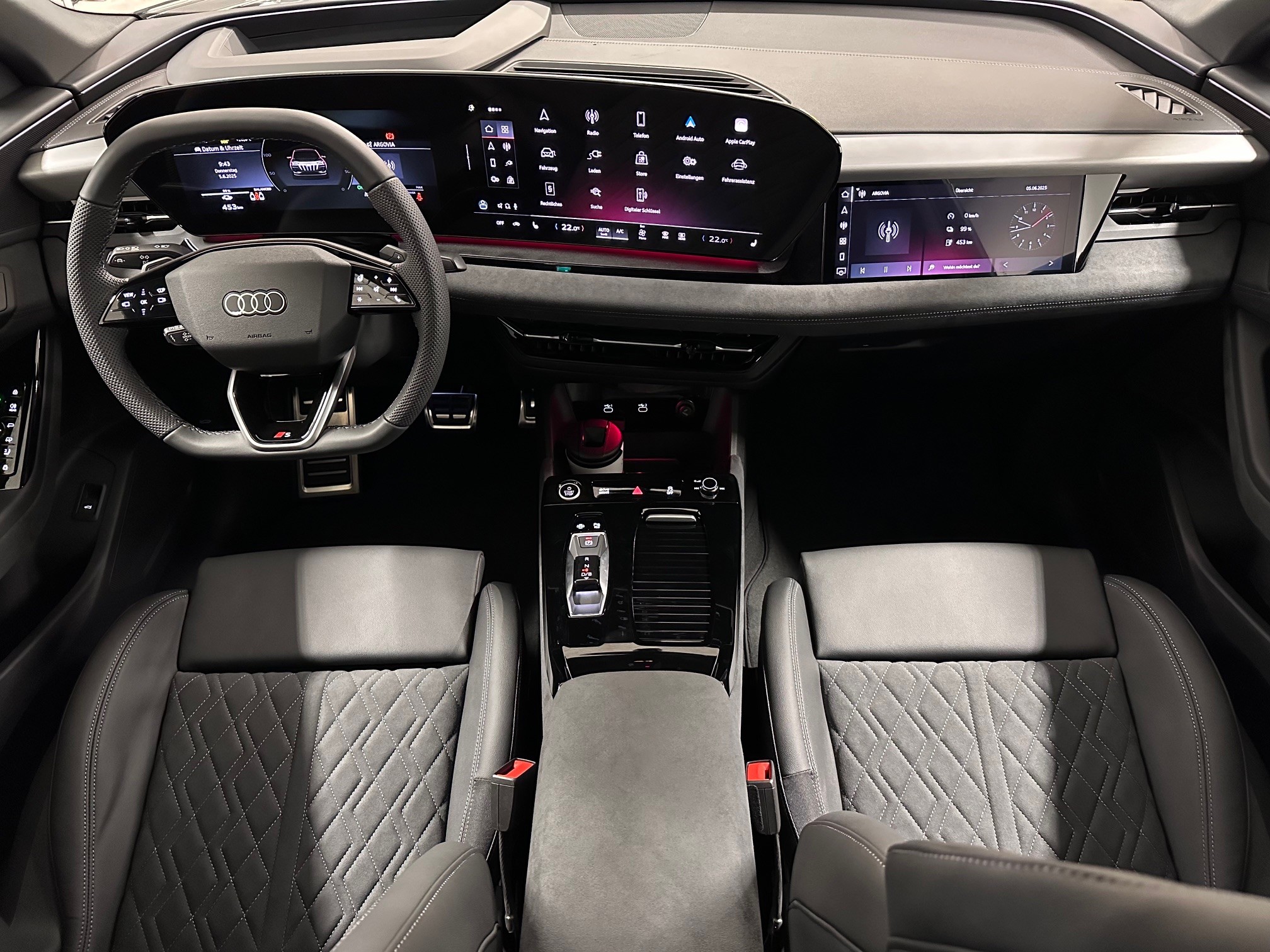 [8RT] Media: Bang & Olufsen Premium Soundsystem mit 3D-Klang und Kopfstützenlautsprechern [5TG] Dekoreinlagen Aluminium matt gebürstet anthrazit [A41] Garantie: Audi Swiss Service Package + (ASSP+) - Reparatur 3 Jahre oder 100 000 km, Service 10 Jahre oder 100 000 km - Es gilt jeweils das zuerst Erreichte [6Y] daytonagrau perleffekt [GX] schwarz, Naht stahlgrau, Himmel schwarz (Interieur S)