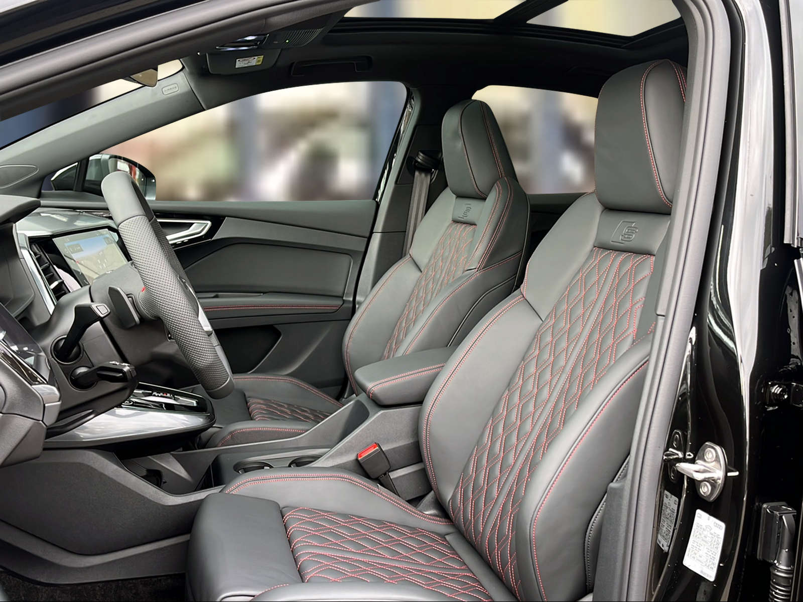 Farbnähte in Rot Audi Sport Lackierung: Metallic-Lackierung Lackierung: Volllackierung Media: SONOS Premium Soundsystem Paket: Ablage- und Gepäckraumpaket Paket: Assistenzpaket pro Paket: Infotainmentpaket Schweiz Paket: Interieur S line mit Sportsitzen in Leder / Kunstleder-Kombination schwarz Paket: Klimatisierungspaket Paket: Komfortpaket Schweiz Paket: Optikpaket schwarz plus Paket: S line Exterieur Paket Privacy-Verglasung (Scheiben abgedunkelt) Räder: Leichtmetallräder Audi Sport, 5-V-Speichen Polygon, titangrau matt, glanzgedreht - S line Vorrüstung Anhängerkupplung